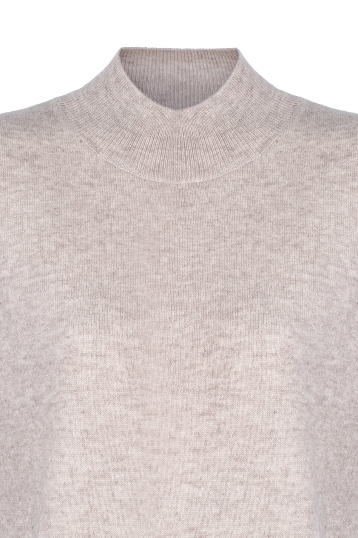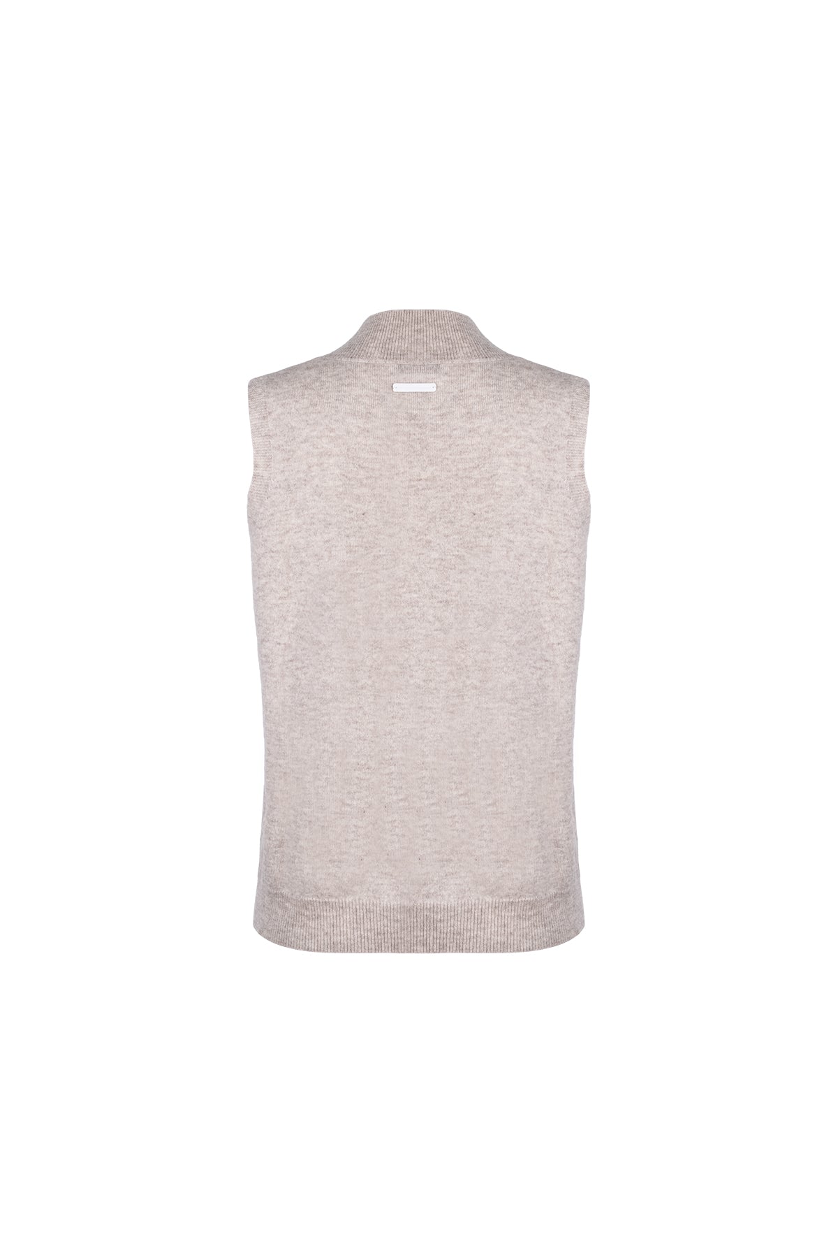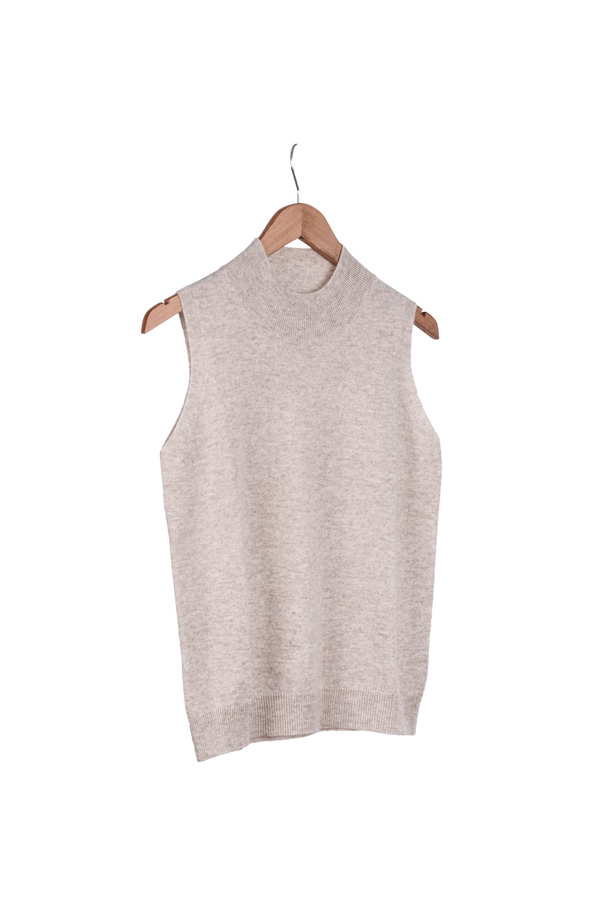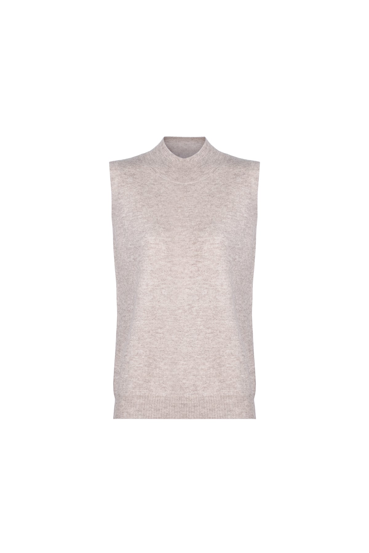 Ekru Melanj Agata Saf Kaşmir Yüksek Yaka Kolsuz Triko