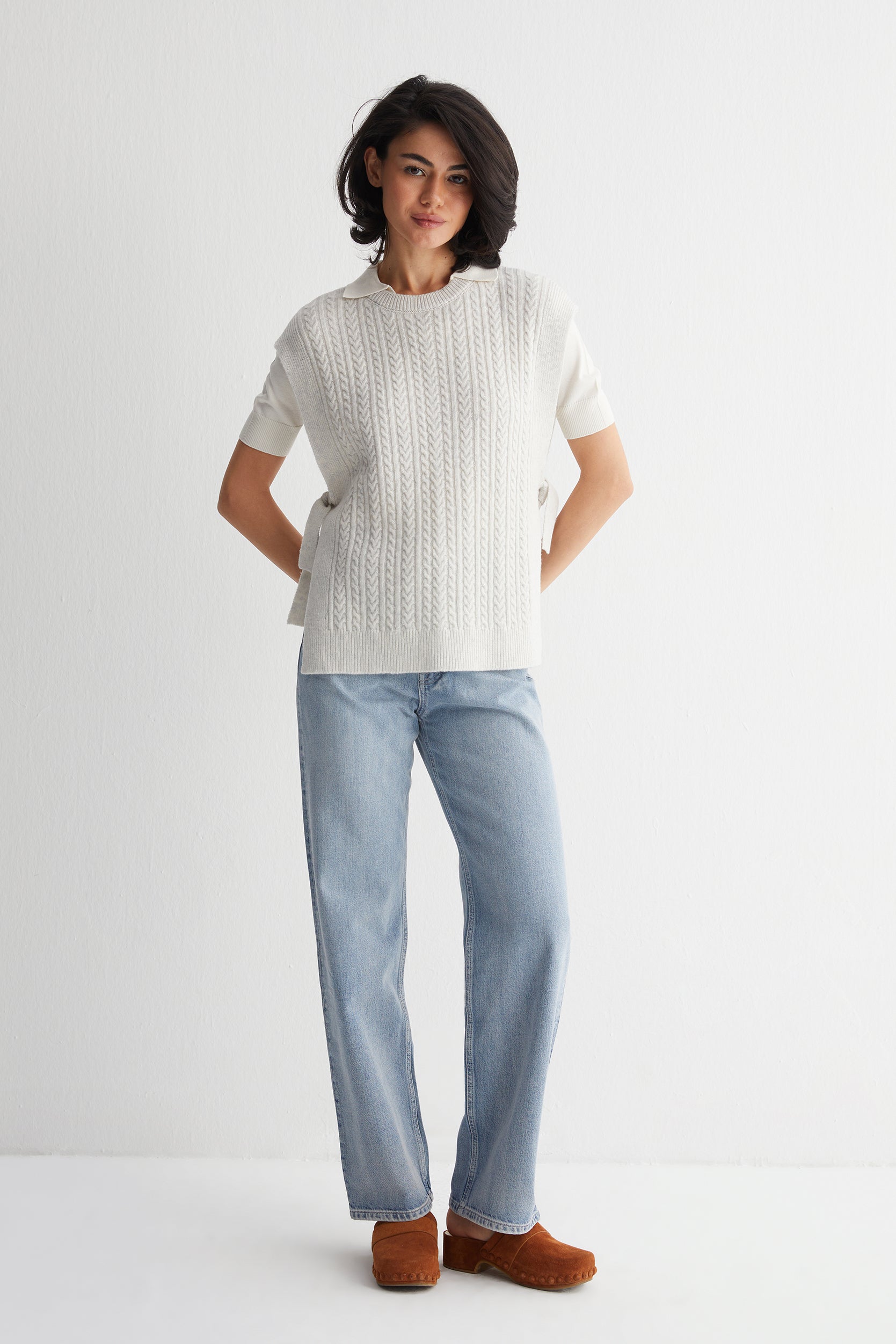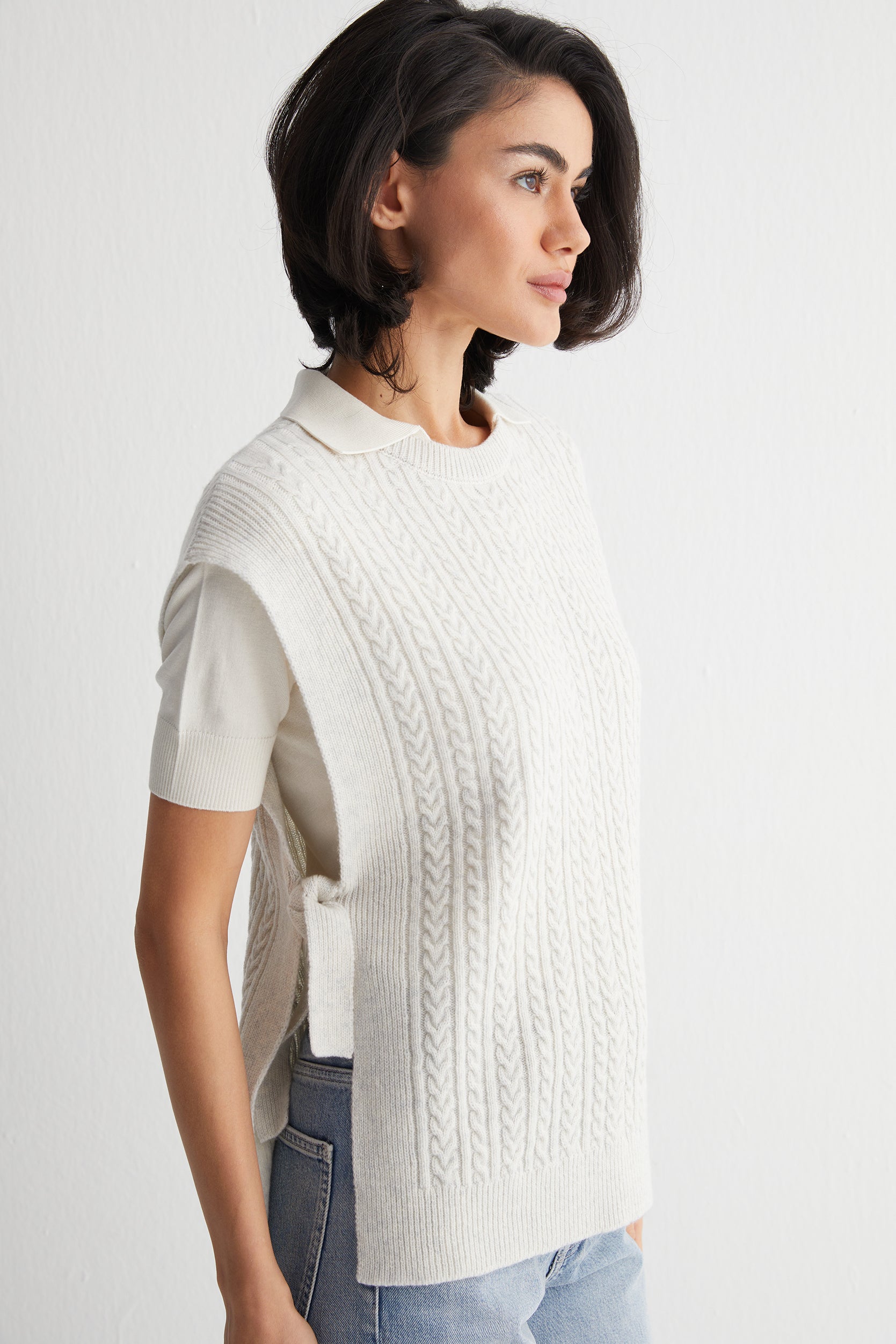Ekru Melanj Laura Yuvarlak Yaka Yelek