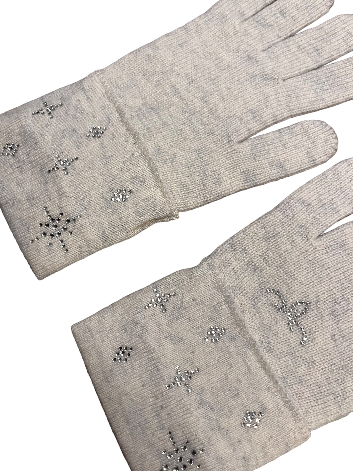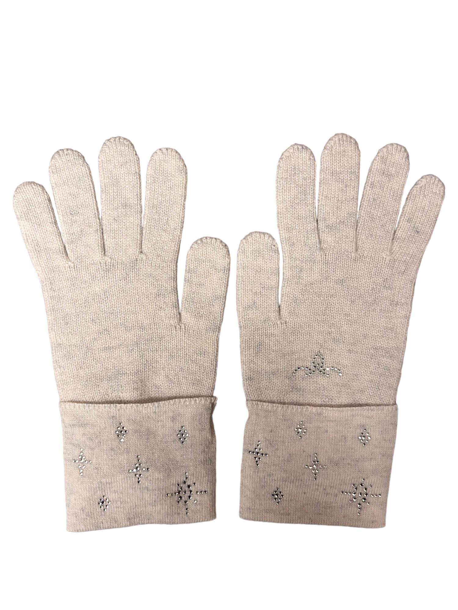 Ekru Melanj Yün Kaşmir Taşlı Yıldız Detaylı Eldiven