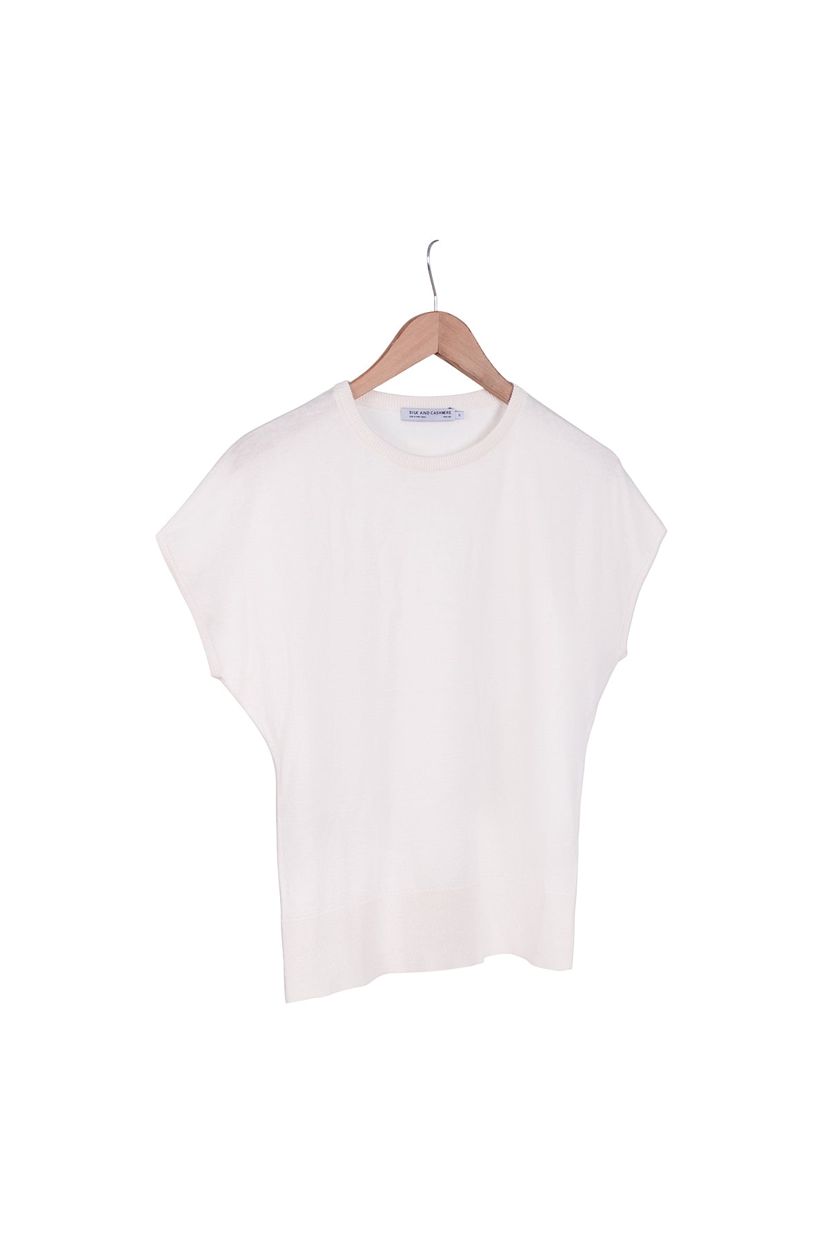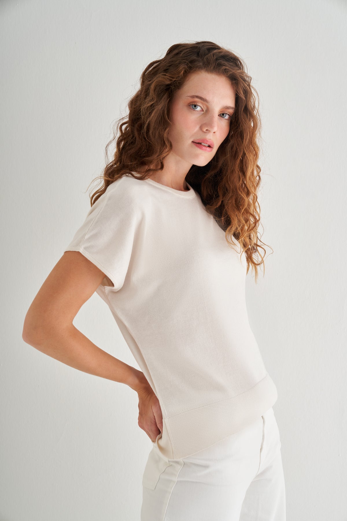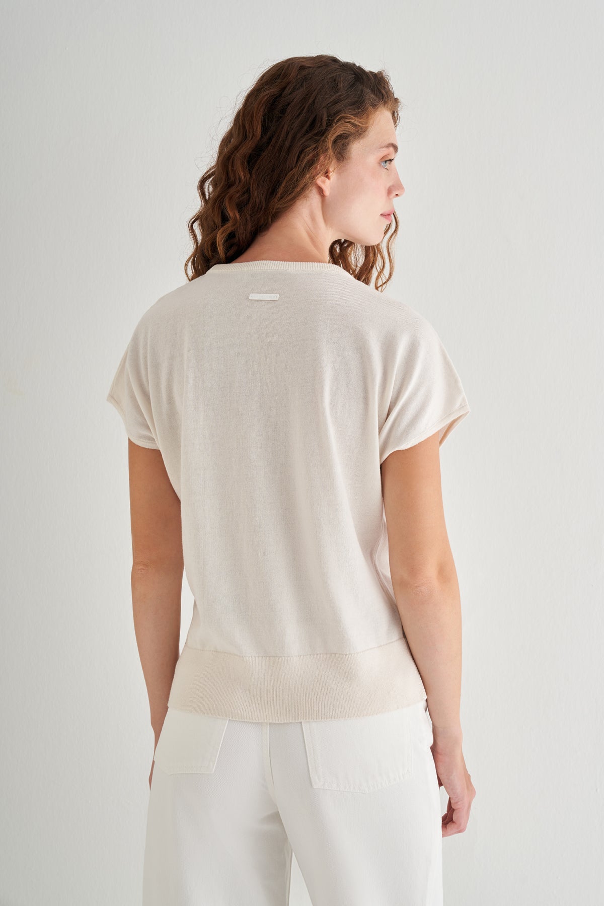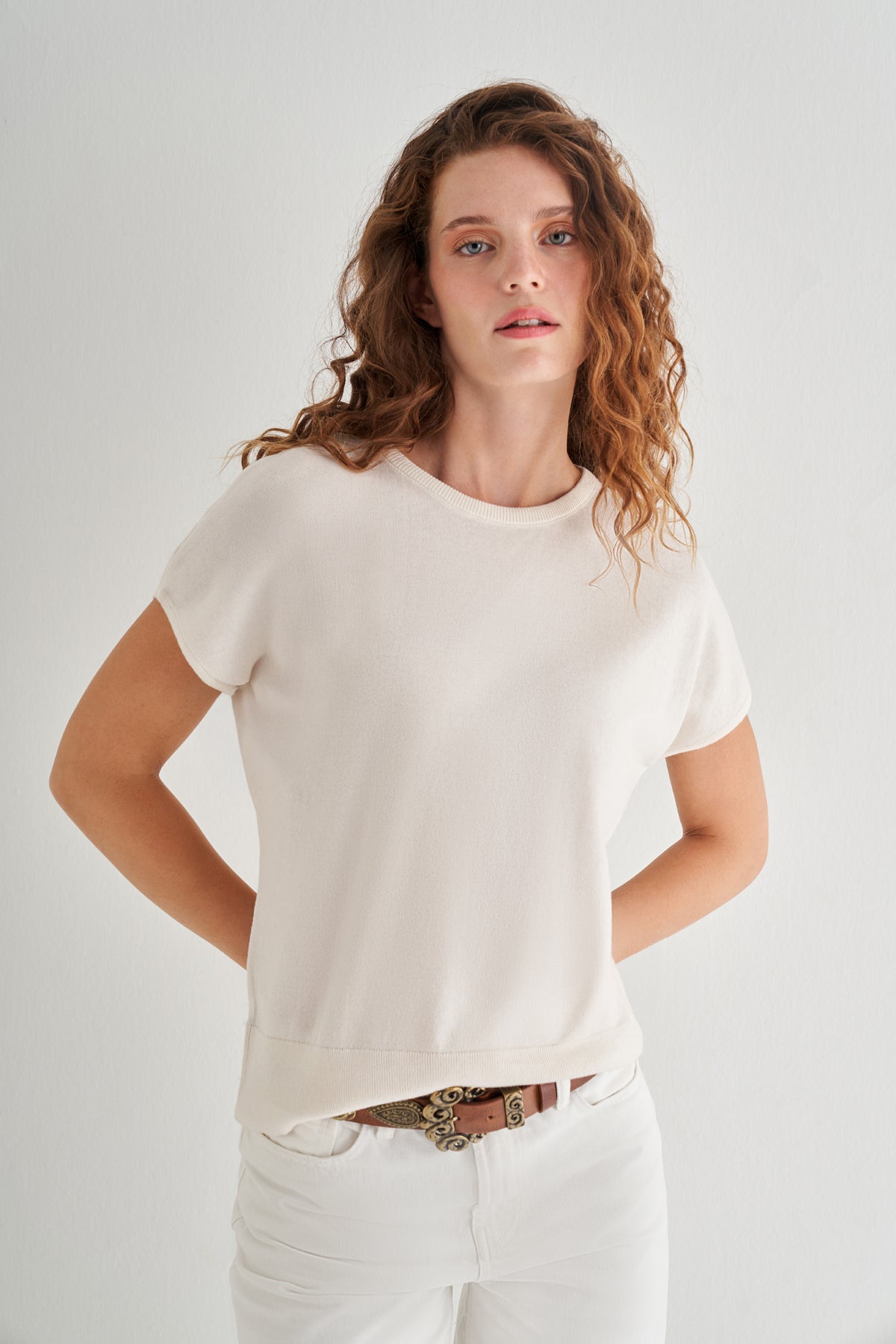 Ekru Mila Yuvarlak Yaka Kısa Kollu Triko