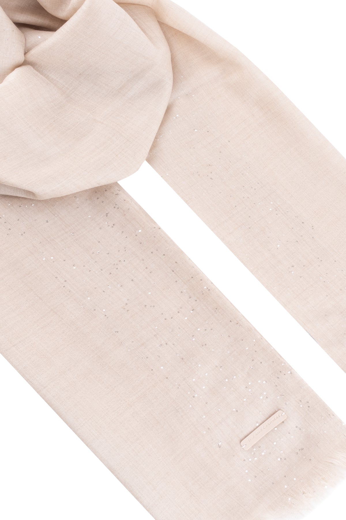 Ekru Paris Saf Kaşmir Payet Çerçeveli Şal 70x180 cm
