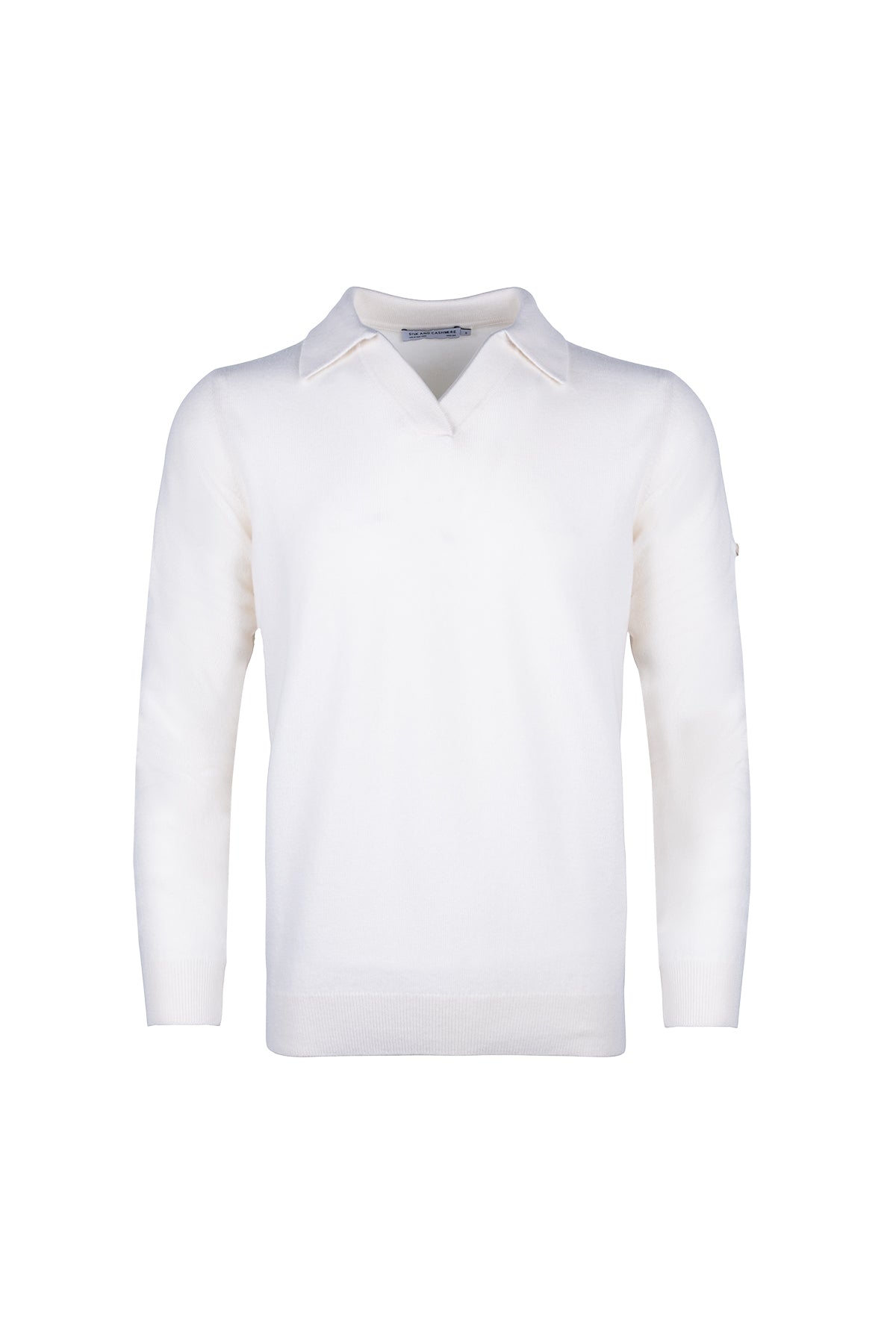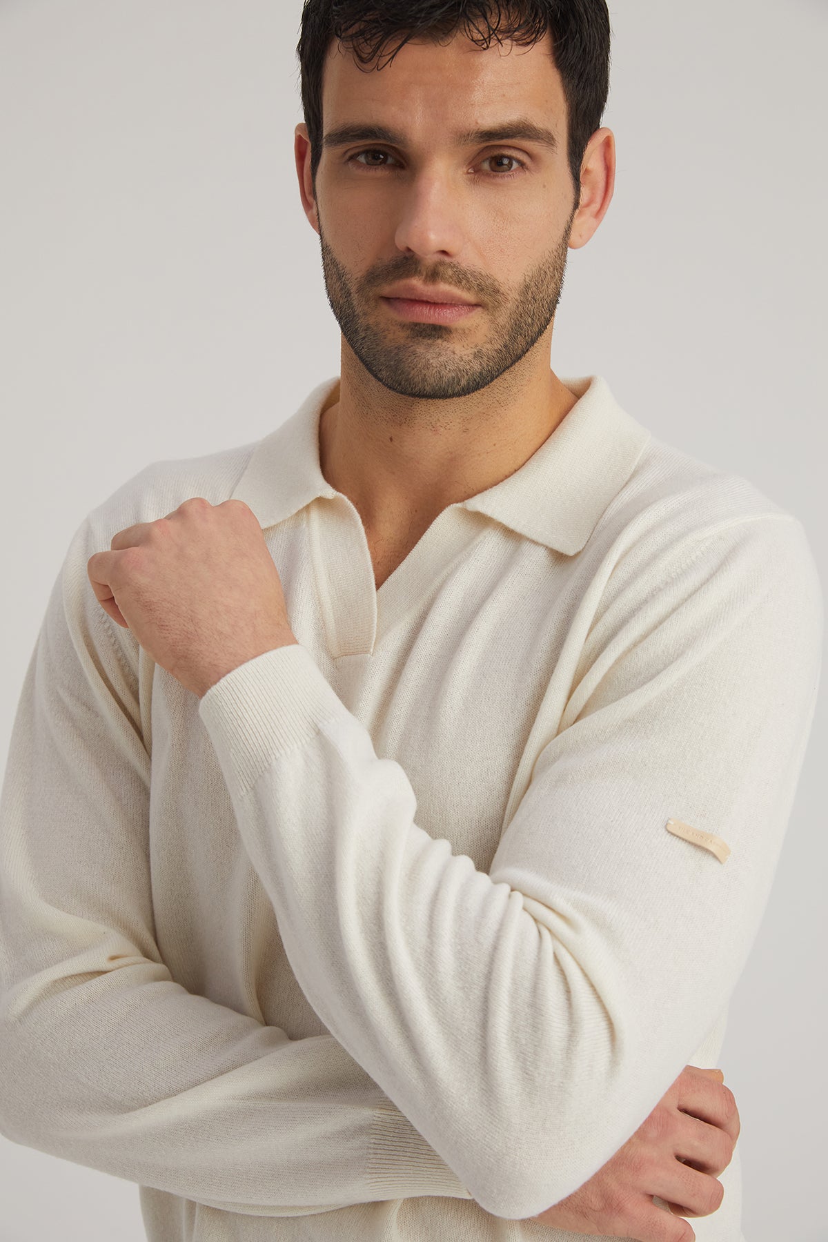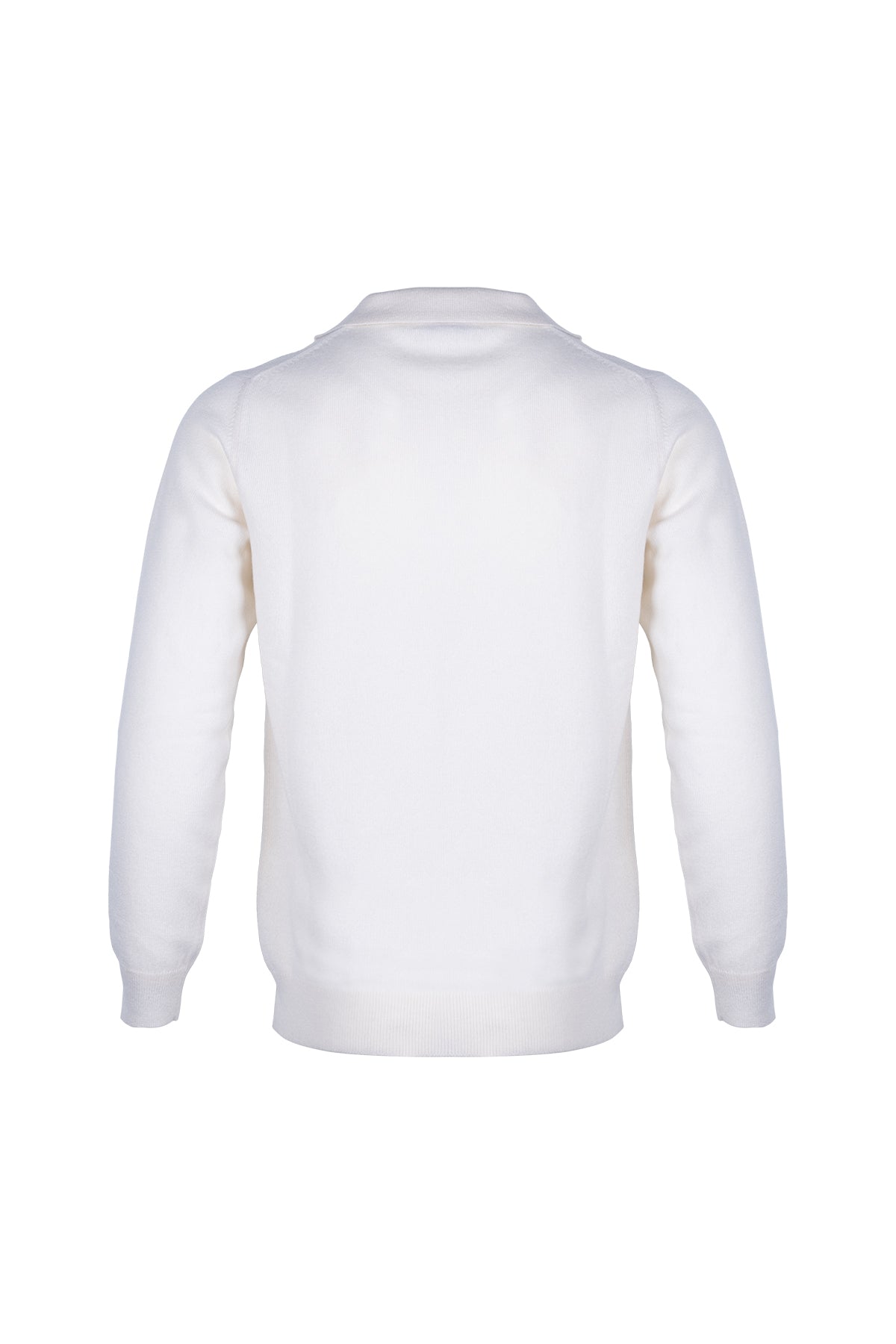Ekru Saf Kaşmir Düğmesiz Polo Kazak