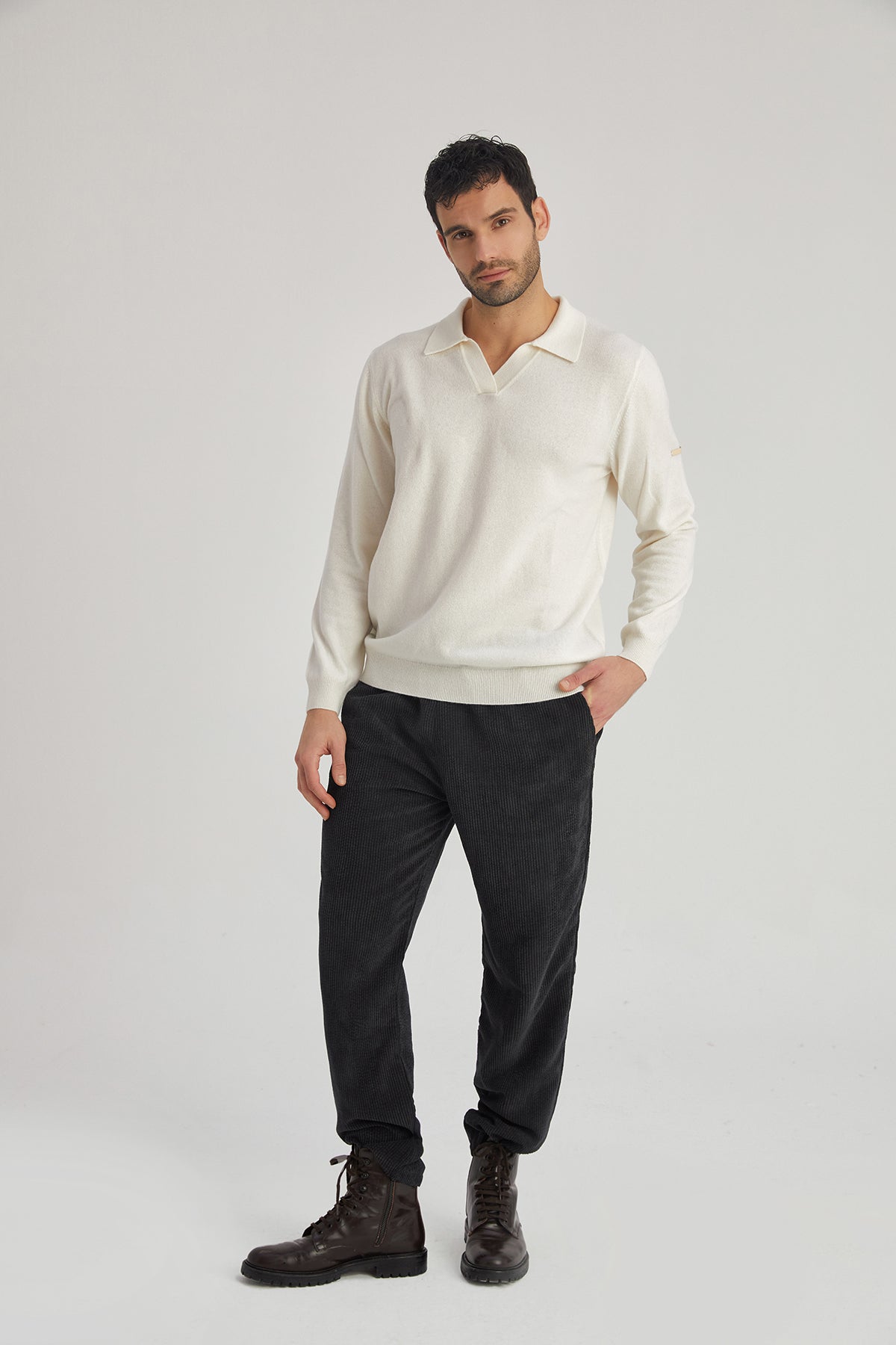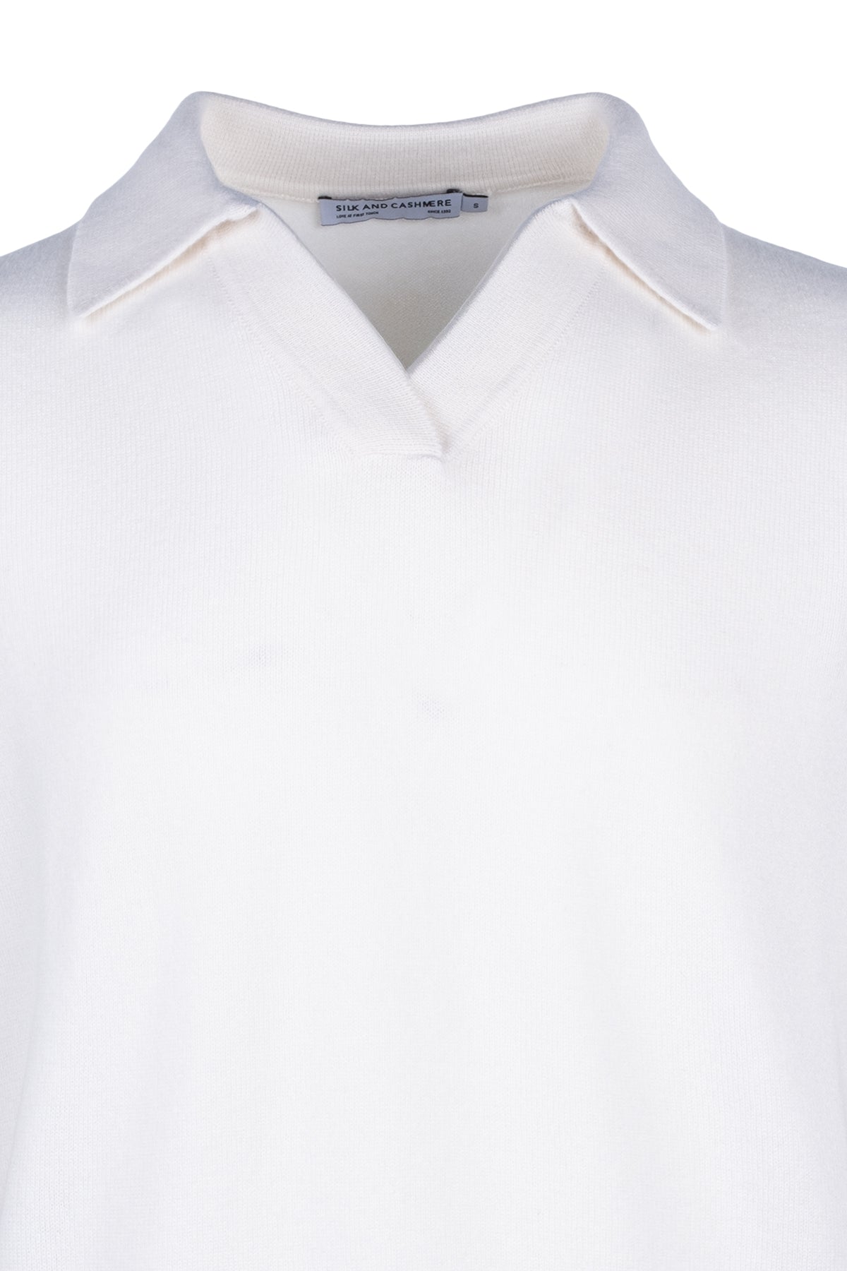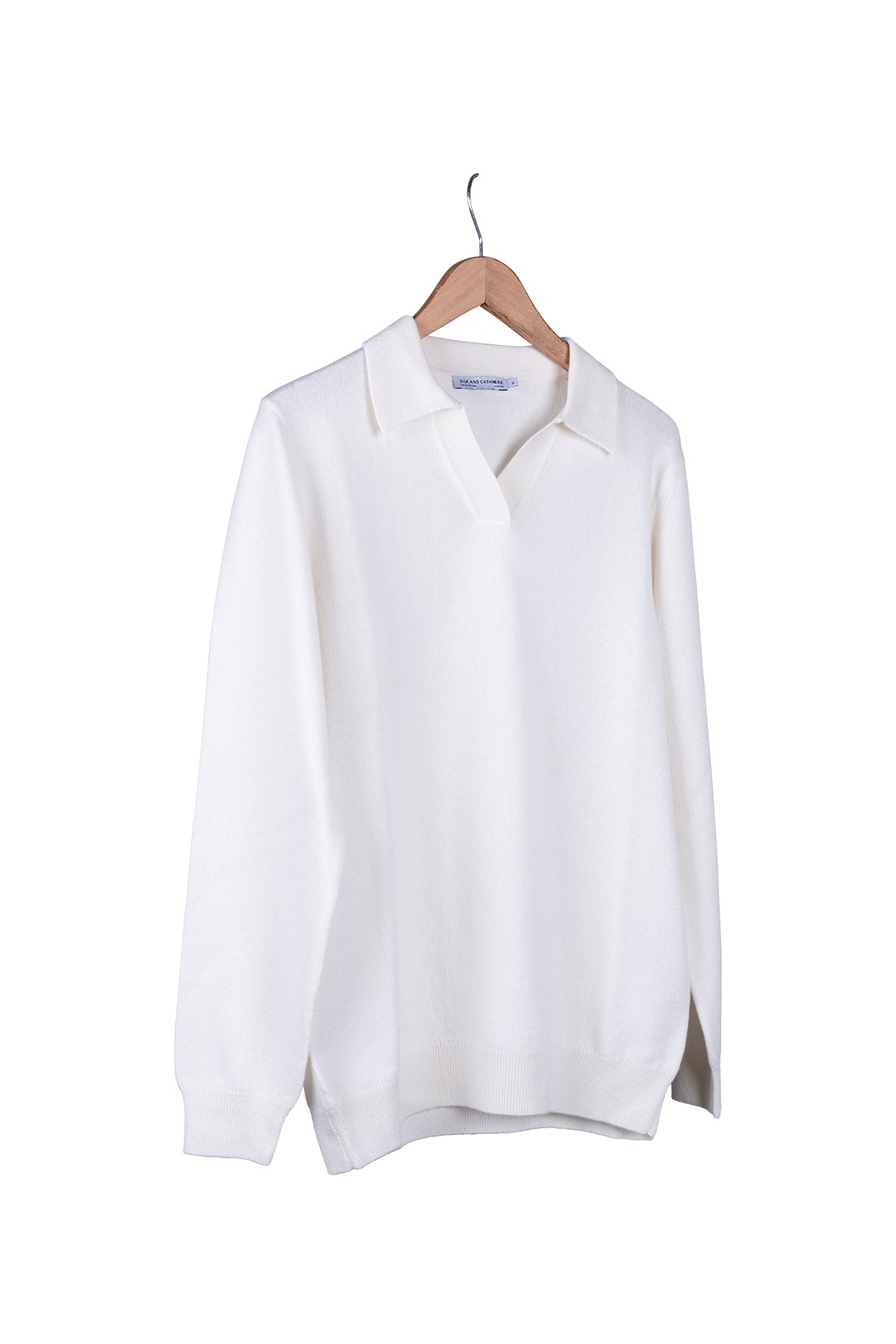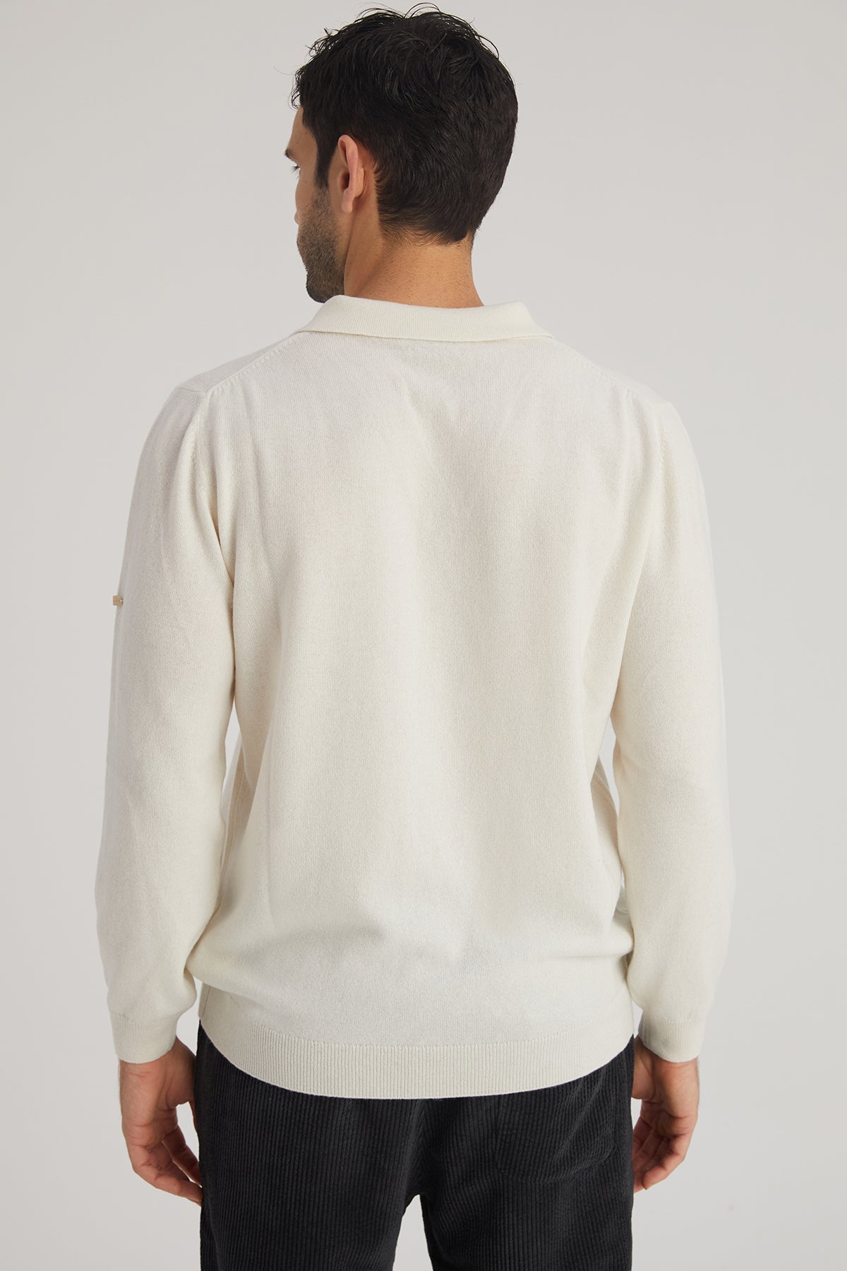Ekru Saf Kaşmir Düğmesiz Polo Kazak