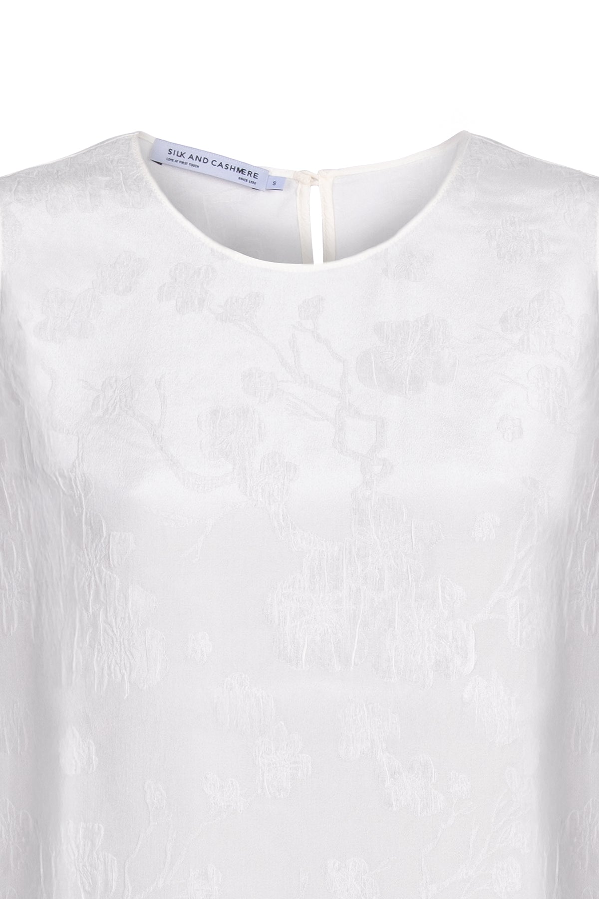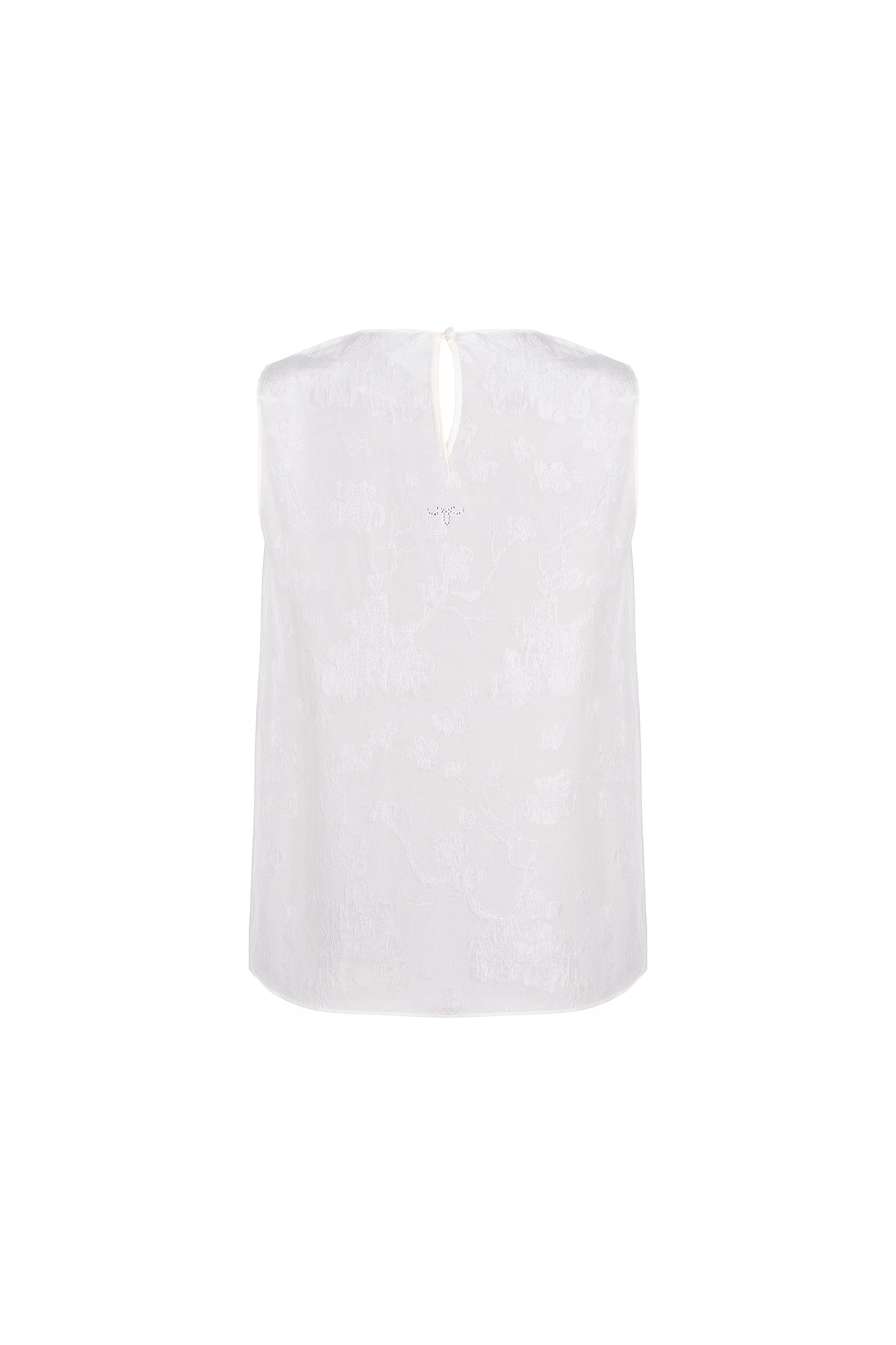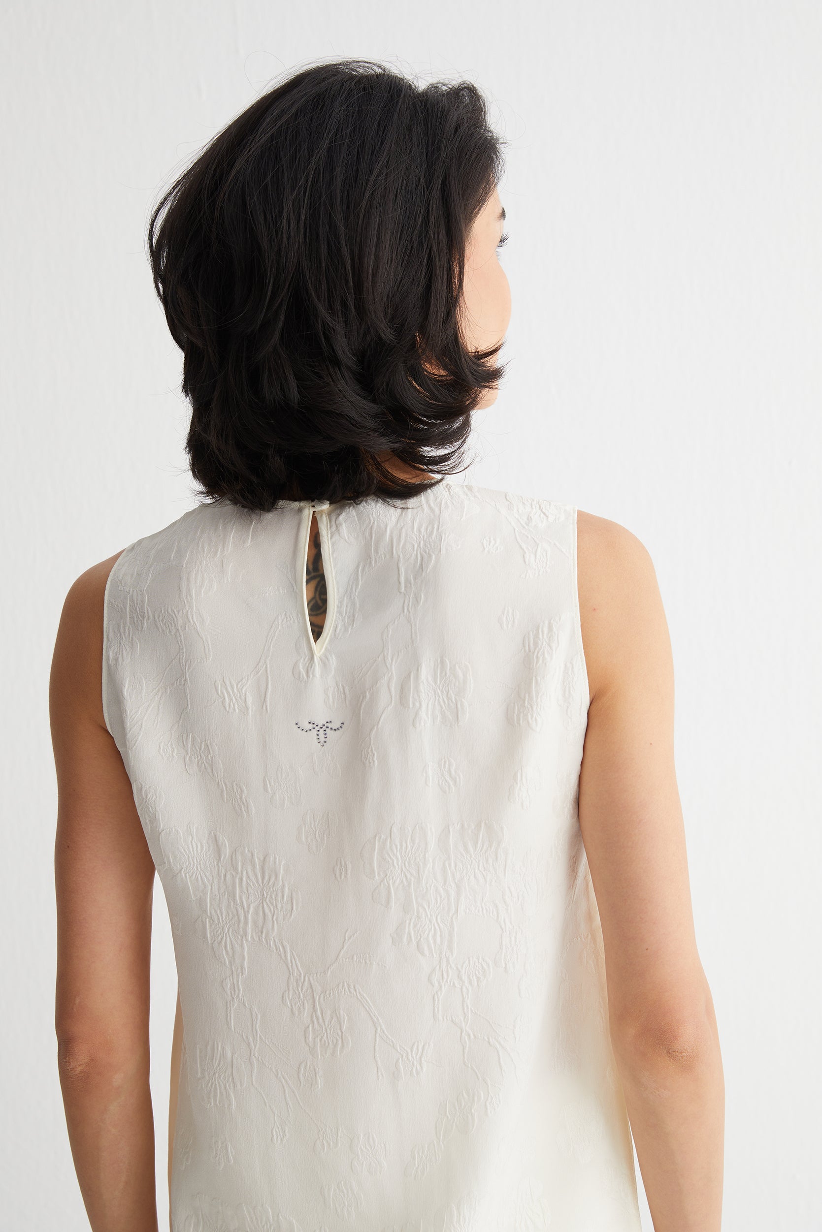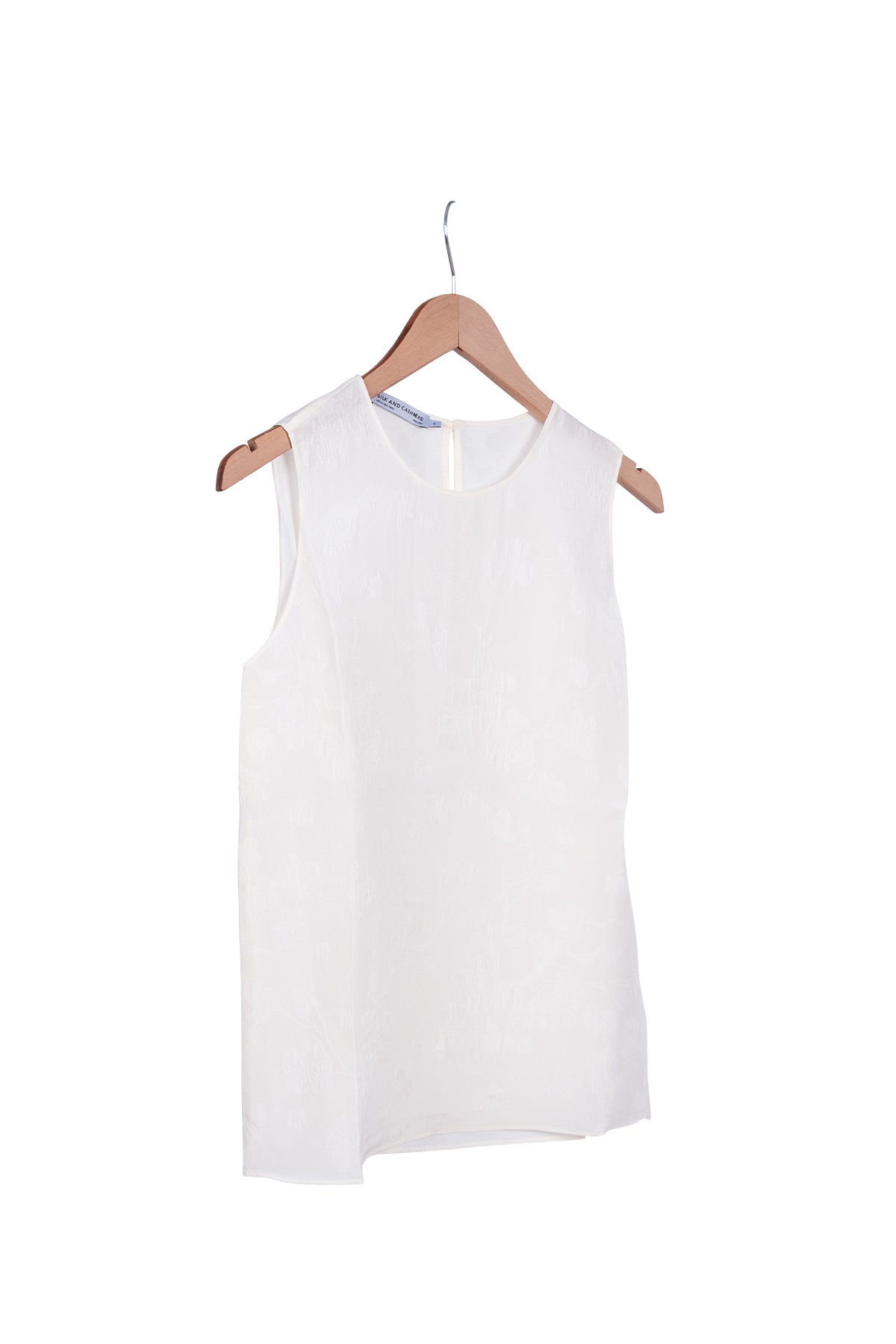 Ekru Toscana Saf İpek Yuvarlak Yaka Kolsuz Bluz