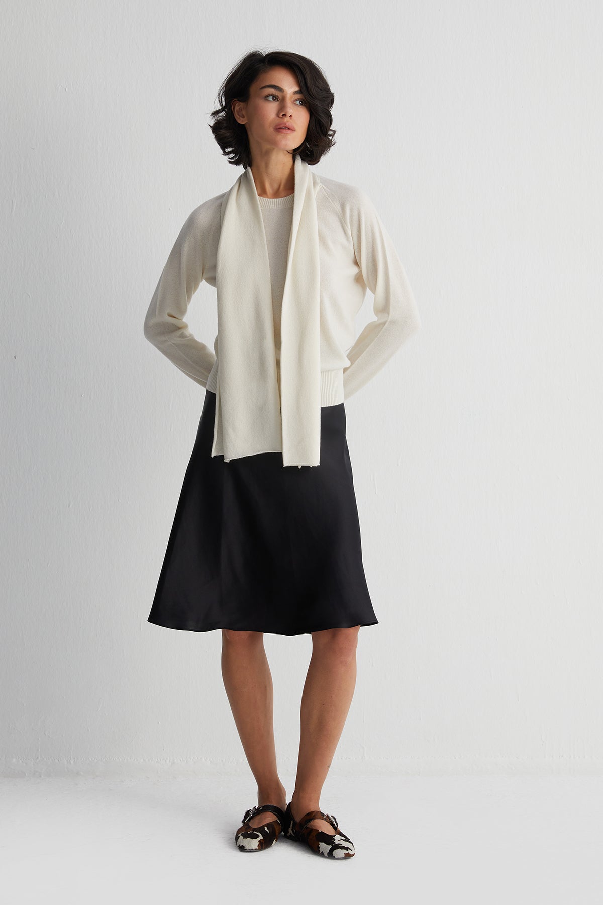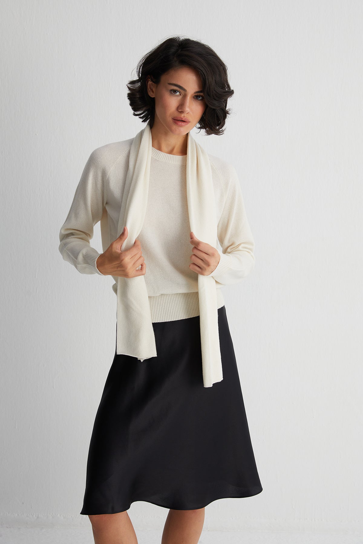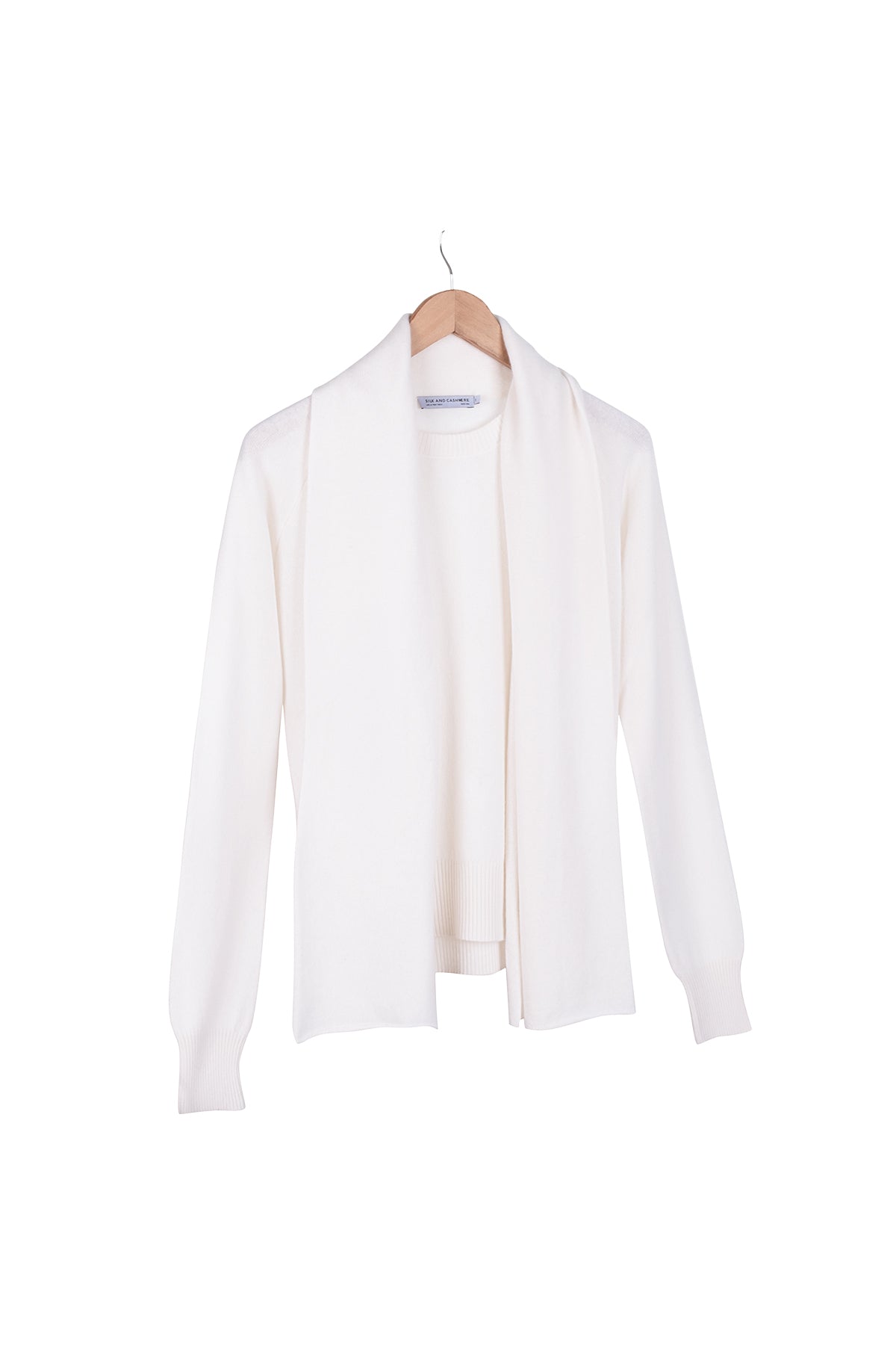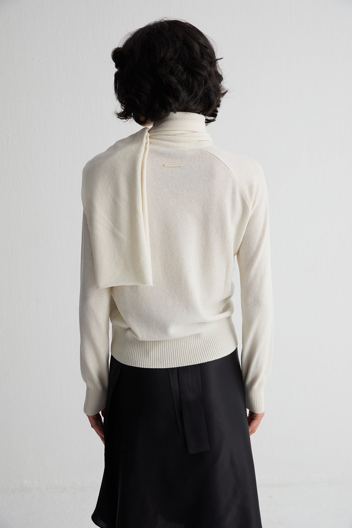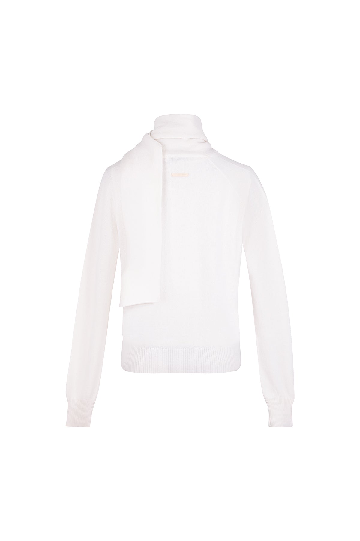 Ekru Vanessa Saf Kaşmir Atkı Yakalı Kazak
