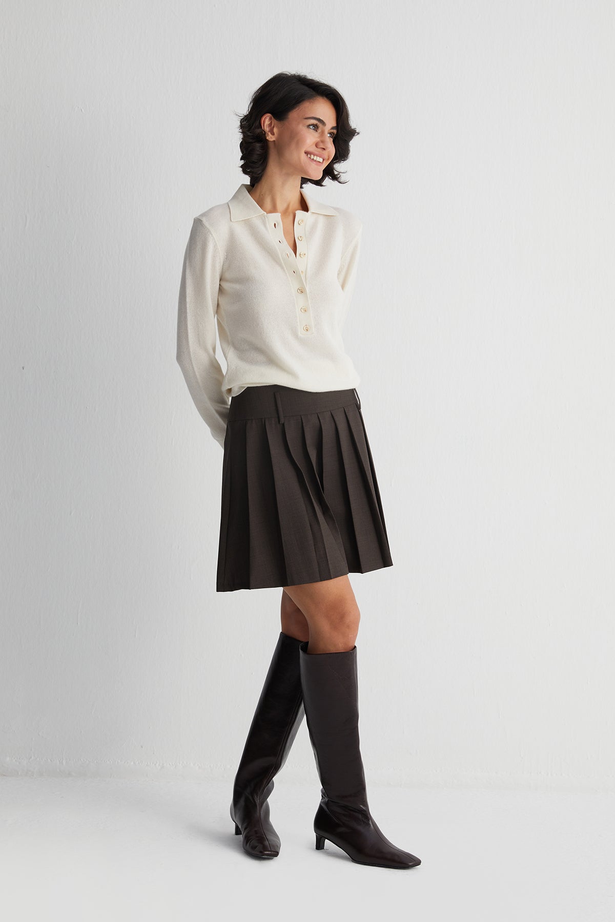Vanessa Polo Kazak, zamansız bir tasarımı saf kaşmirin eşsiz dokusuyla buluşturuyor. Her detayında özenli işçiliğin izlerini taşıyan bu özel parça, günün her anına uyum sağlayan rafine bir duruş sunar. Zarif duruşu ve yumuşacık hissiyle gardırobunuzda ayrıcalıklı bir yer edinmeye aday.