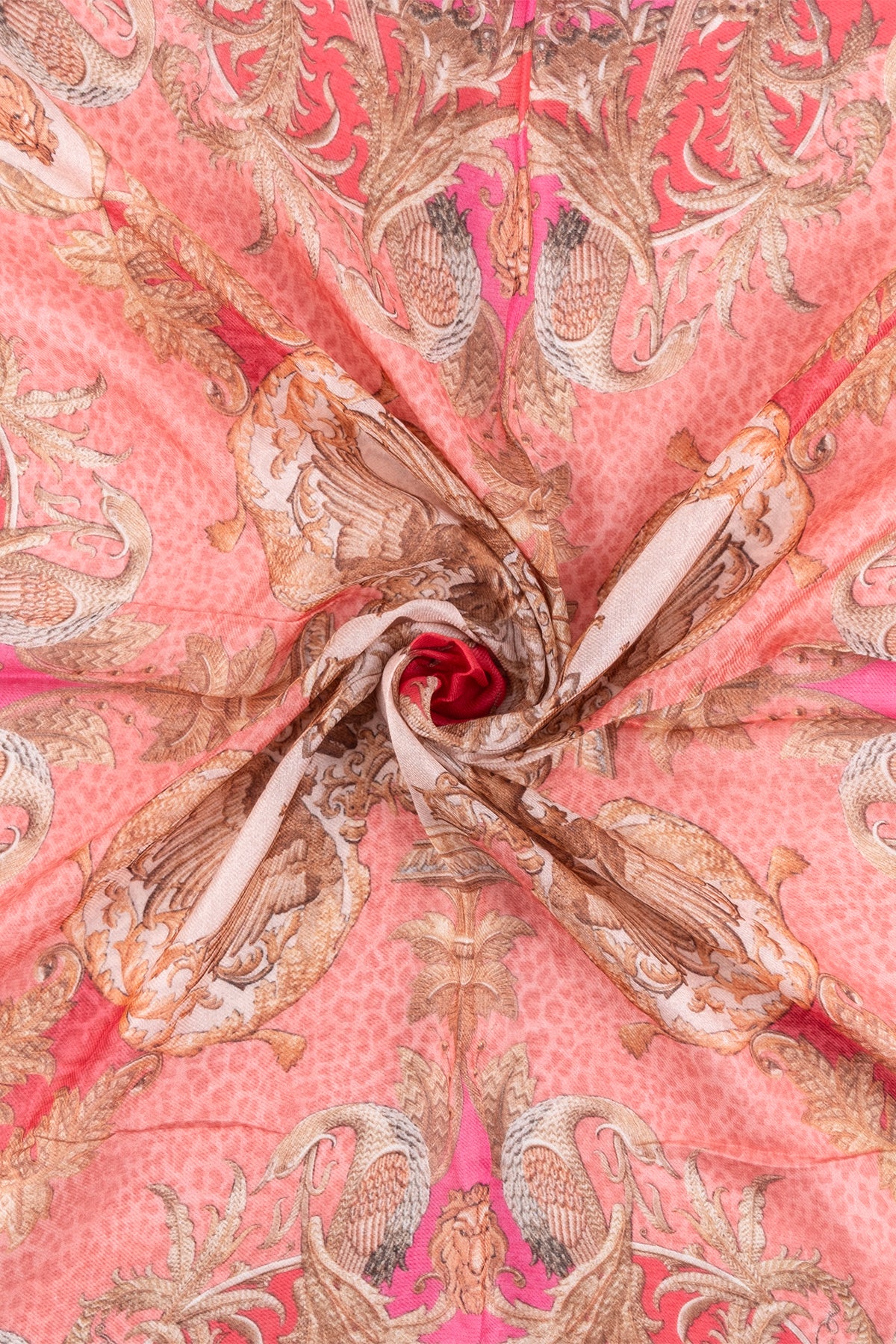 Fuşya Jas Desenli Kare Şal 70x70 cm