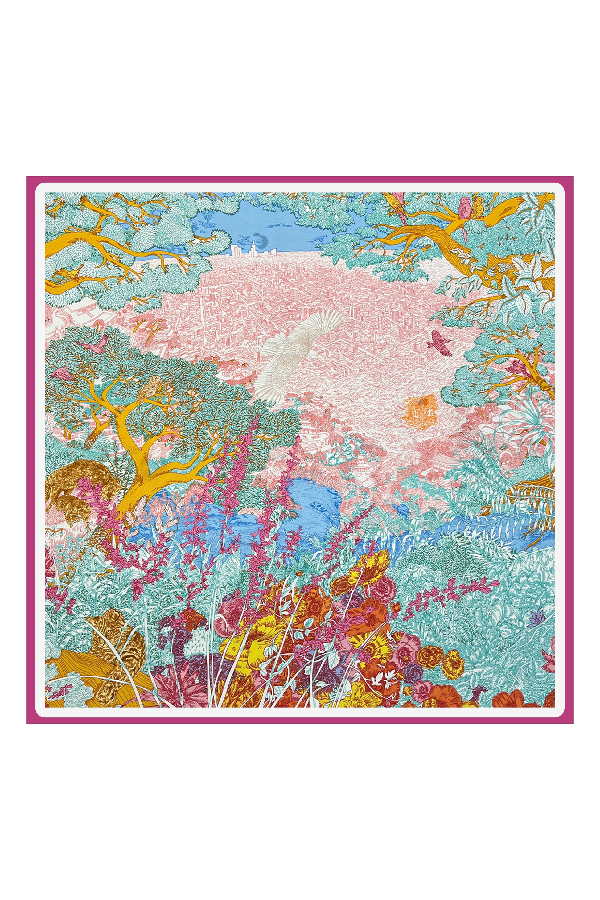 Fuşya Lena Saf İpek Roma Çift Taraflı Eşarp 70x70
