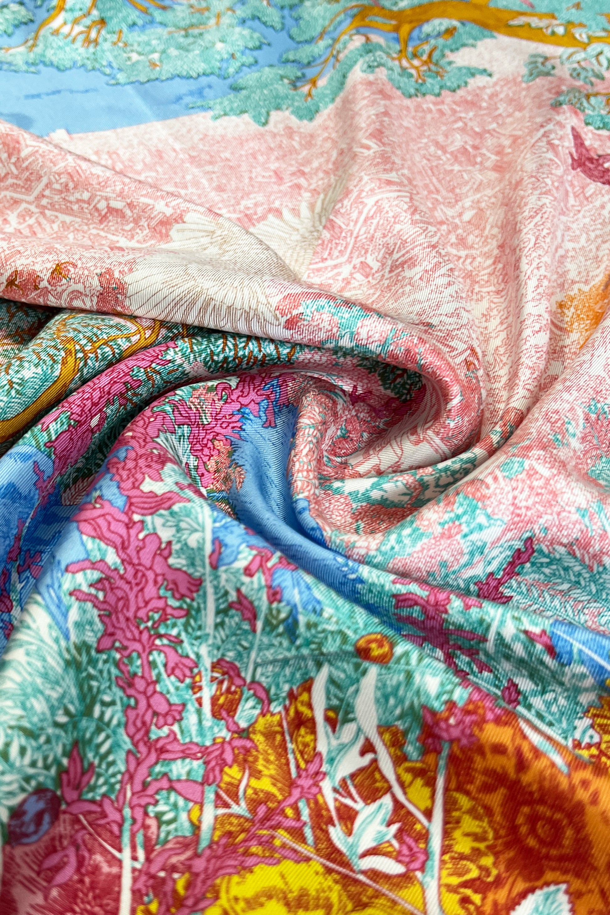 Fuşya Lena Saf İpek Roma Çift Taraflı Eşarp, ipek sanatının inceliklerini yansıtan çarpıcı bir tasarım sunar. Her yönüyle detaylı bir şekilde işlenmiş bu eşarp, renkli doğa manzaraları ve dinamik desenleri ile her bakışta yeni bir hikaye anlatır. Fuşya ve diğer canlı renklerin zengin kombinasyonu, bu eşarba sofistike bir hava katar.