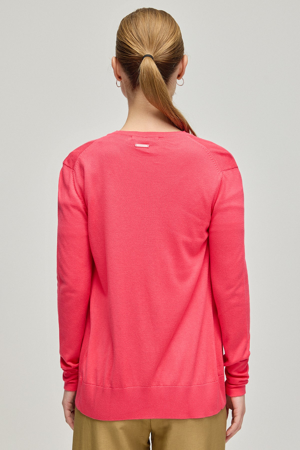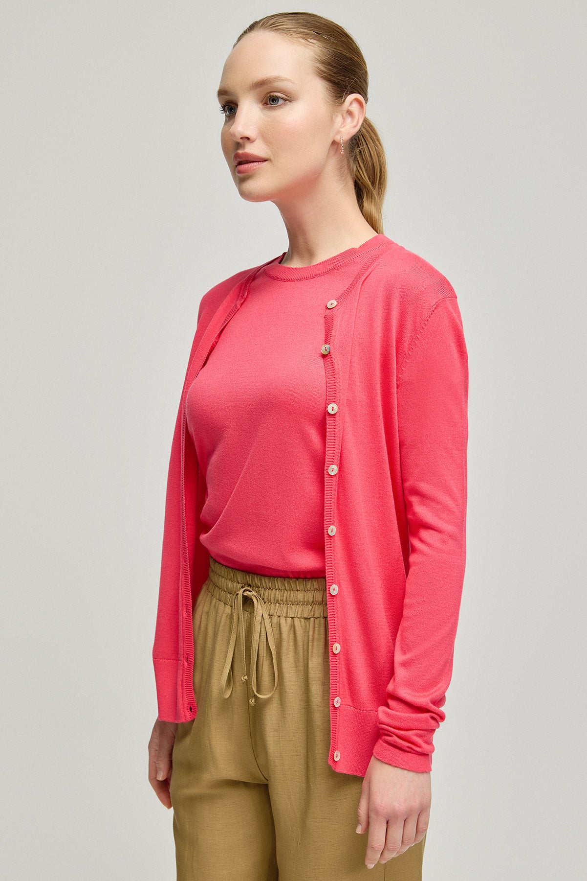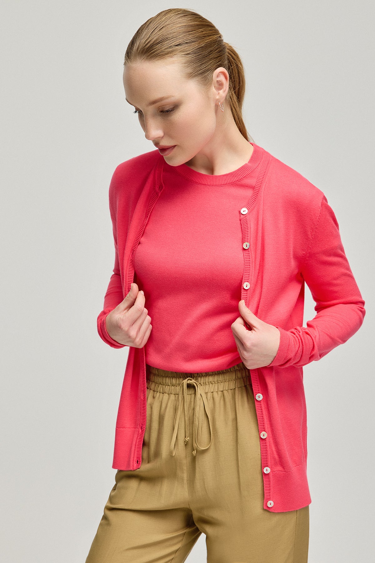 Fuşya Pamuk Modal Juno Yuvarlak Yaka Uzun Kollu Hırka