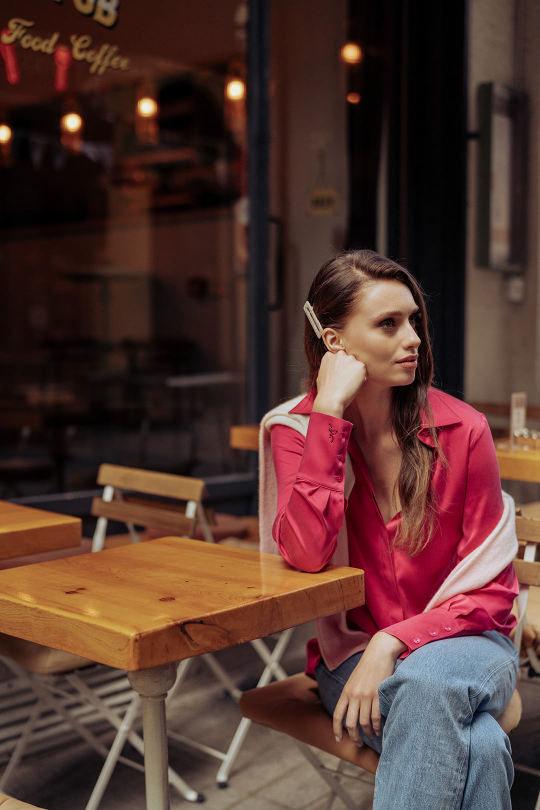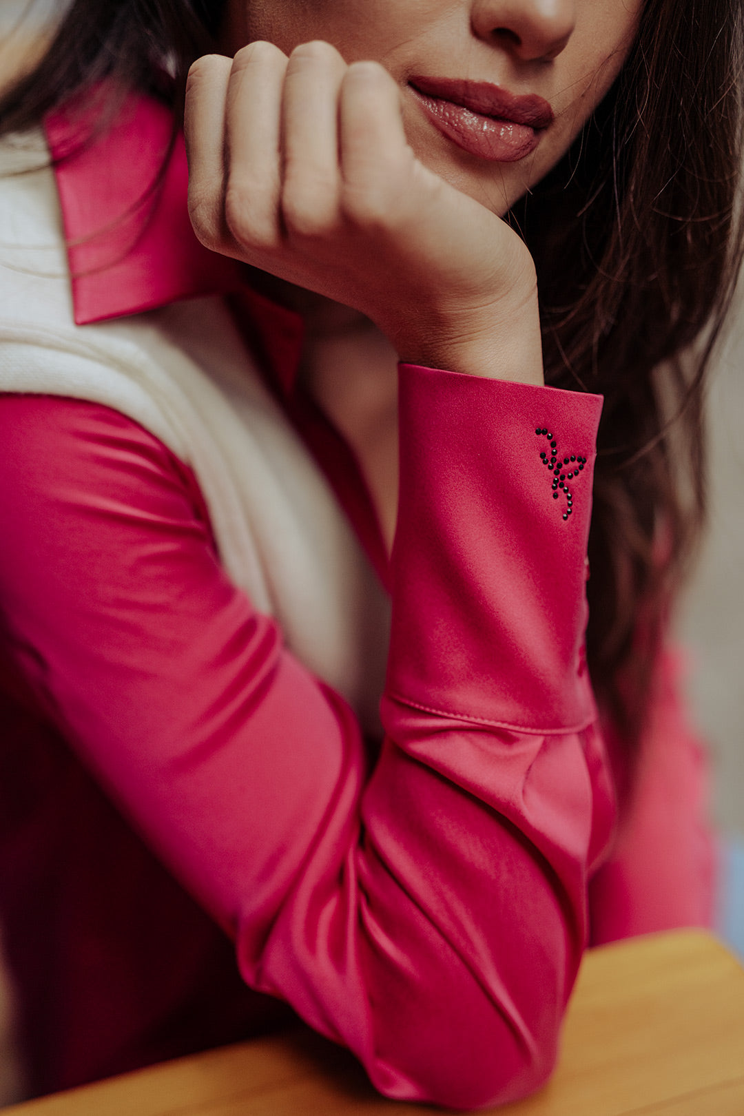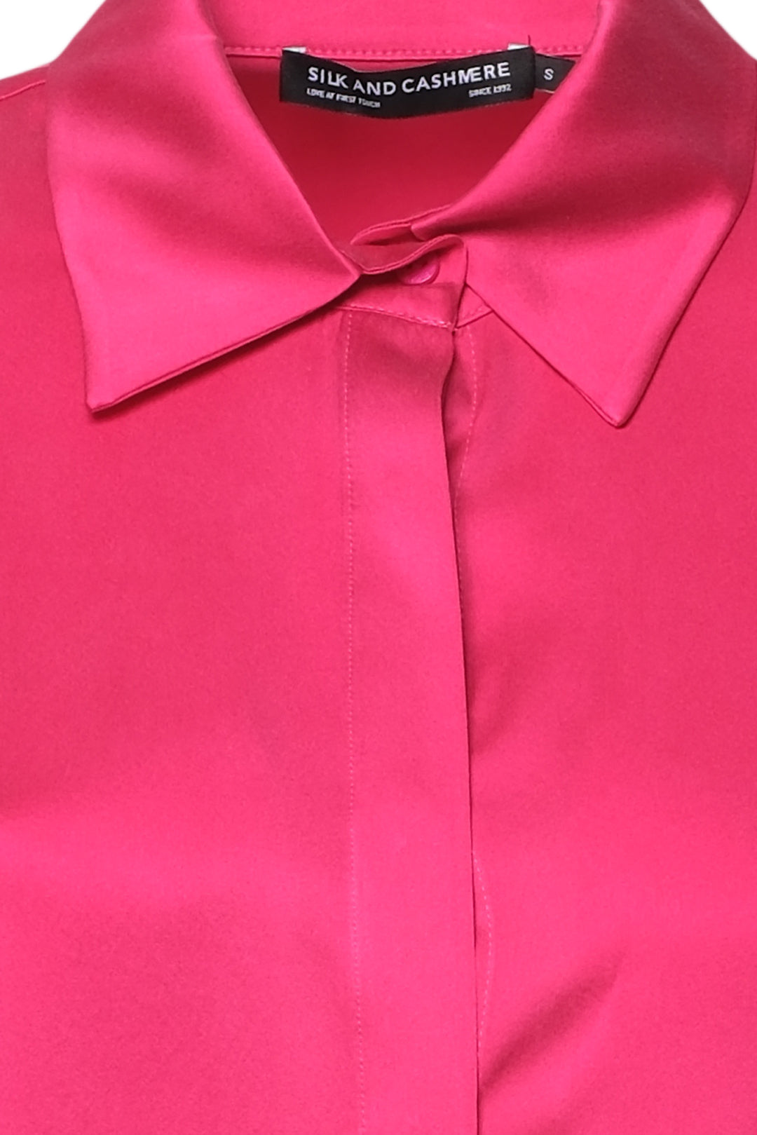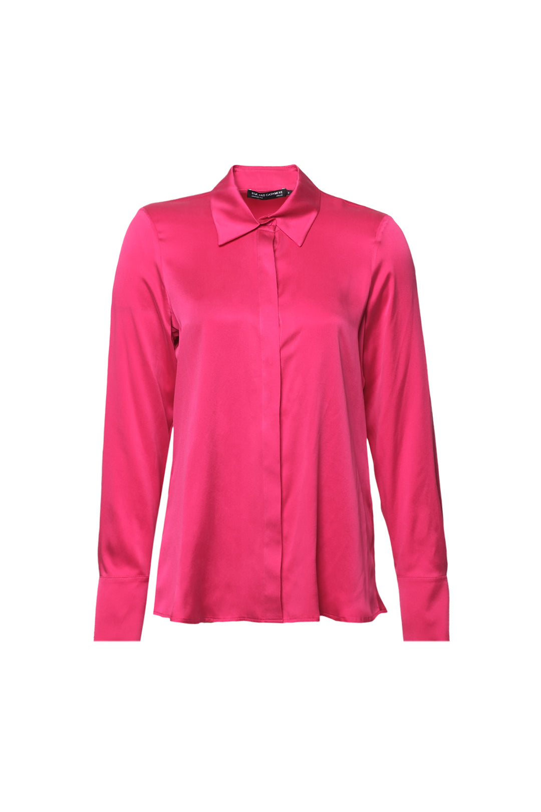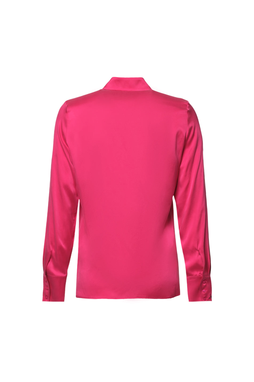 Fuşya Saf İpek Audrey Uzun Kollu Gömlek