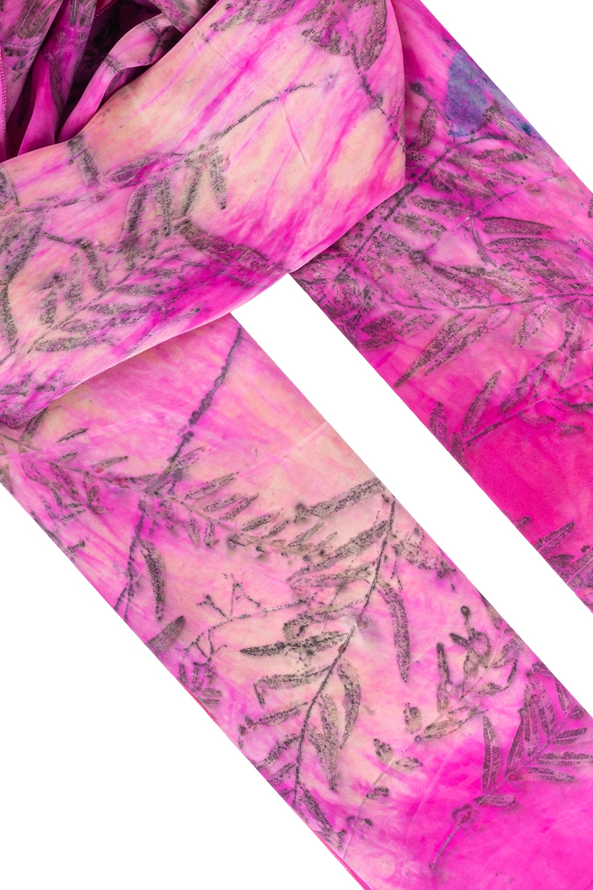 Fuşya Saf İpek El Baskısı Ekolojik Şal 90 x 200 cm