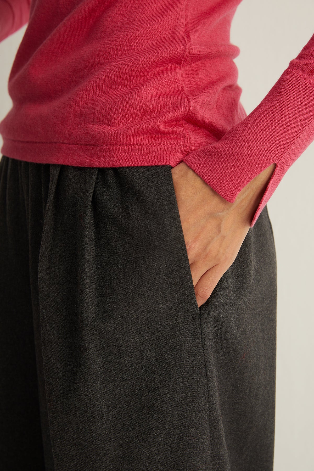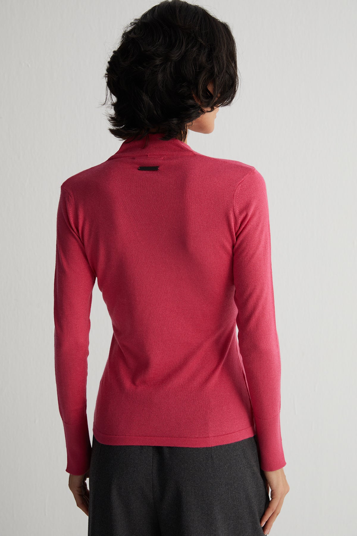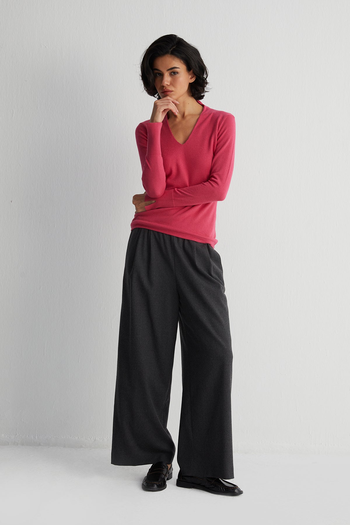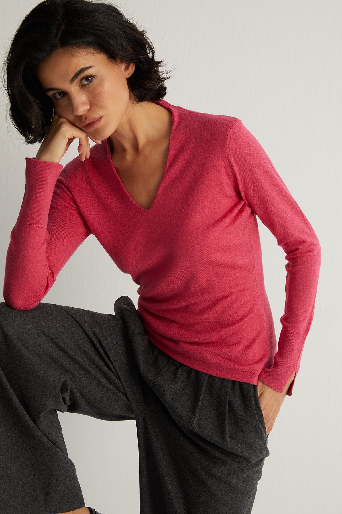 Fuşya Zoe İpek Kaşmir Derin V Yaka Triko