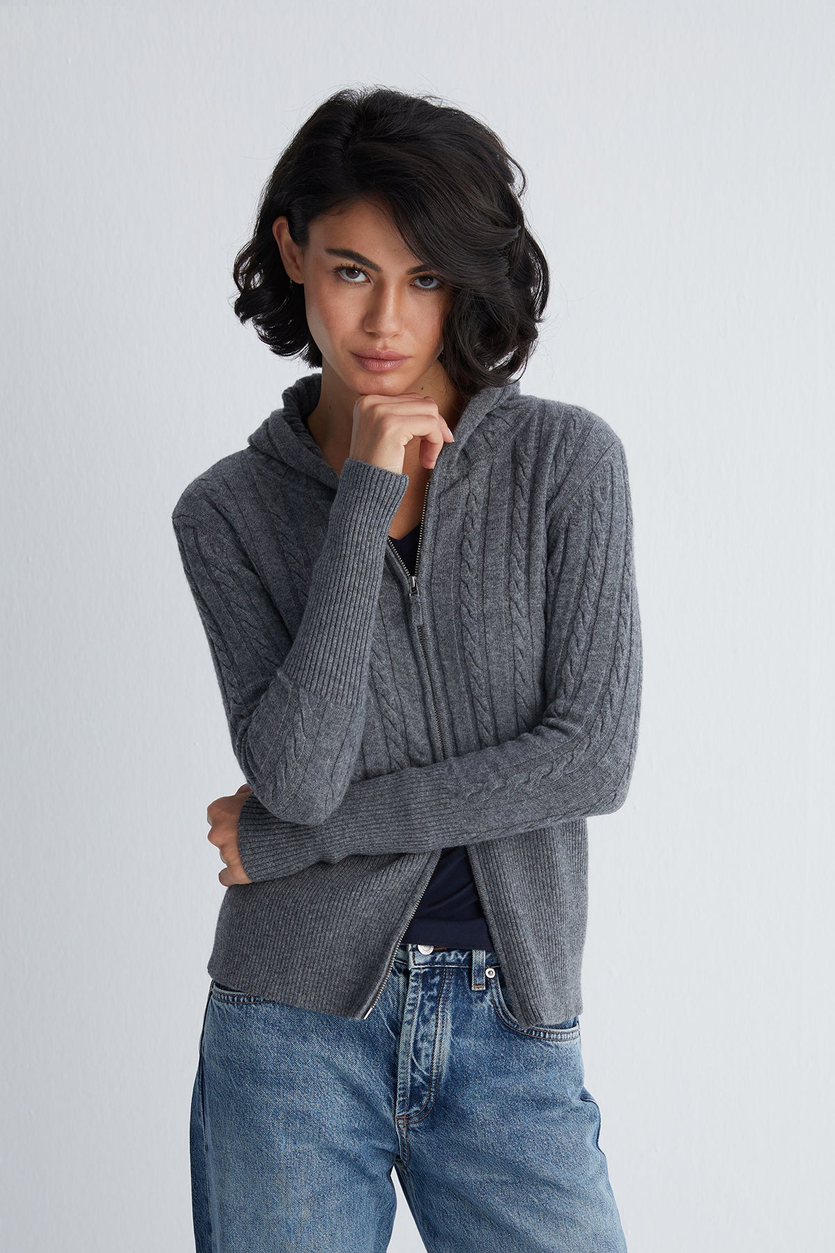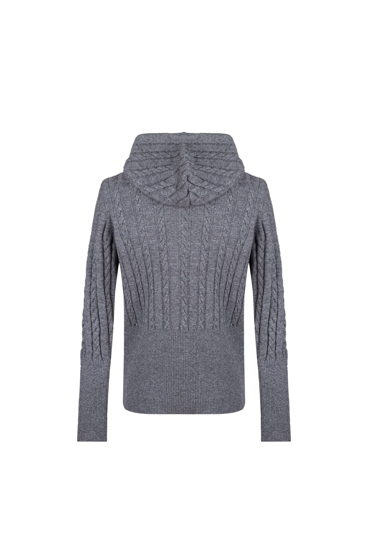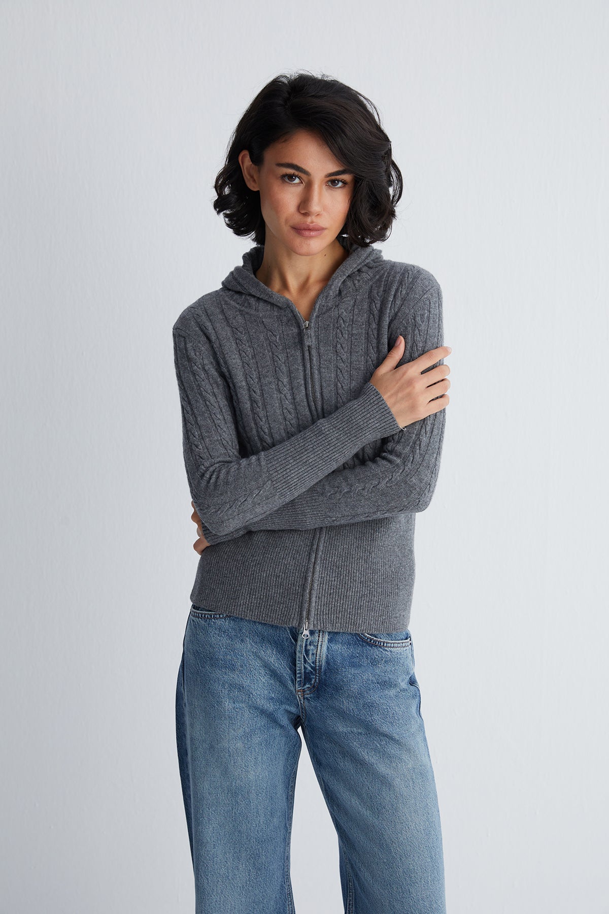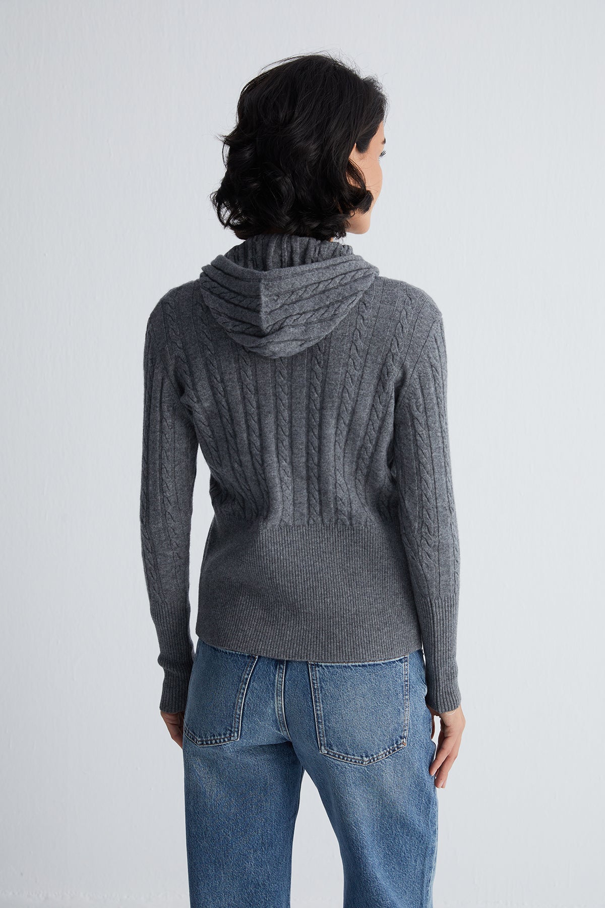 Gri Amelia Yün Kaşmir Kapüşonlu Hırka