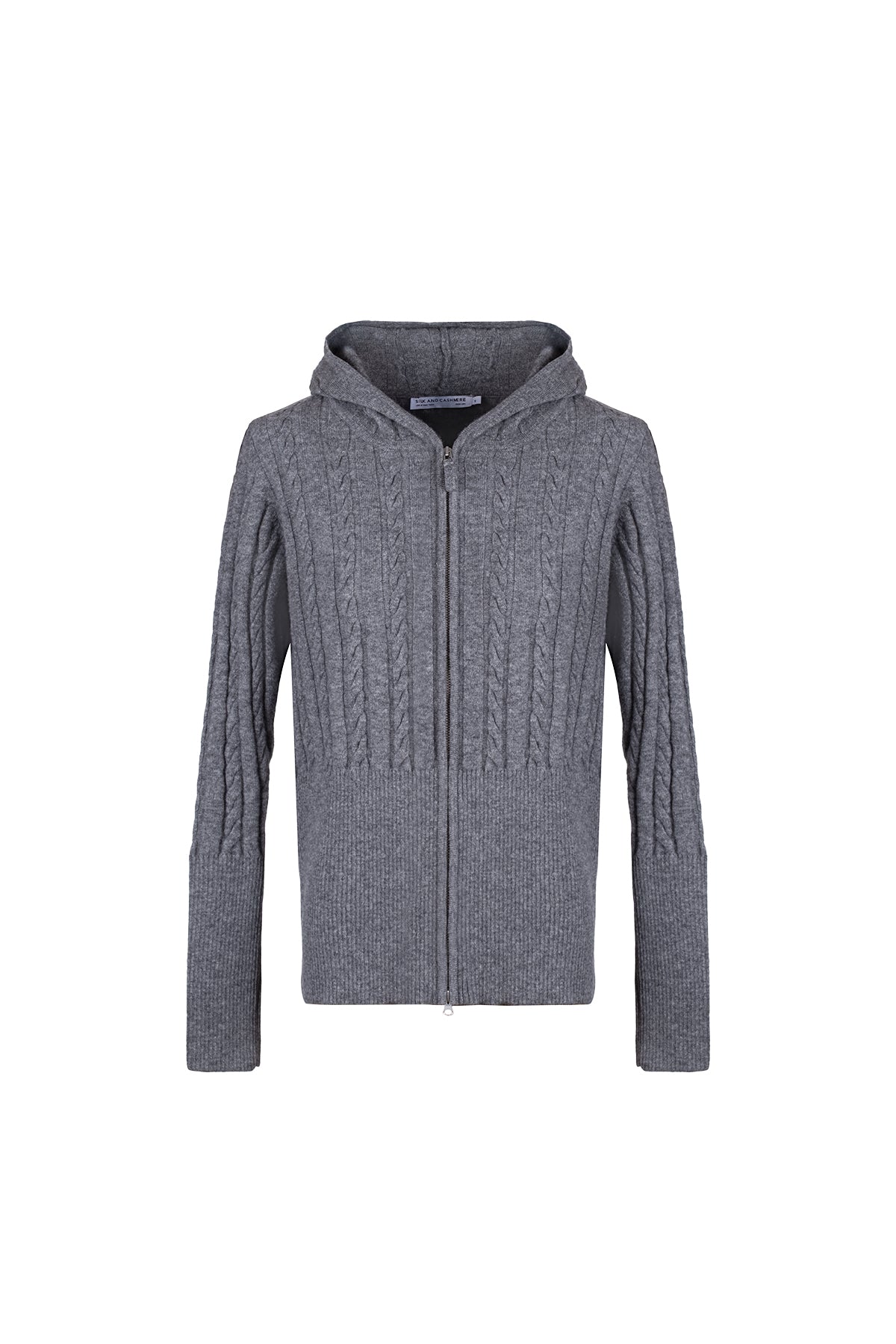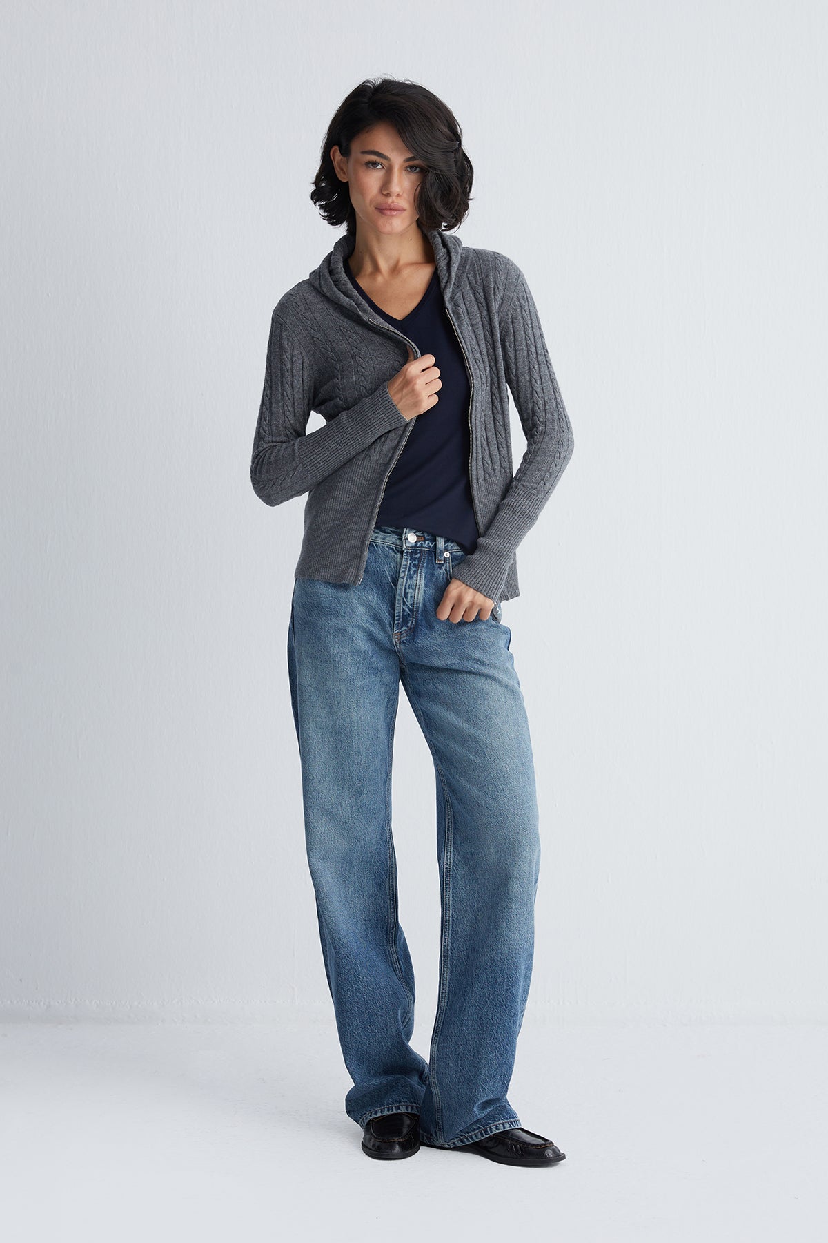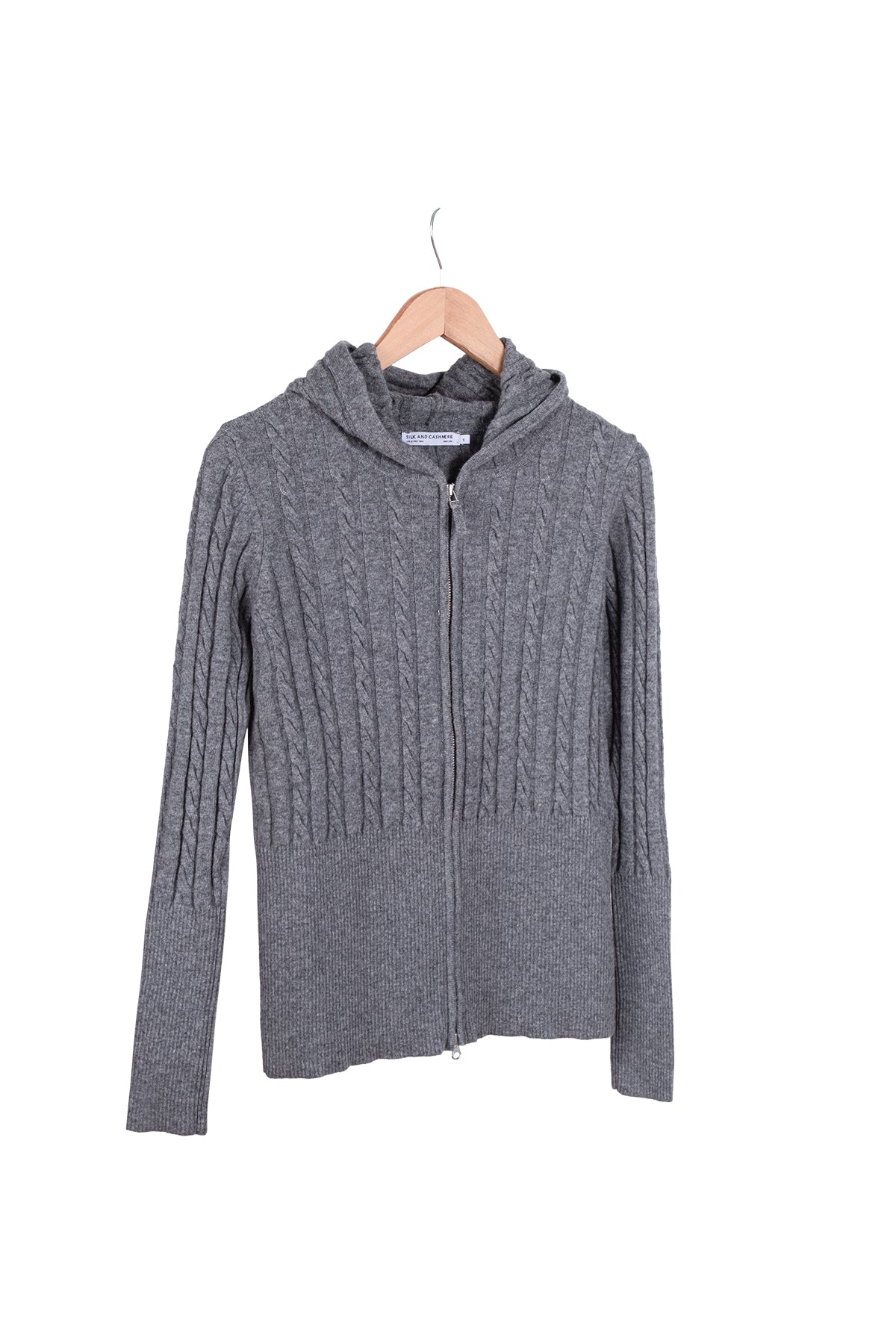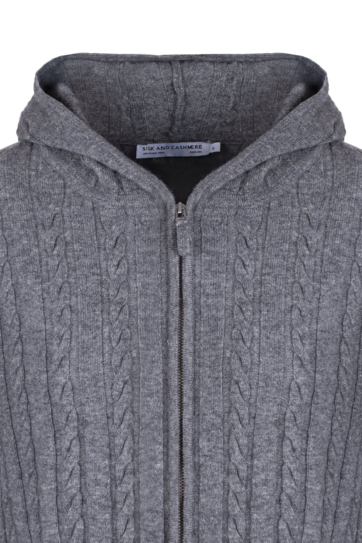 Gri Amelia Yün Kaşmir Kapüşonlu Hırka