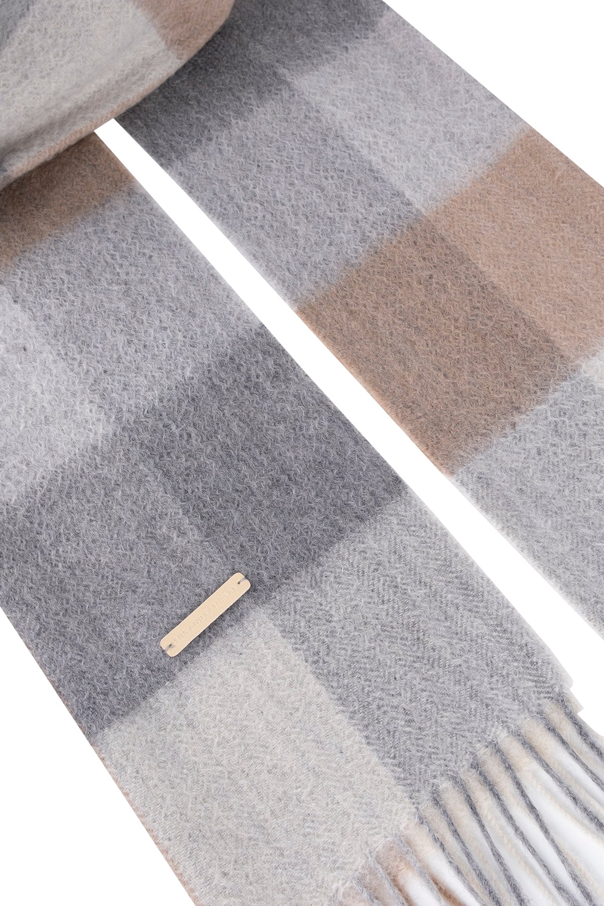 Gri Bej Patrick Saf Kaşmir Kareli Atkı 30x164 cm