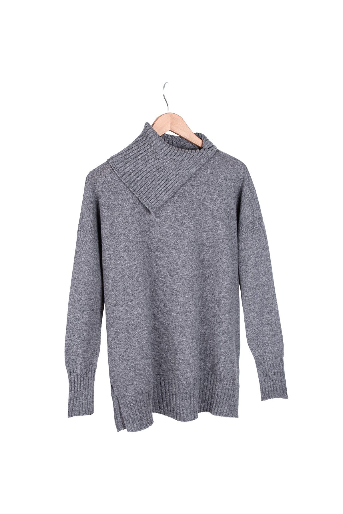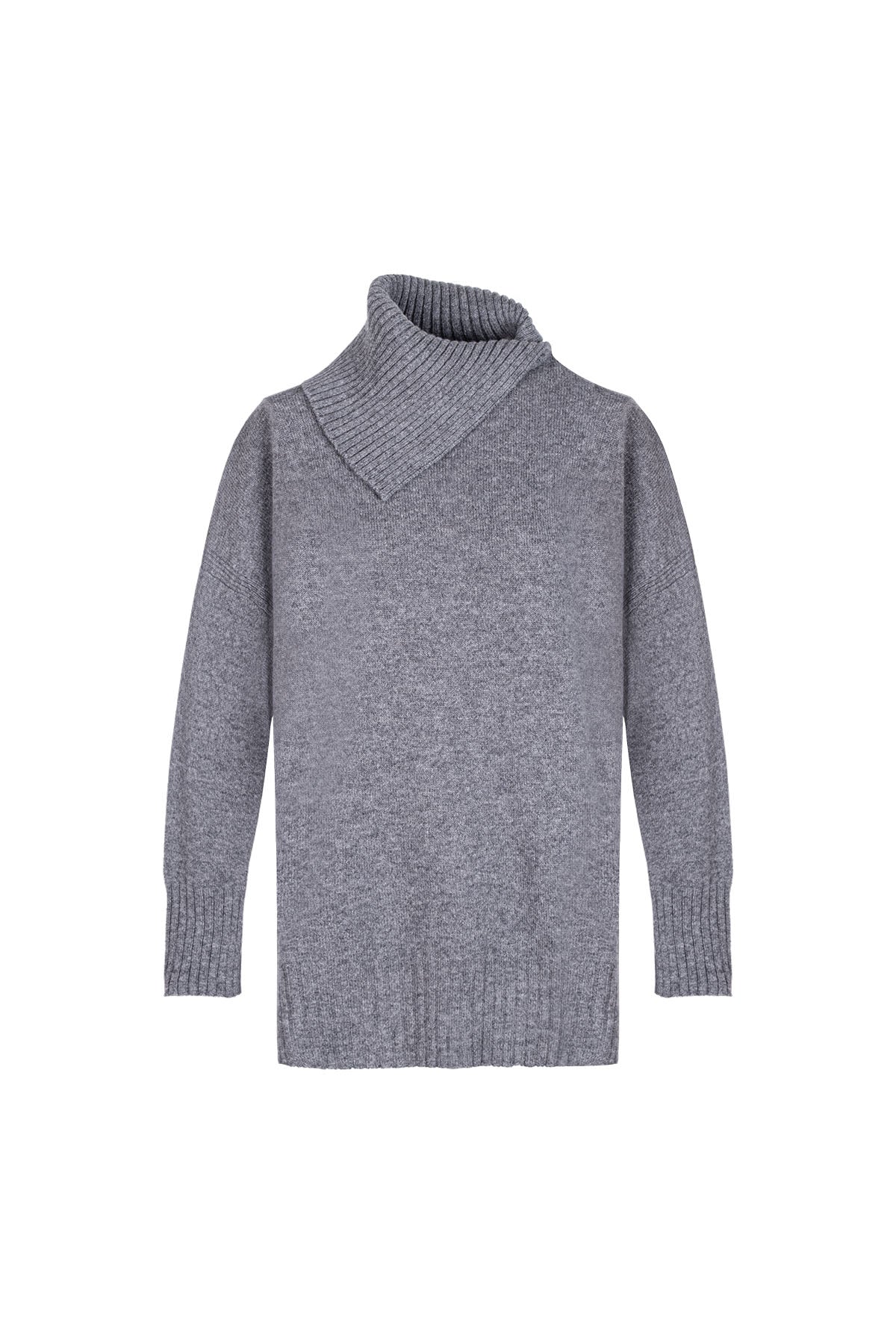 Gri Isabella Saf Kaşmir Balıkçı Yaka Kazak