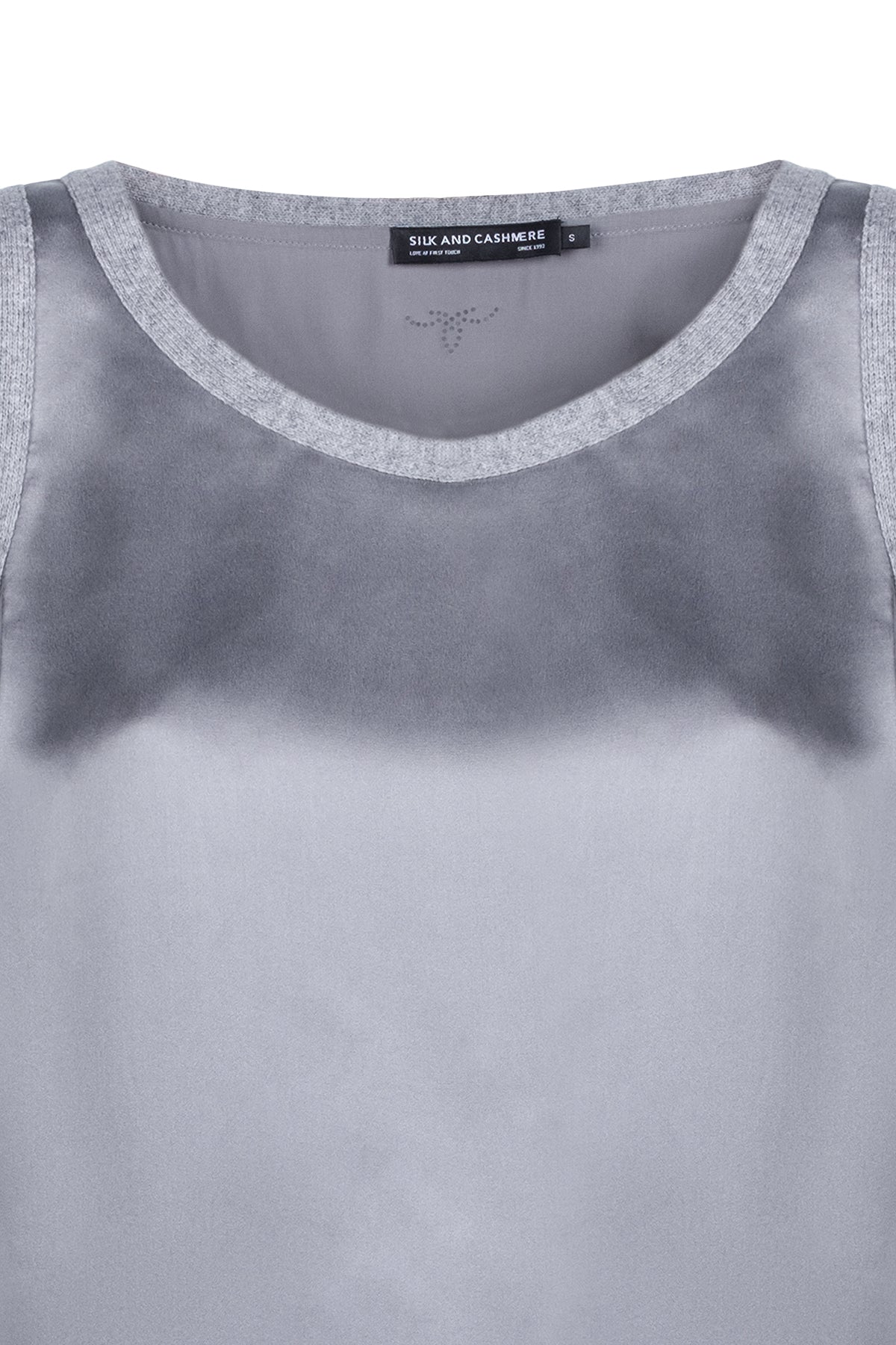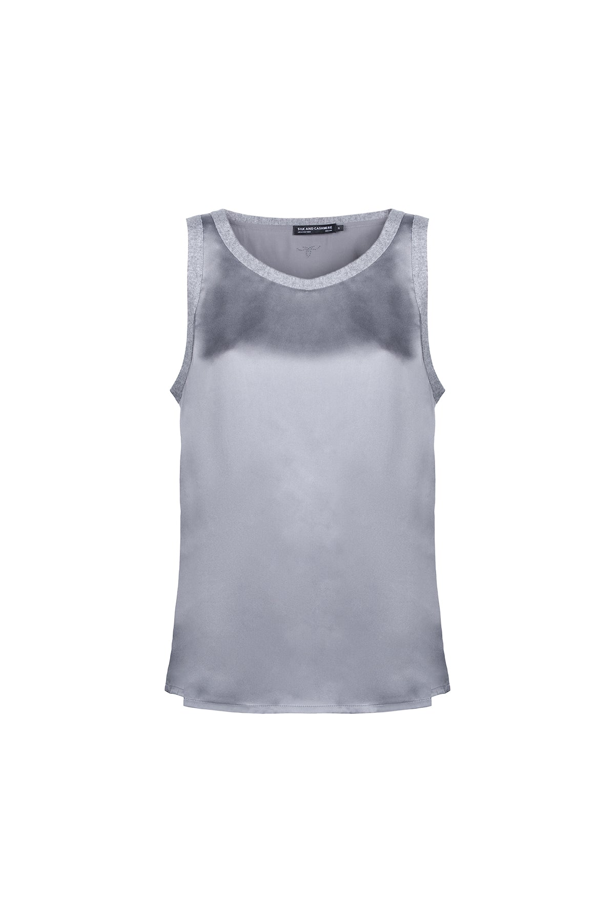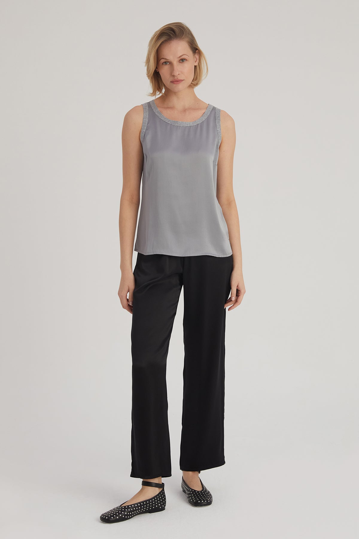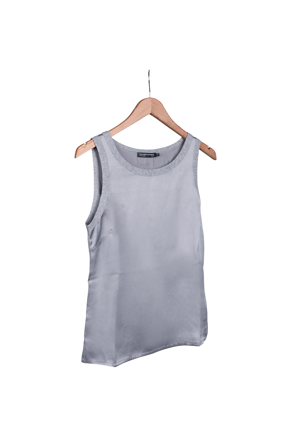Gri Knit Border İpekli Yuvarlak Yaka Kolsuz Bluz