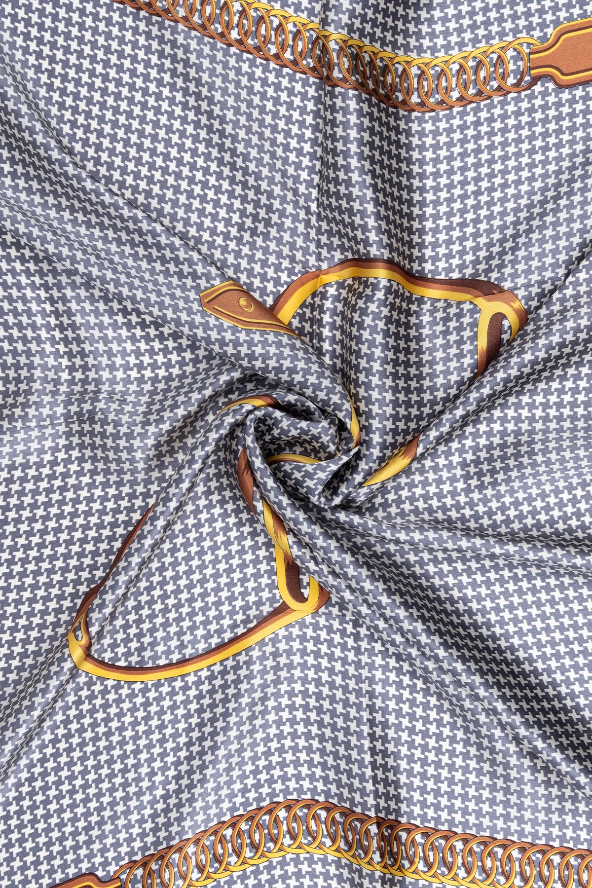 Gri Lara İpek Desenli Kare Eşarp 90x90