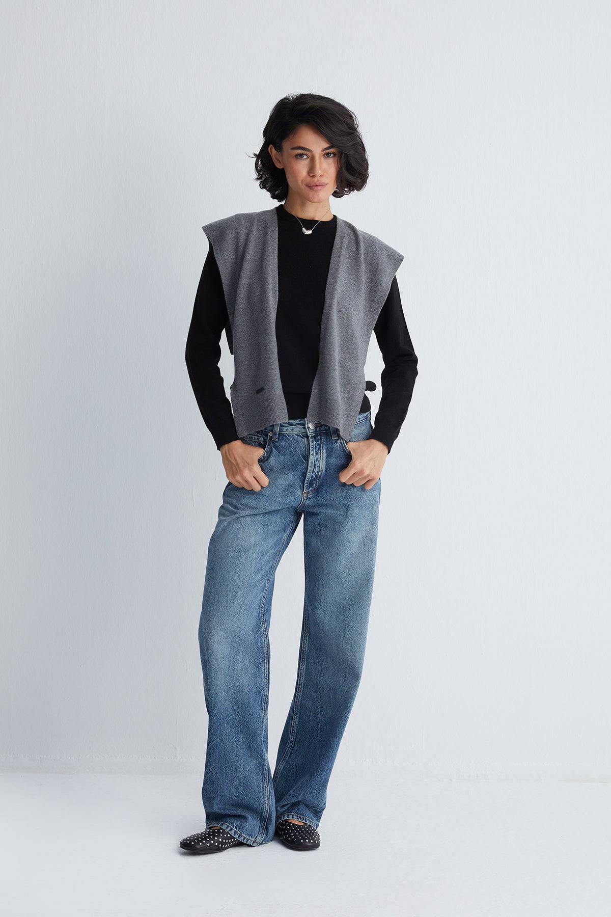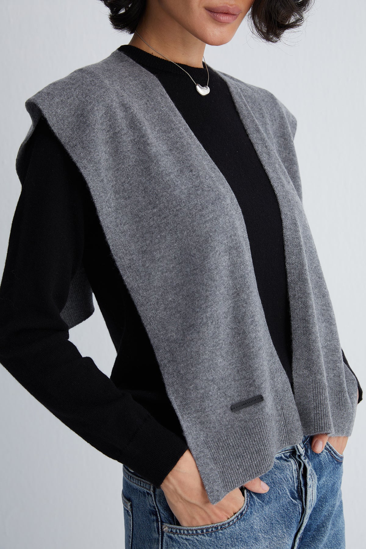 Kazak formlu özel kesimiyle sıradan atkıların ötesinde bir siluet sunar.