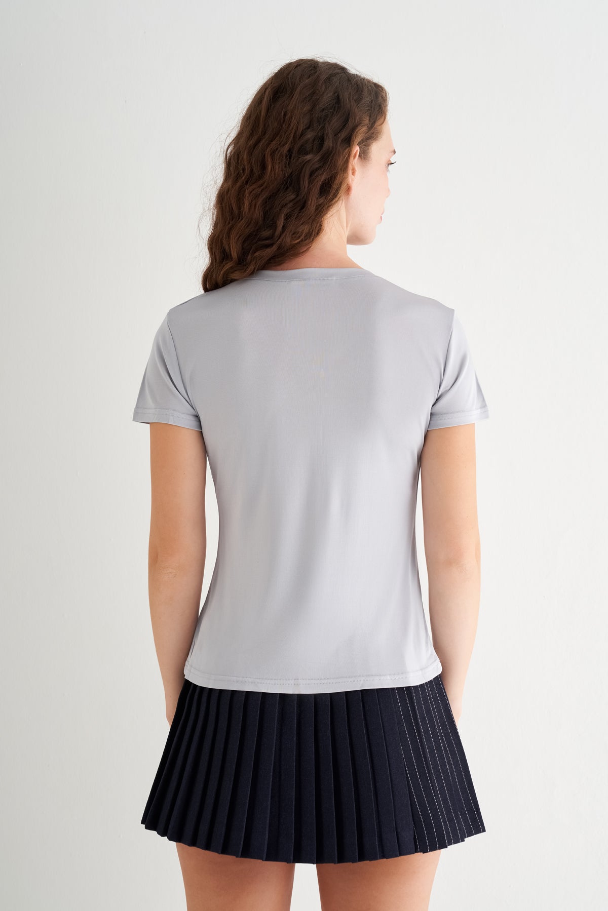 Gri Marina İpekli V Yaka Kısa Kollu T-Shirt