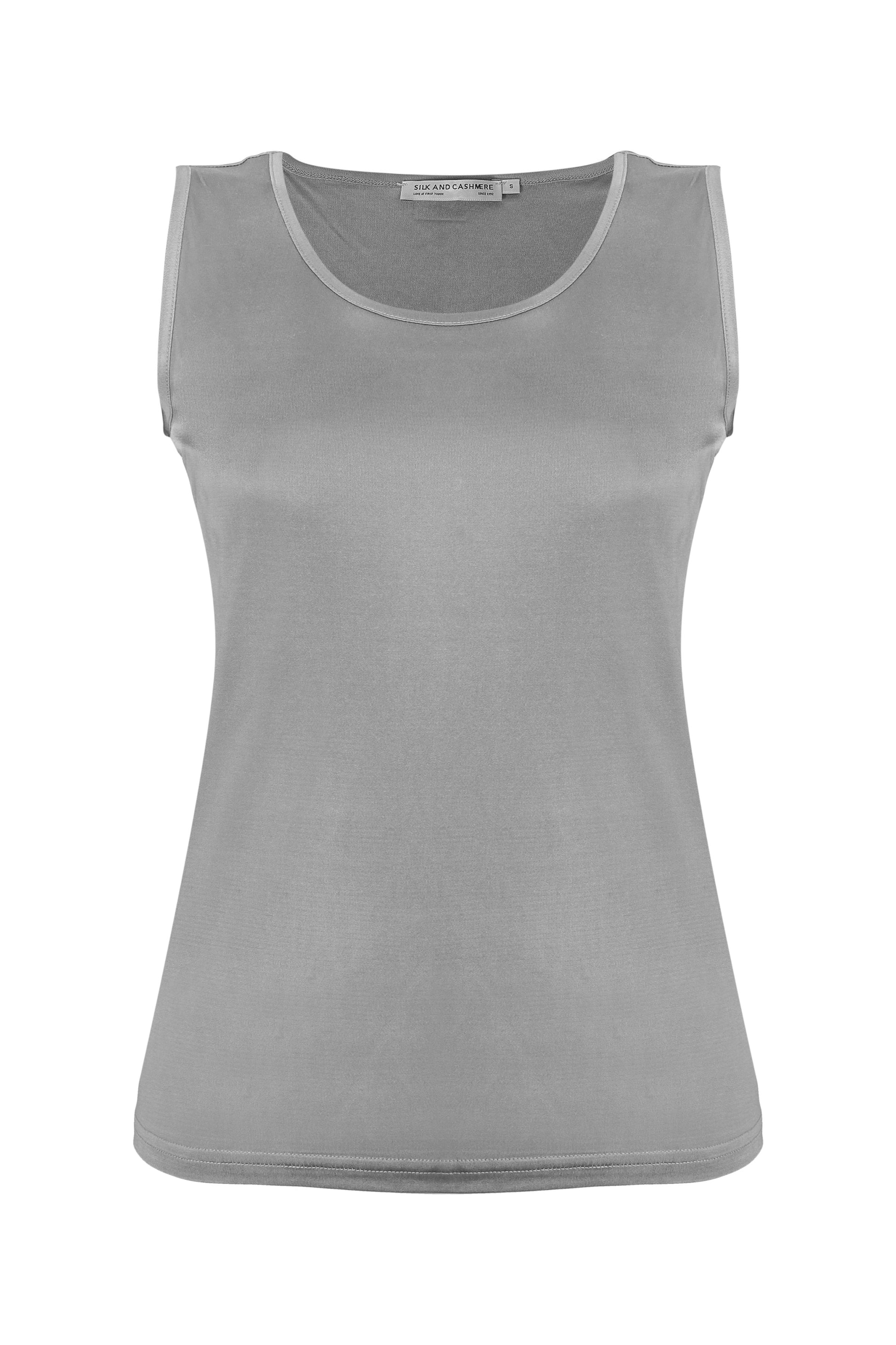 Gri Marina İpekli Yuvarlak Yaka Kolsuz T-Shirt