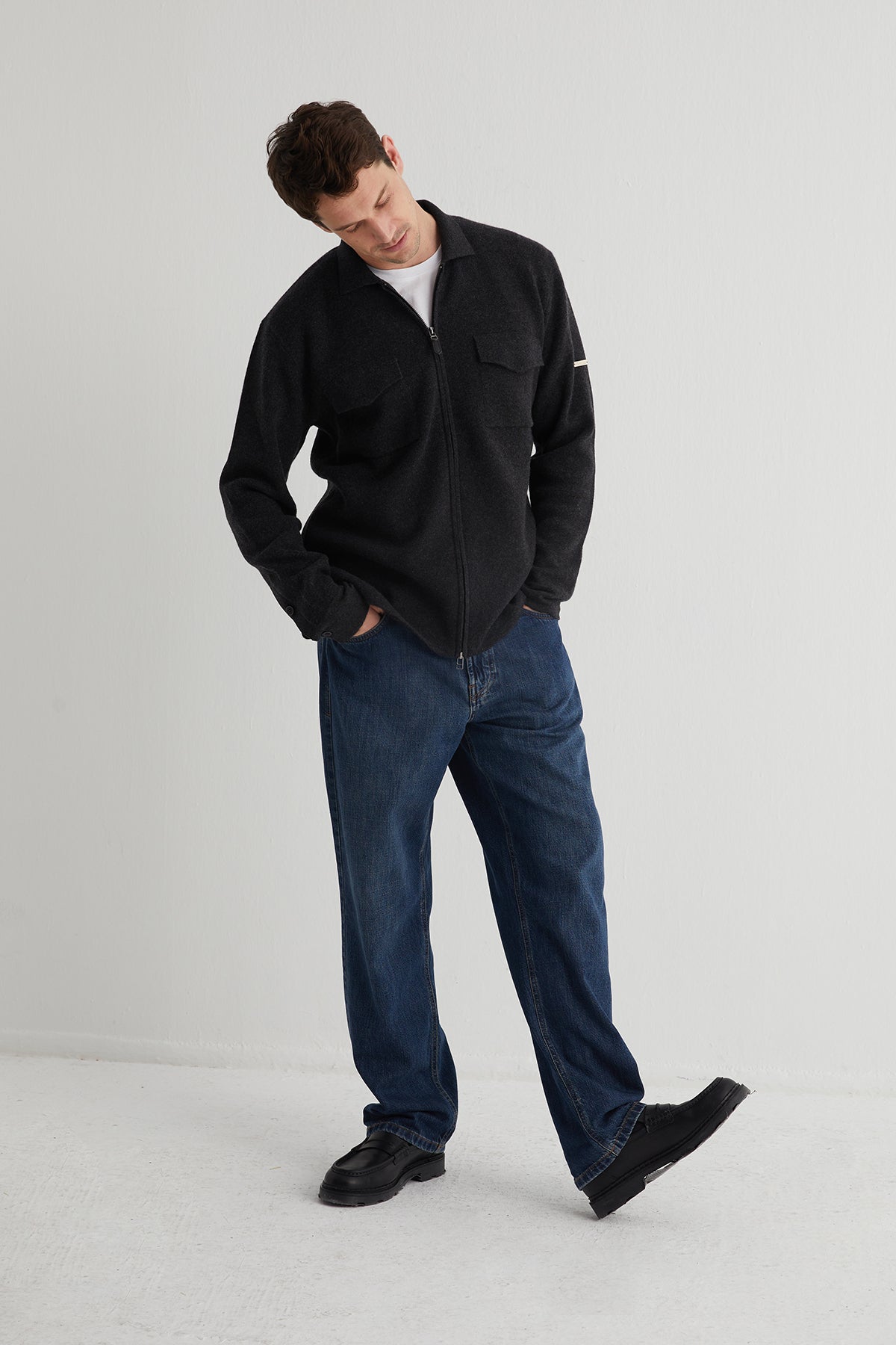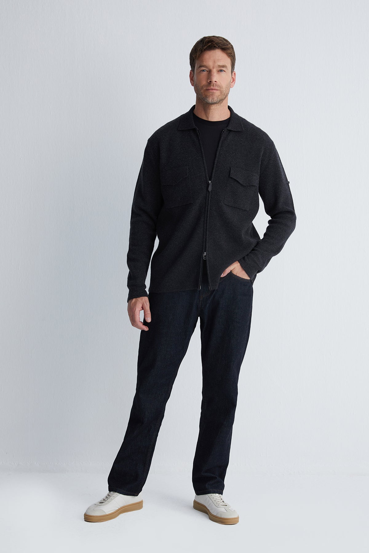 Göğüs cepleri ve düğmeli manşetlerle zamansız bir tasarım sunar.