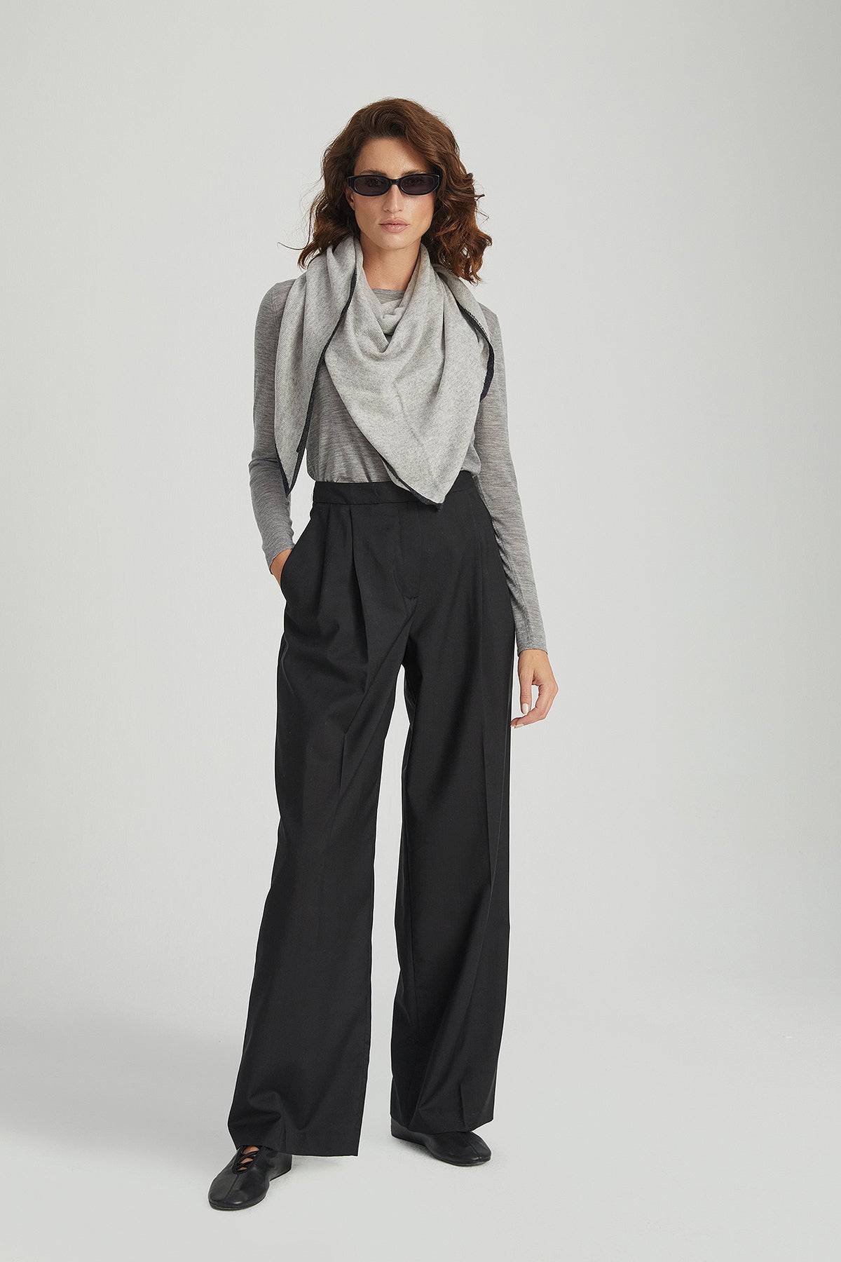 - Kontrast Siyah Kenar Detayları: Şala modern bir görünüm kazandırarak sade ve zarif bir dokunuş sağlar.