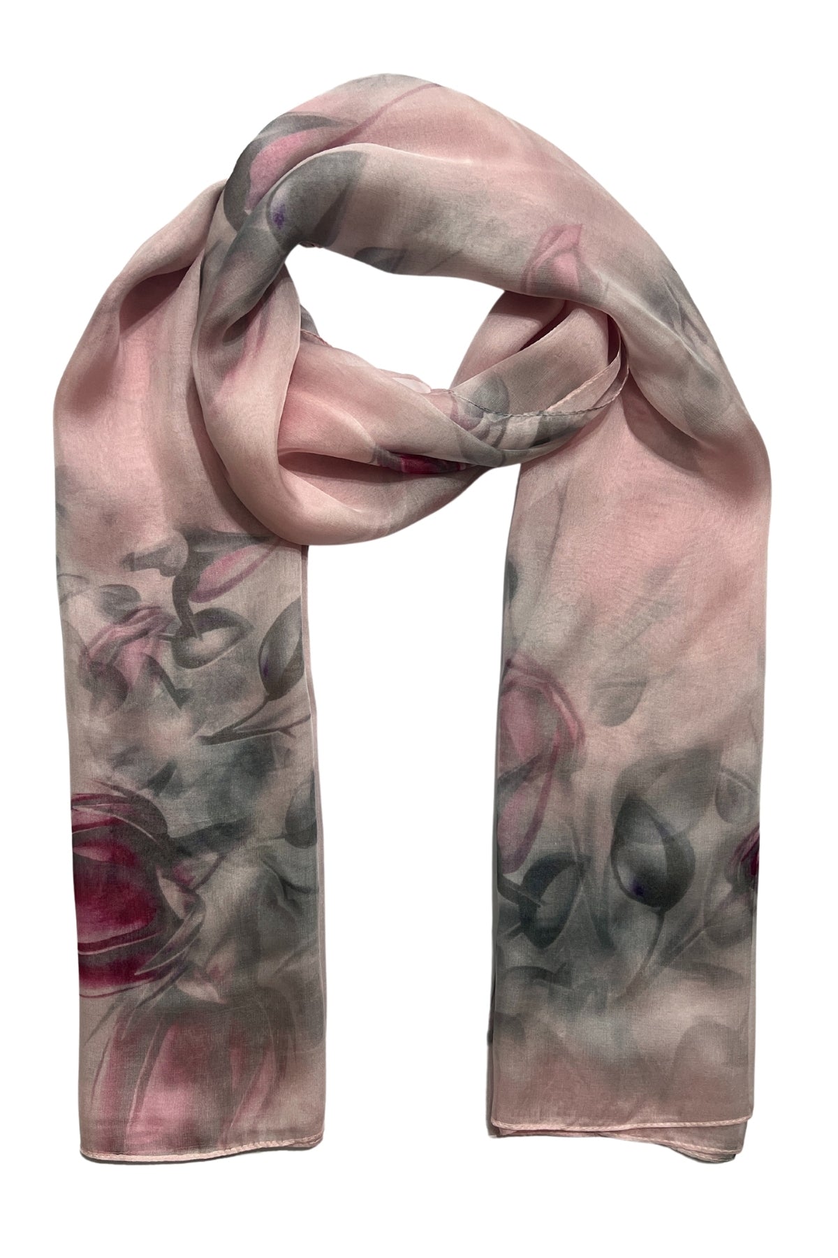 Gül Kurusu Anabel Saf İpek Şifon Baskılı Oblong Şal 180x110