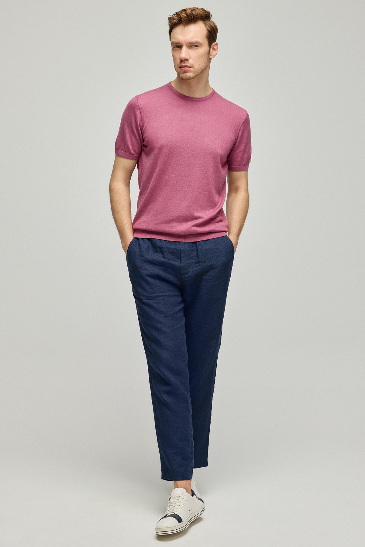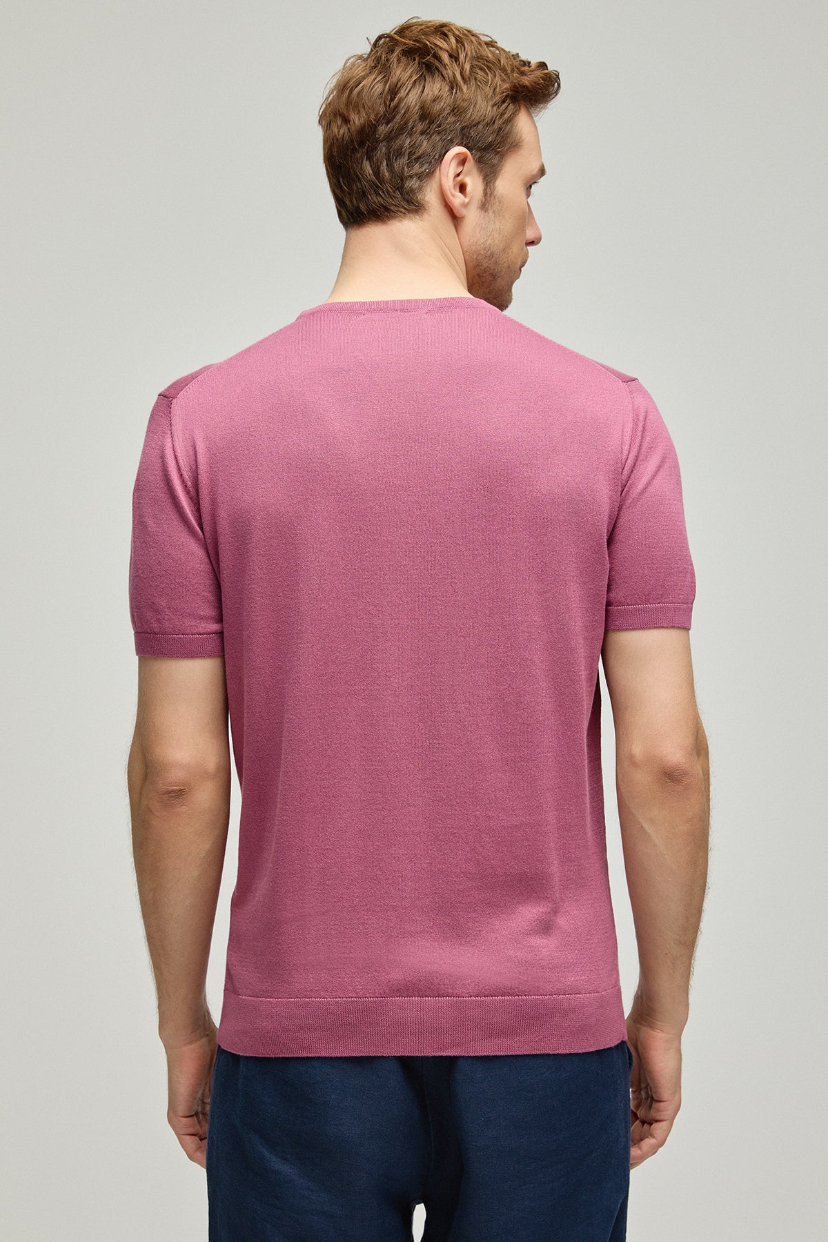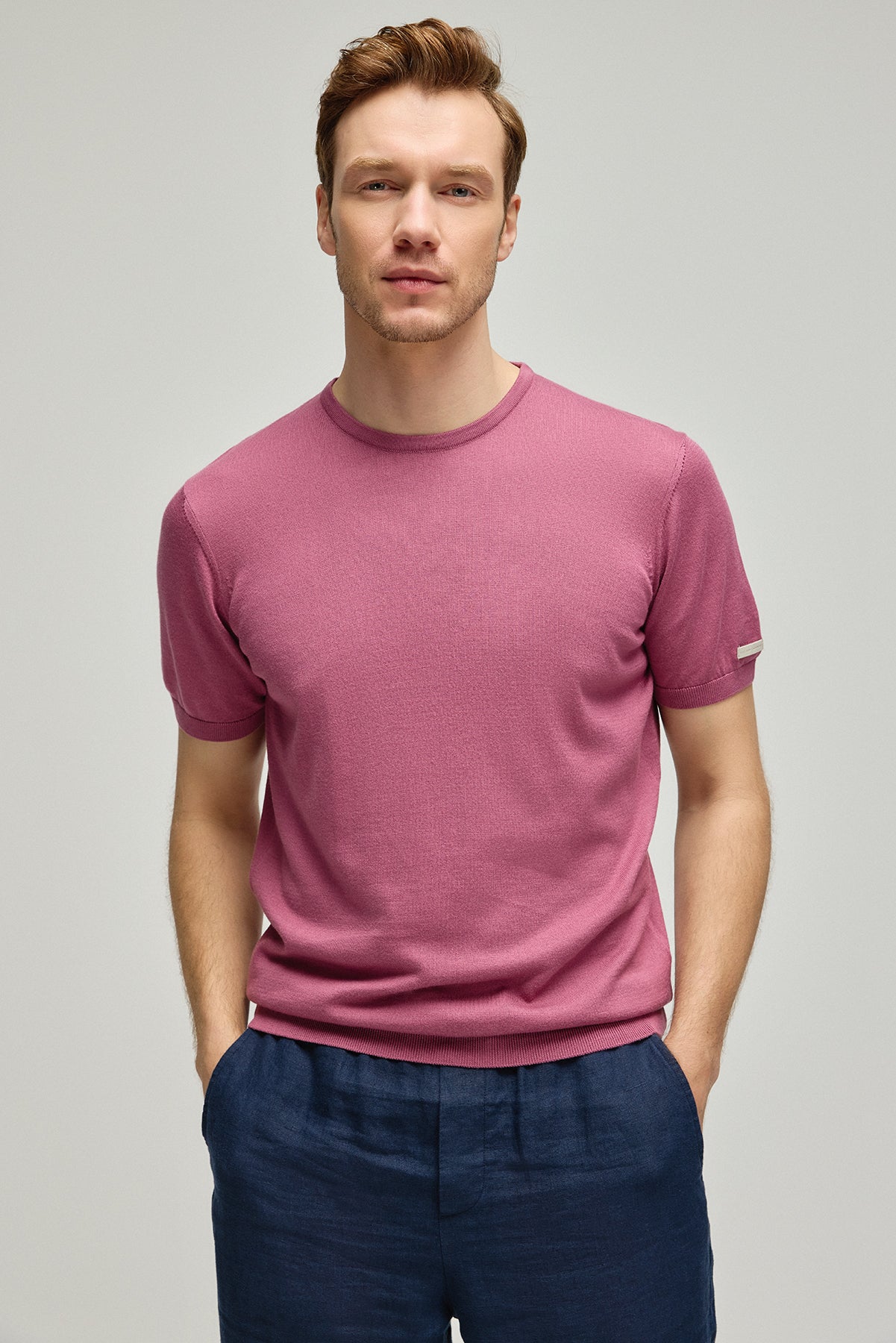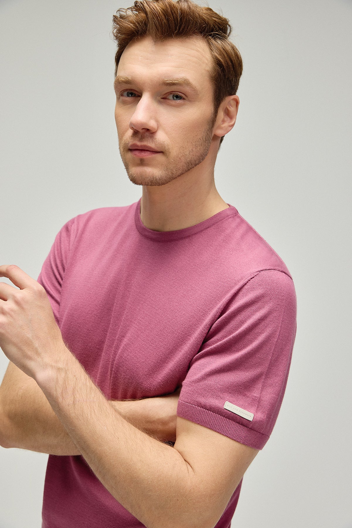 Gül Kurusu İpek Pamuk Quentin Yuvarlak Yaka Kısa Kollu Triko Tişört