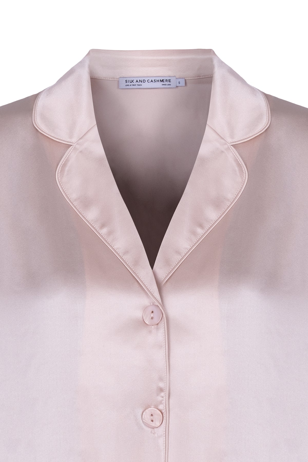 Gül Kurusu Lindy İpek Pijama Seti, ipeğin zarif dokunuşunu ve doğallığını gecelerinize taşırken, elastan desteğiyle size özgürce hareket etme imkanı sunar. Silk and Cashmere’in özenli işçiliğiyle hayat bulan bu tasarım, dinlenme anlarınıza ayrıcalık katmak için tasarlandı.