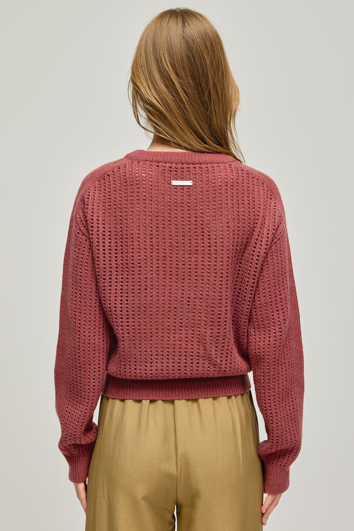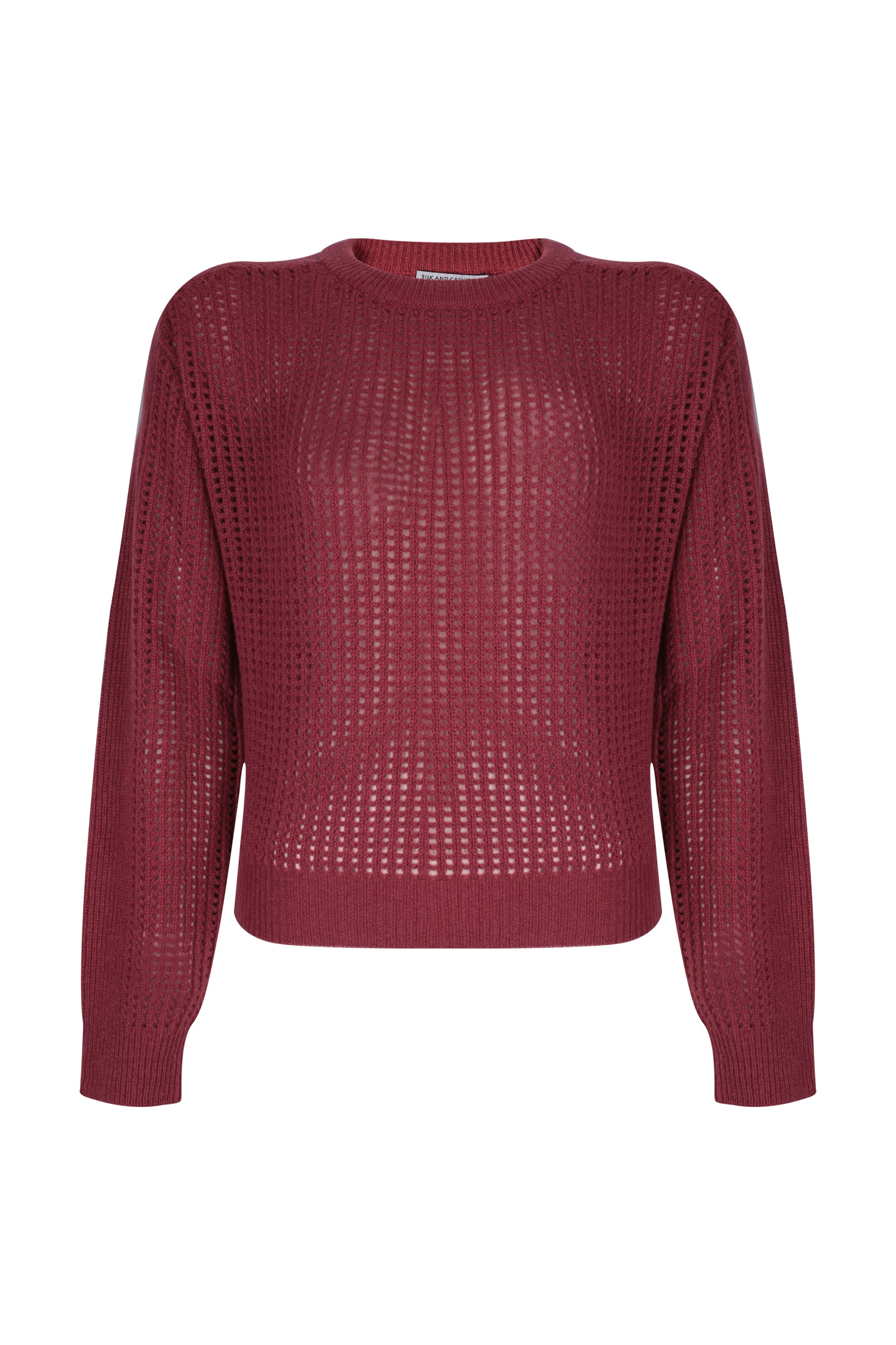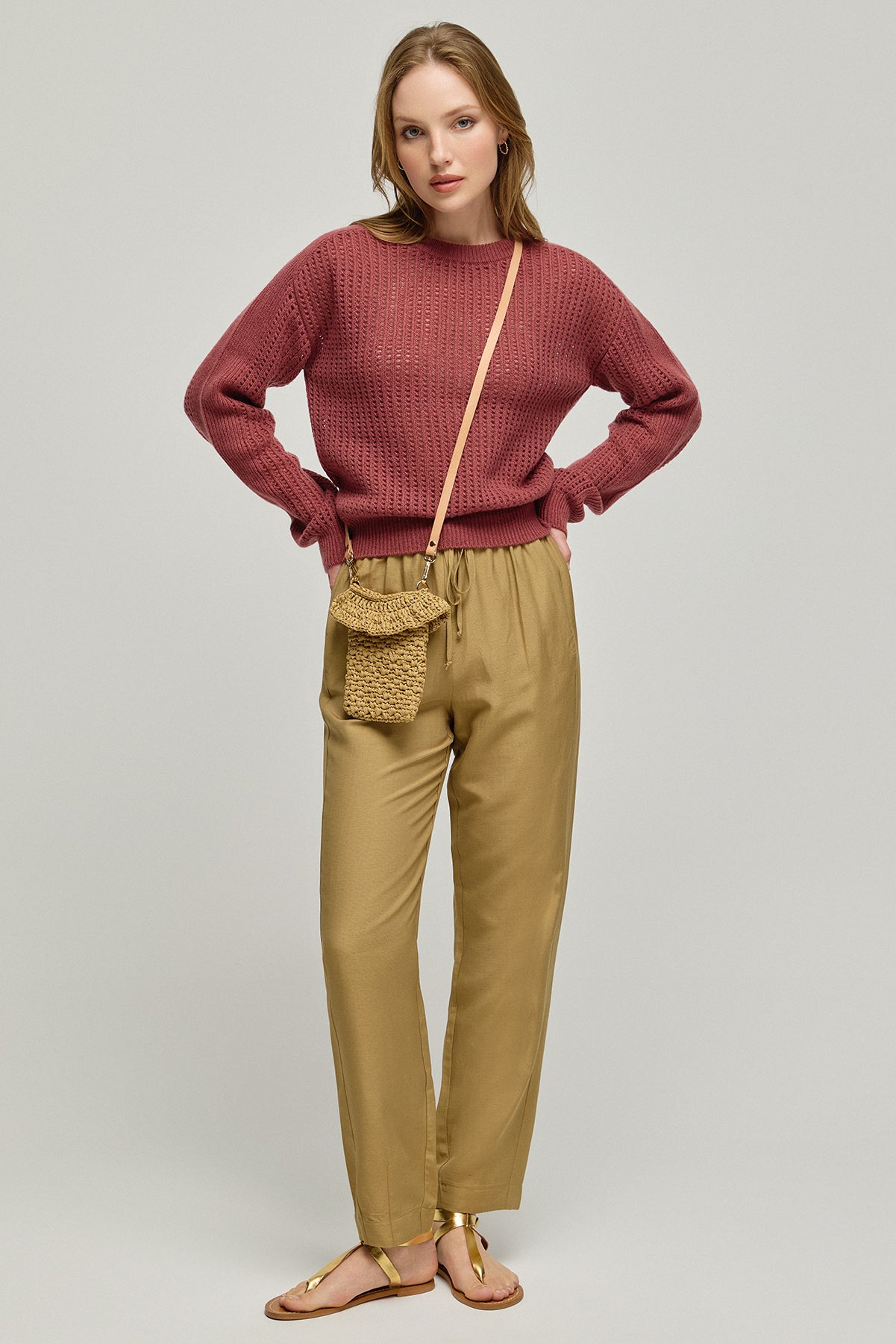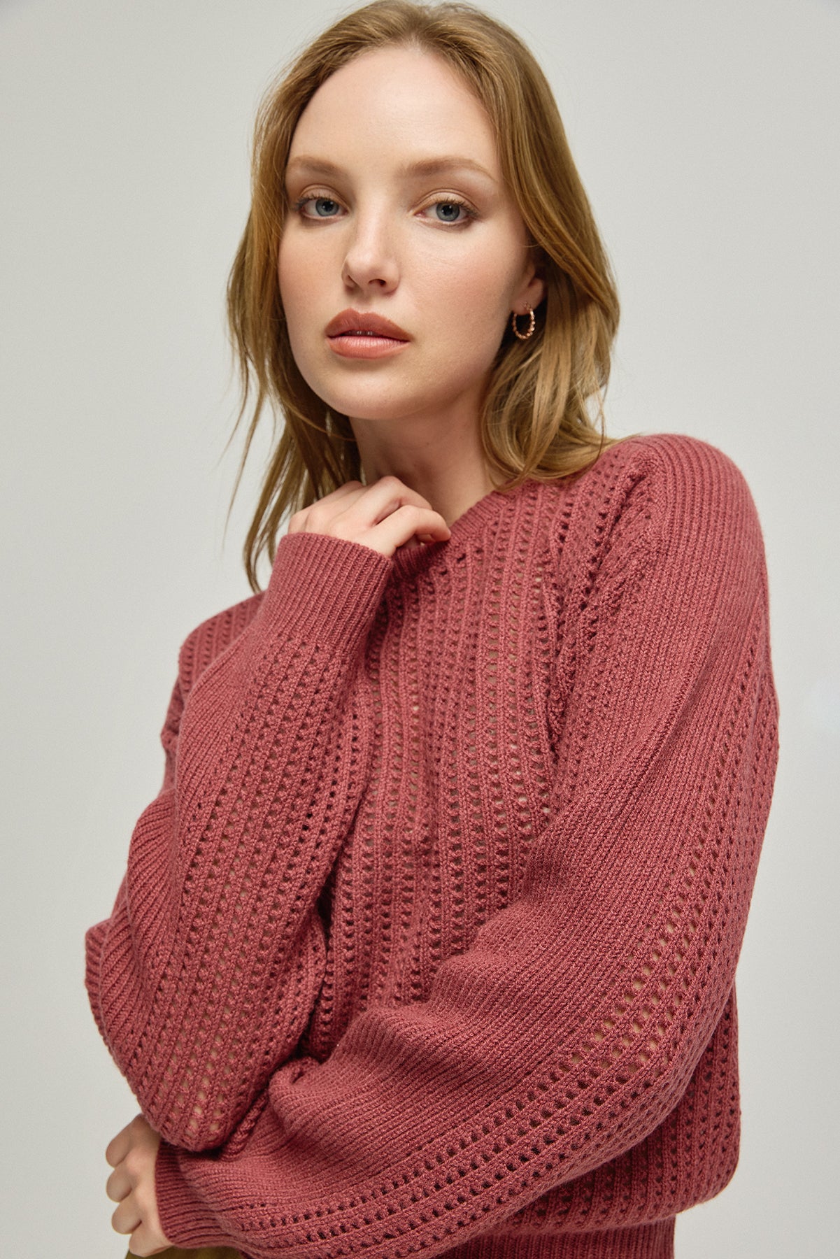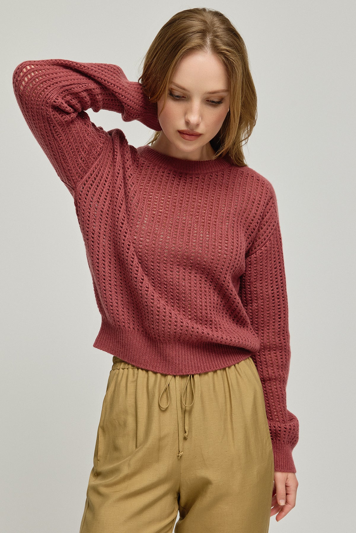 Gül Kurusu Pecheuse Saf Kaşmir Delikli Yuvarlk Yaka Kadın Kazak