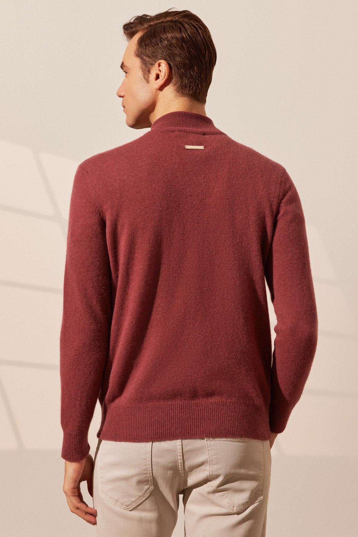 Gül Kurusu Saf Kaşmir Fermuarlı Yarım Balıkçı Yaka Uzun Kollu Erkek Kazak