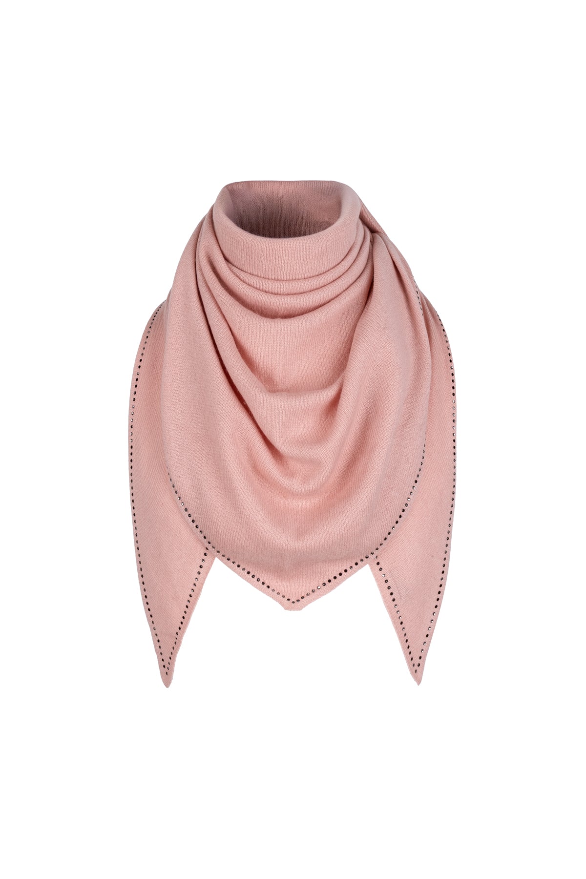 Gül Kurusu Saf Kaşmir Taşlı Üçgen Şal 105x105x165 cm