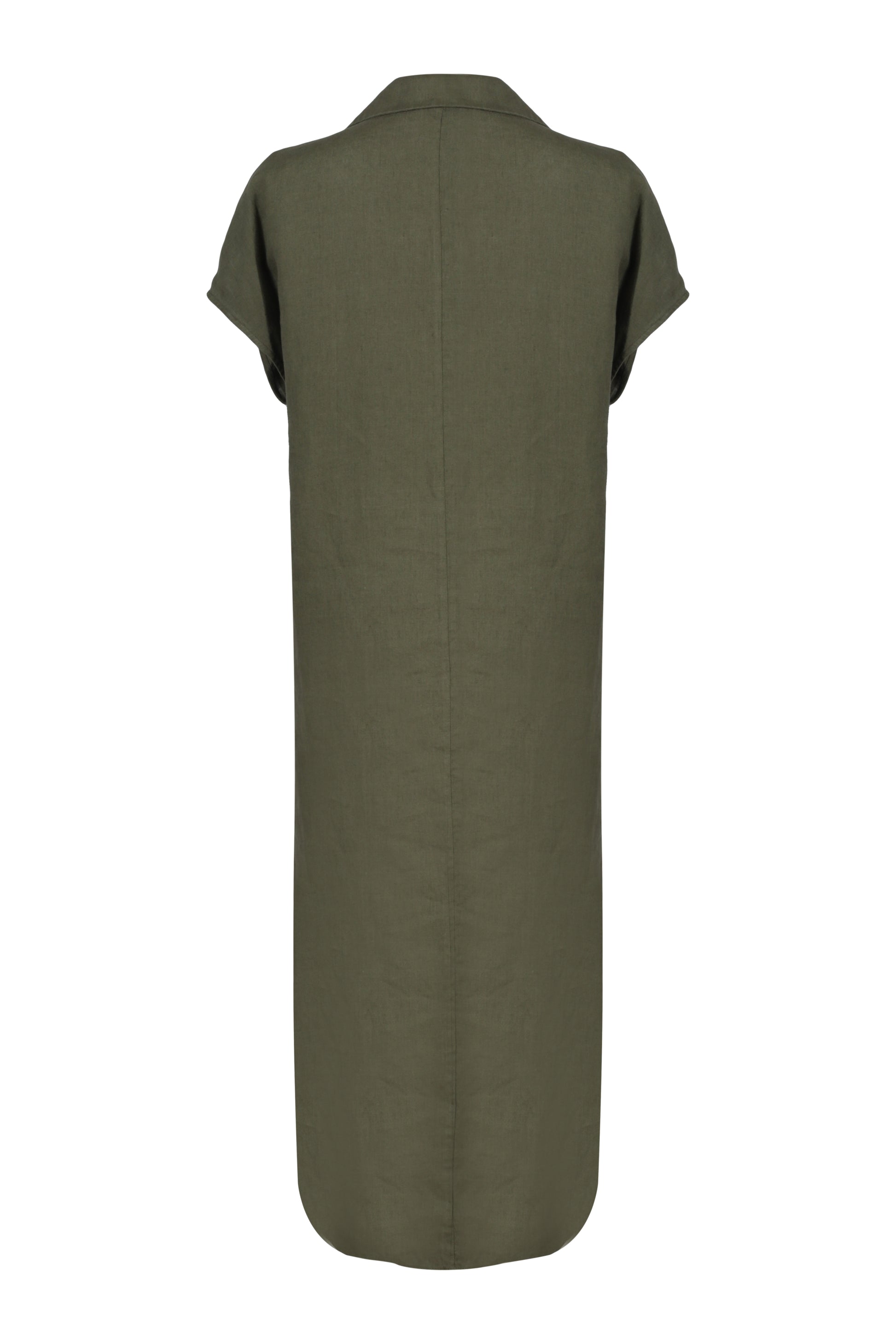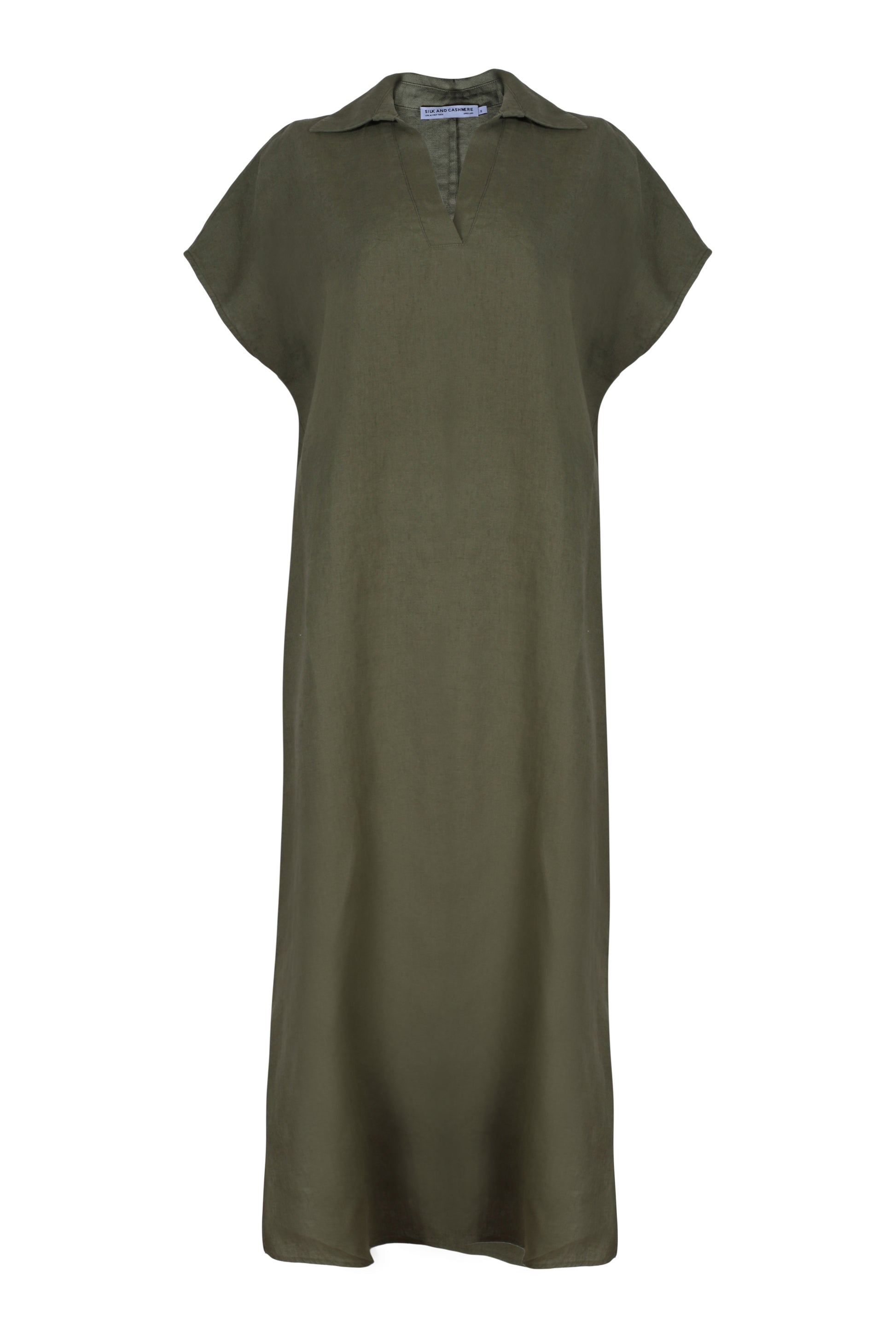 Haki Kate Keten Polo Yaka Kısa Kollu Elbise