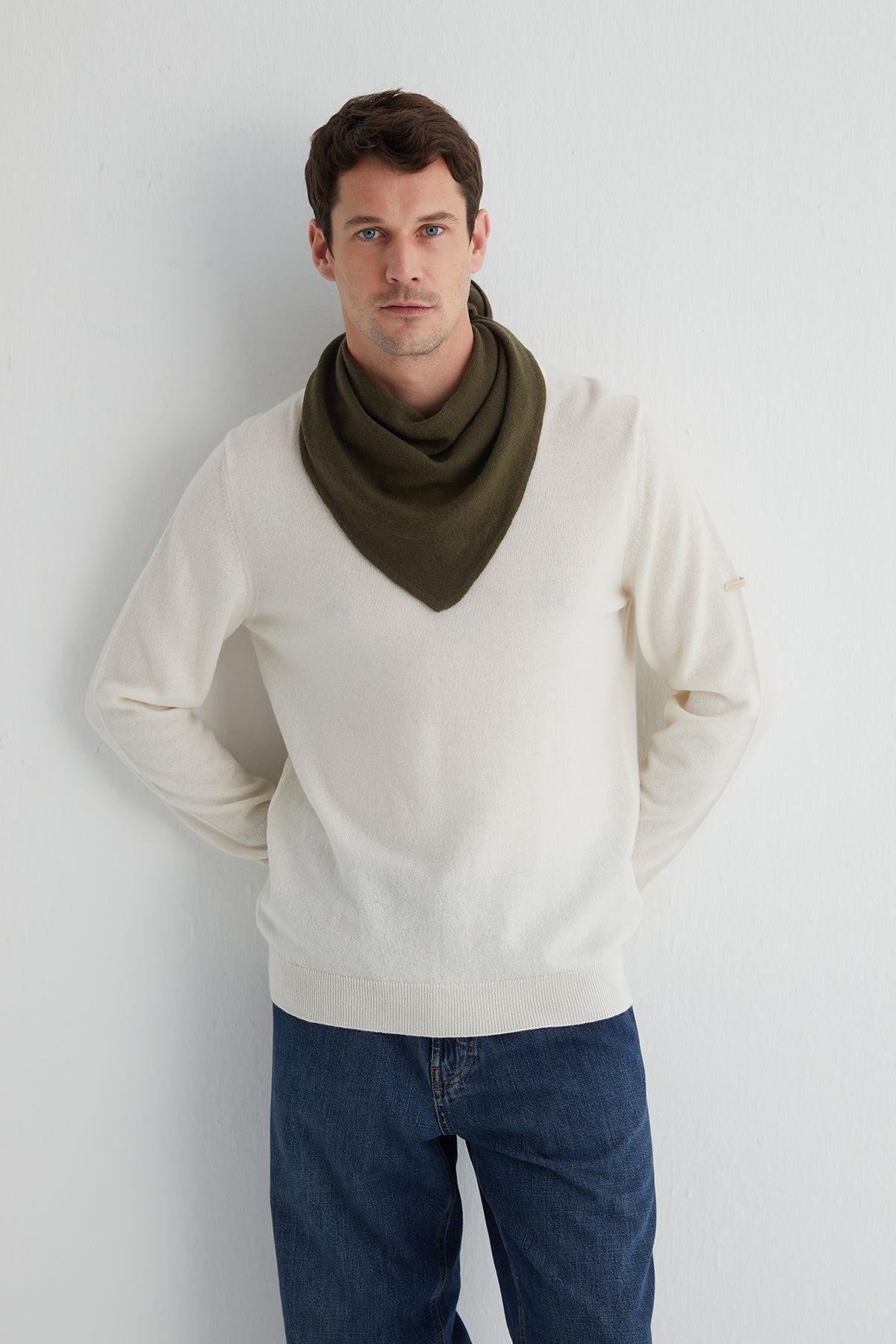 Haki Rose Saf Kaşmir Fular Bandana 115x45x45 cm