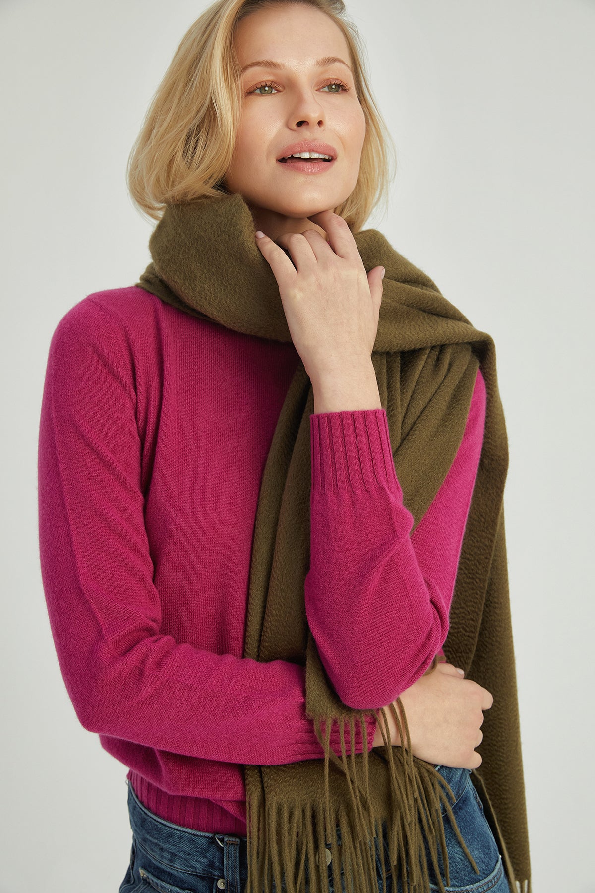 Haki tonlarındaki Rose saf kaşmir şal, doğal ve yumuşak dokusuyla gün boyu rahatlık sunar. %100 kaşmirden üretilmiş bu şal, cildinize hafif bir sıcaklık verirken, zarif püskül detaylarıyla da hareketli bir görünüm sağlar. Geniş boyutları sayesinde farklı stillerde kullanılabilir, hem günlük kombinlerinize uyum sağlar hem de özel günlerde şıklık katar.