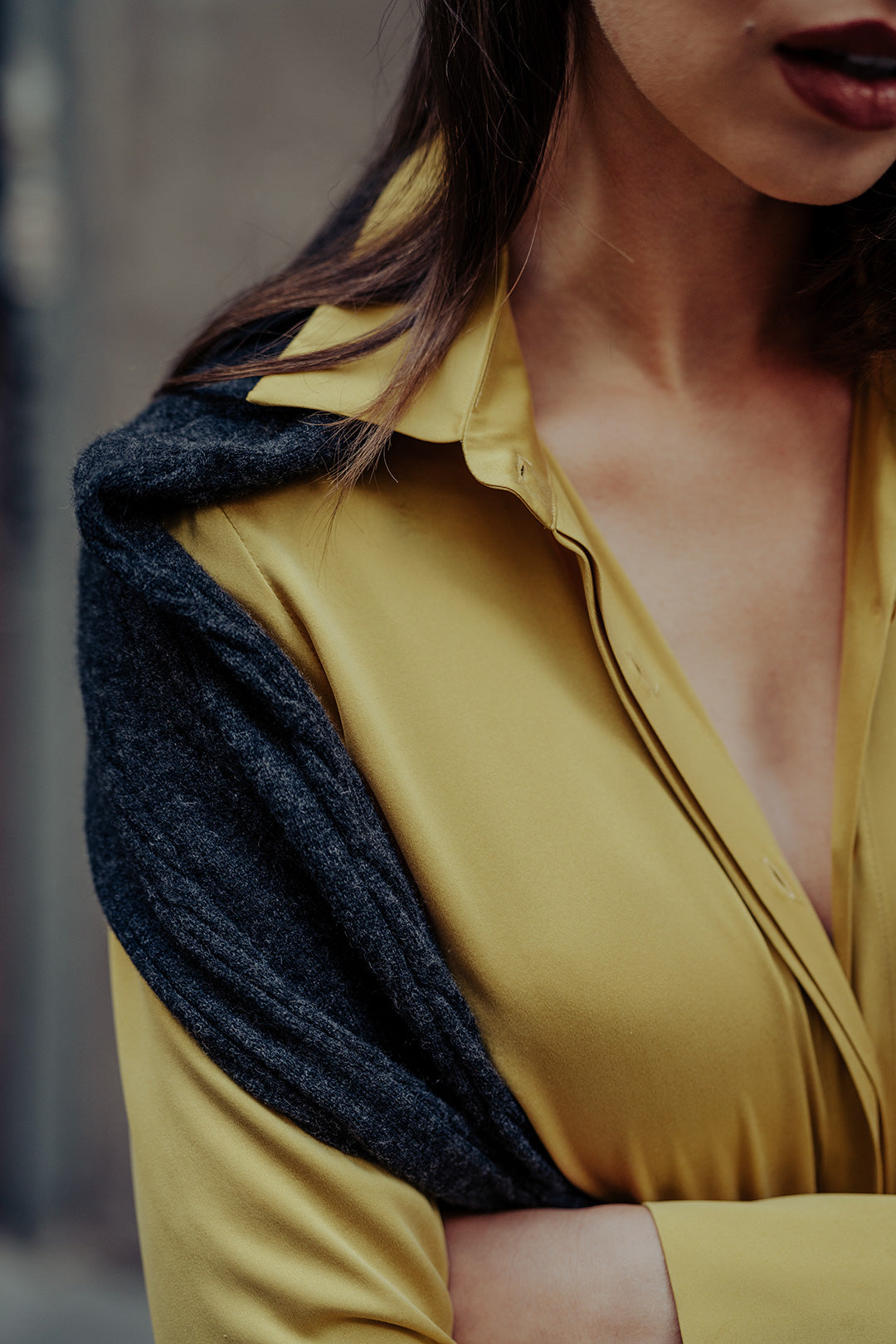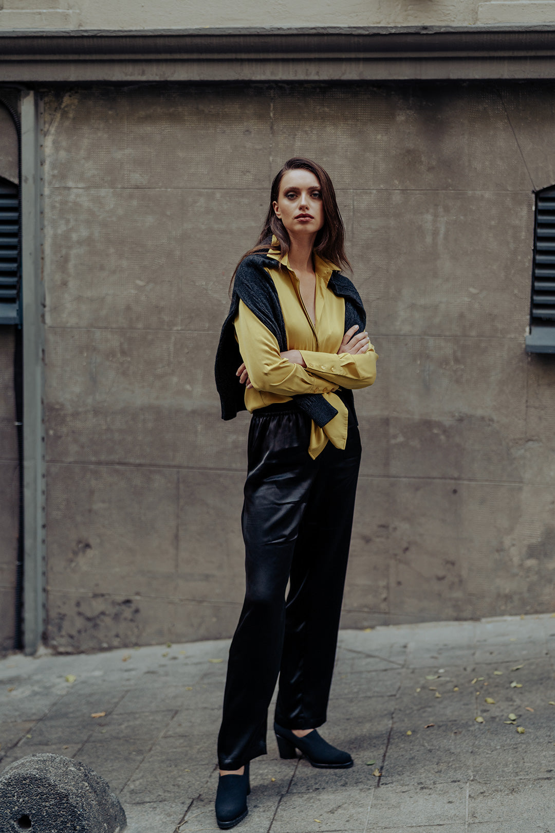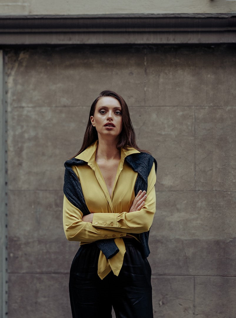 Hardal Saf İpek Audrey Uzun Kollu Gömlek