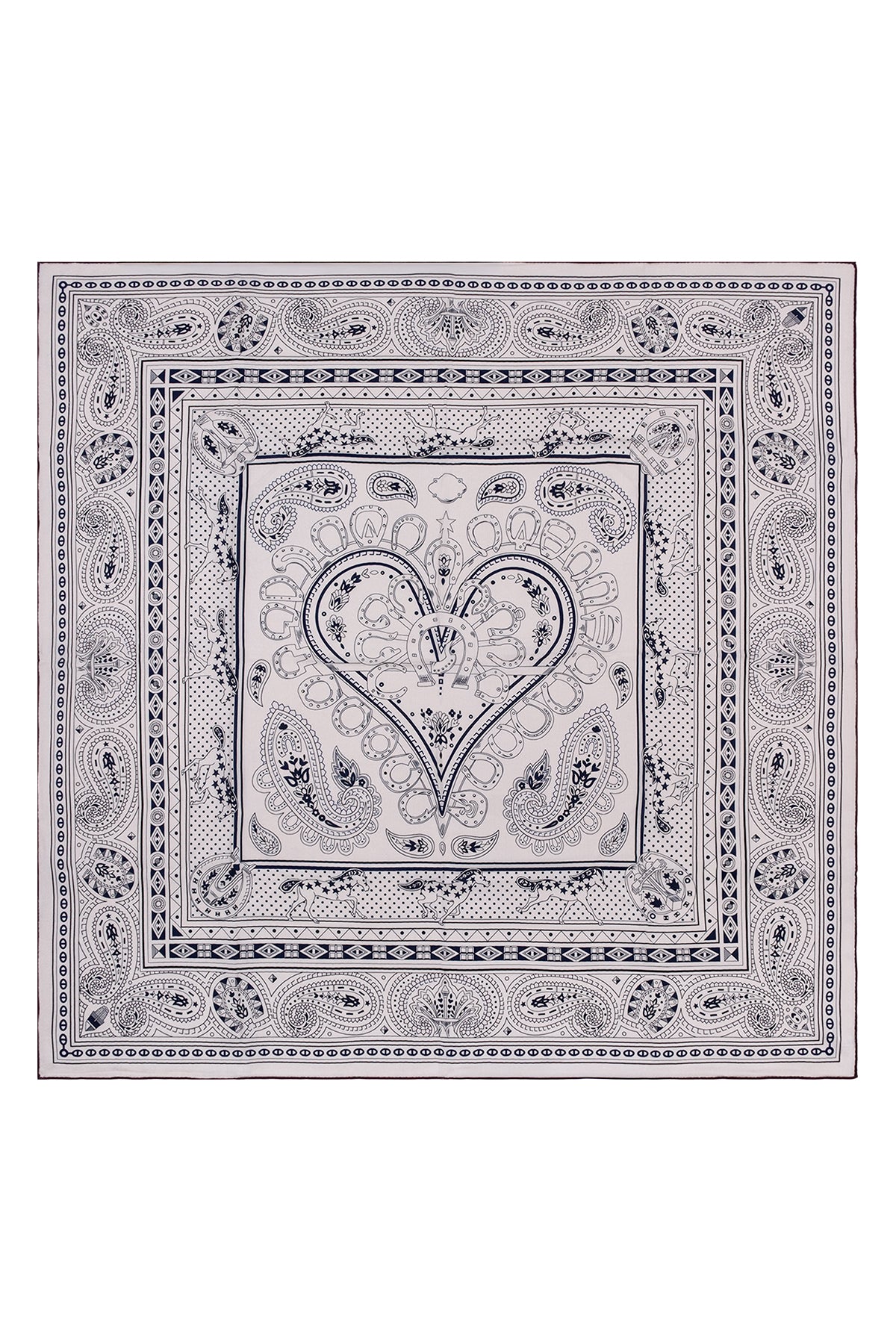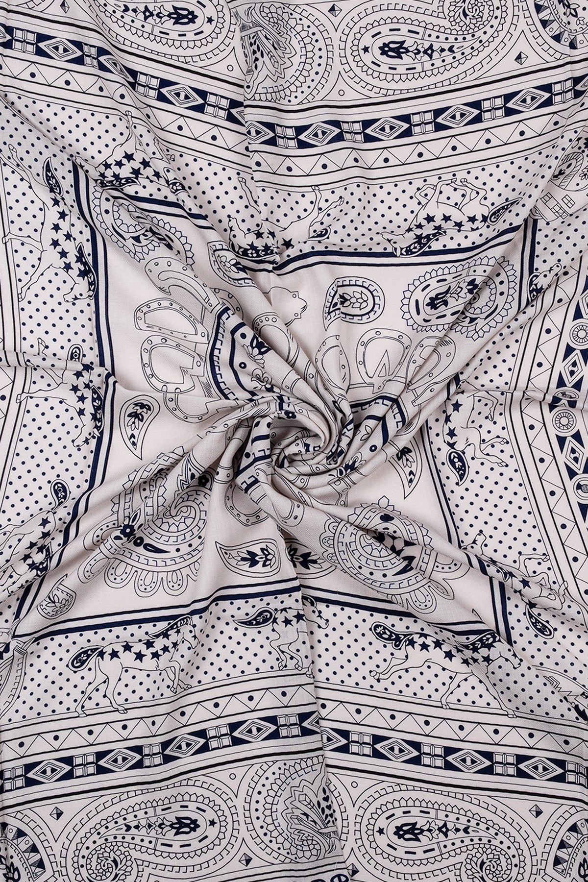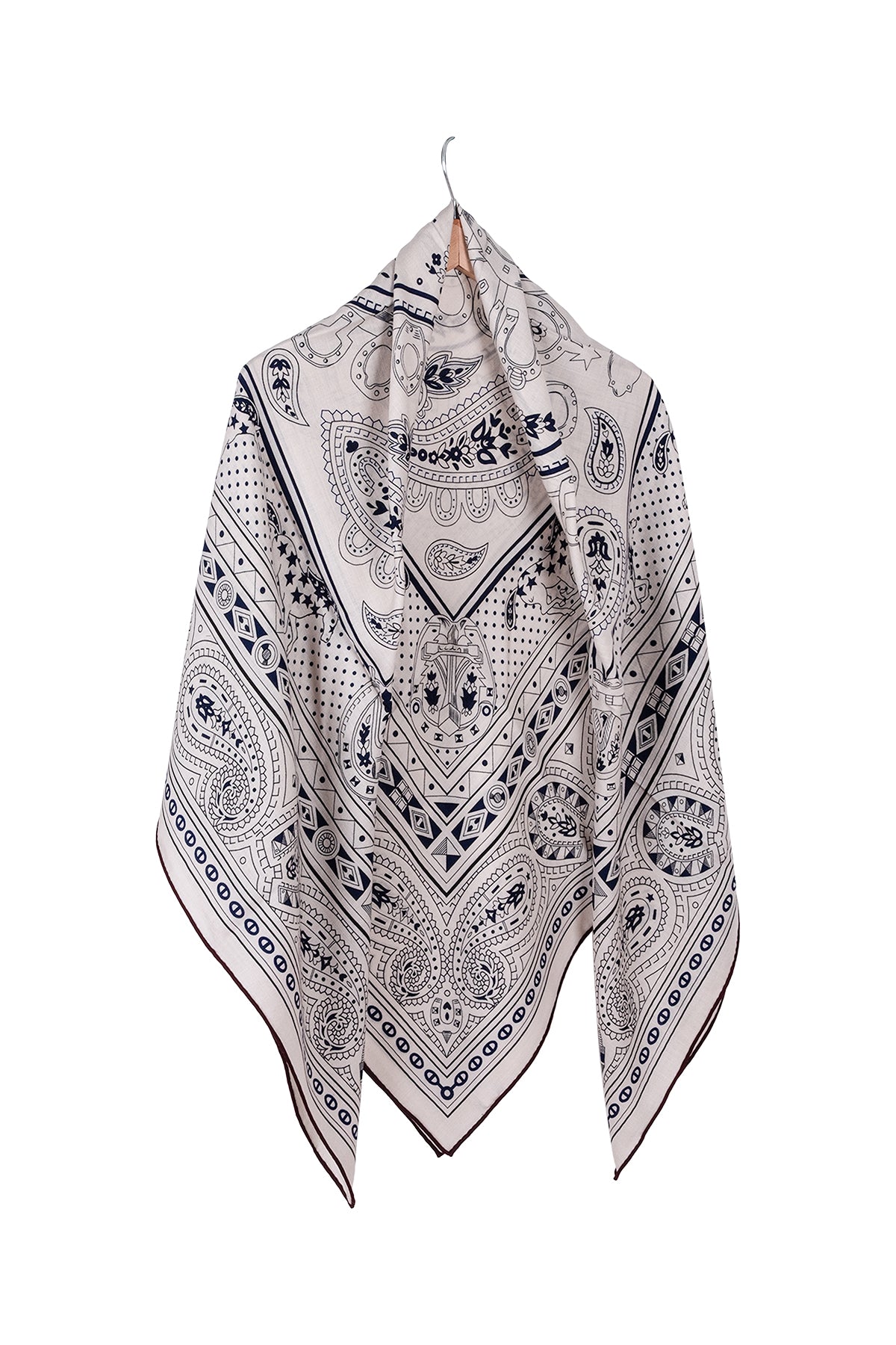 Kahve Lacivert Linda Kaşmir Desenli Kare Eşarp 140x140 cm