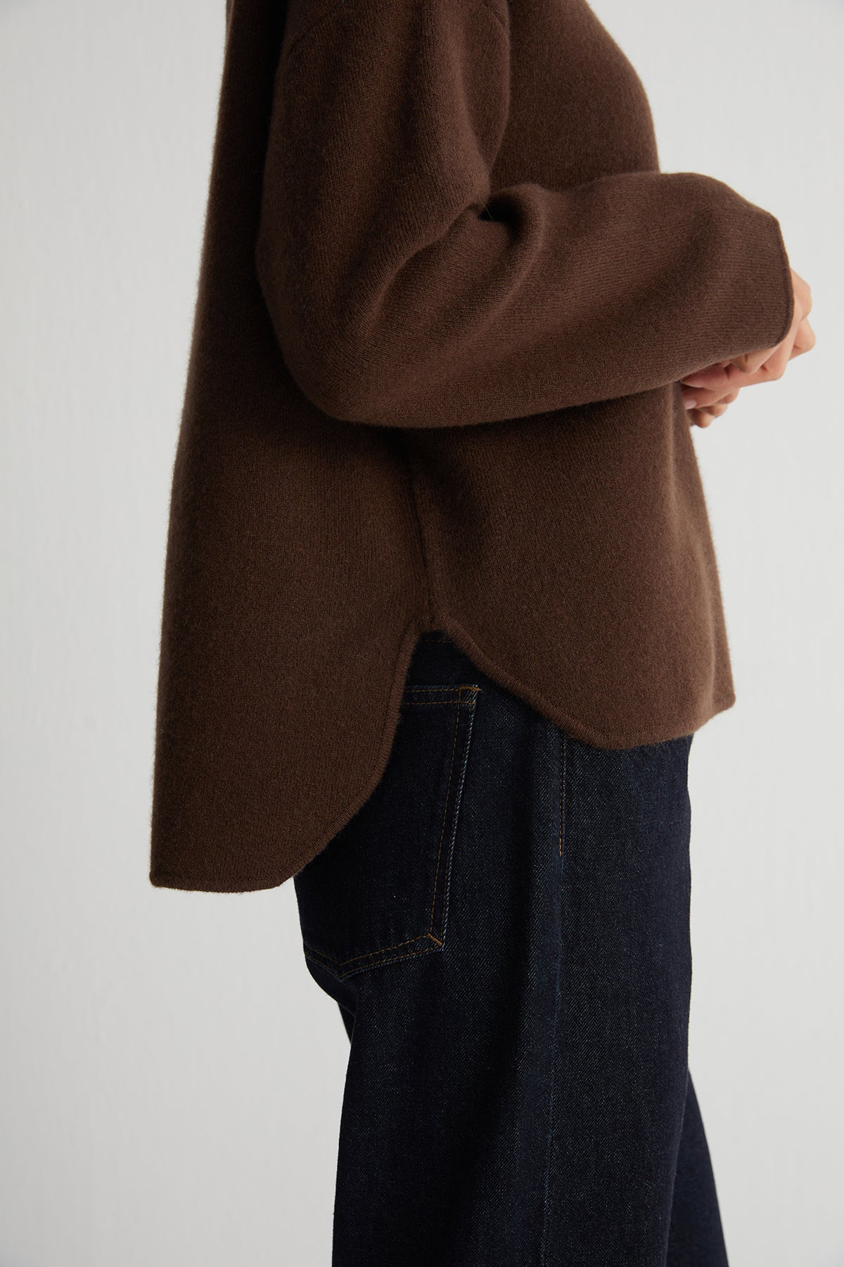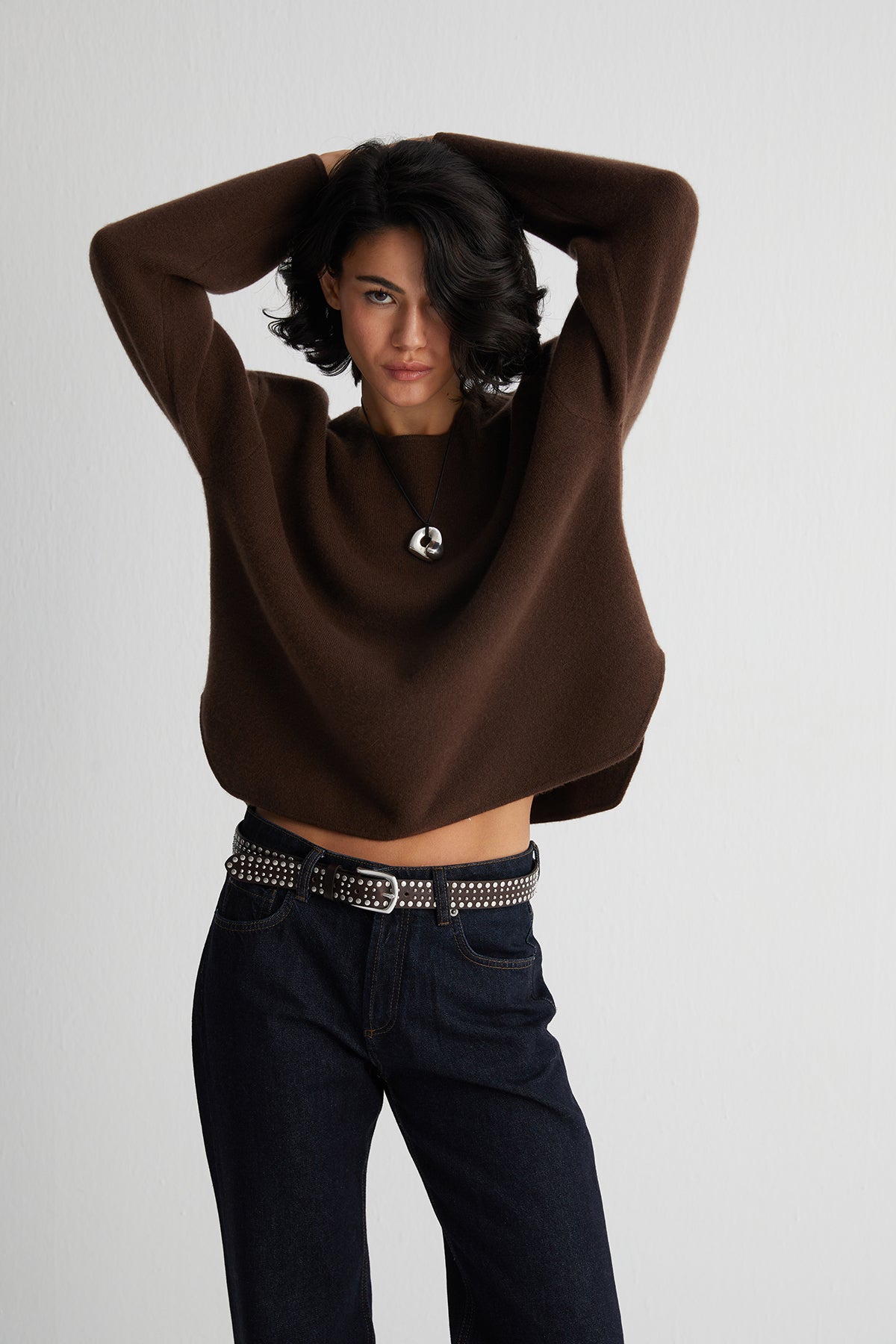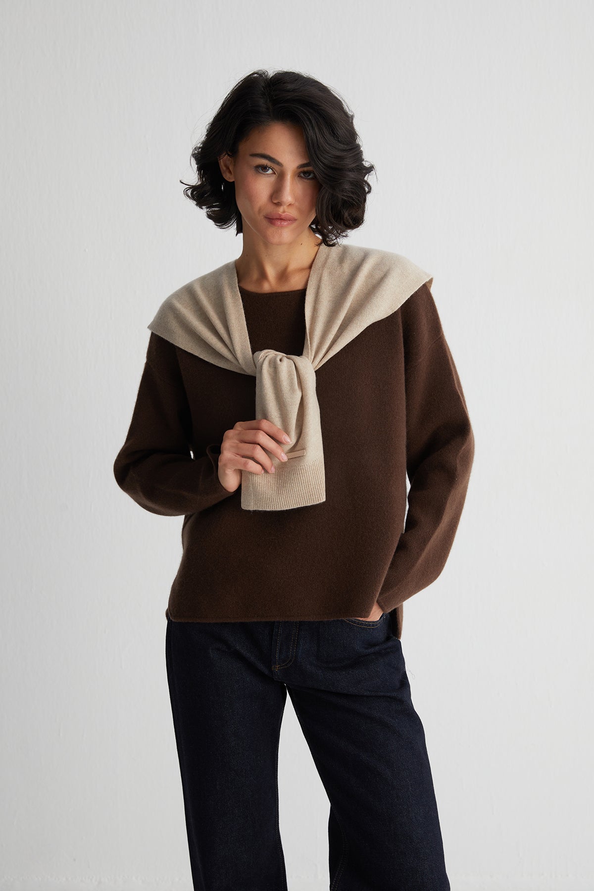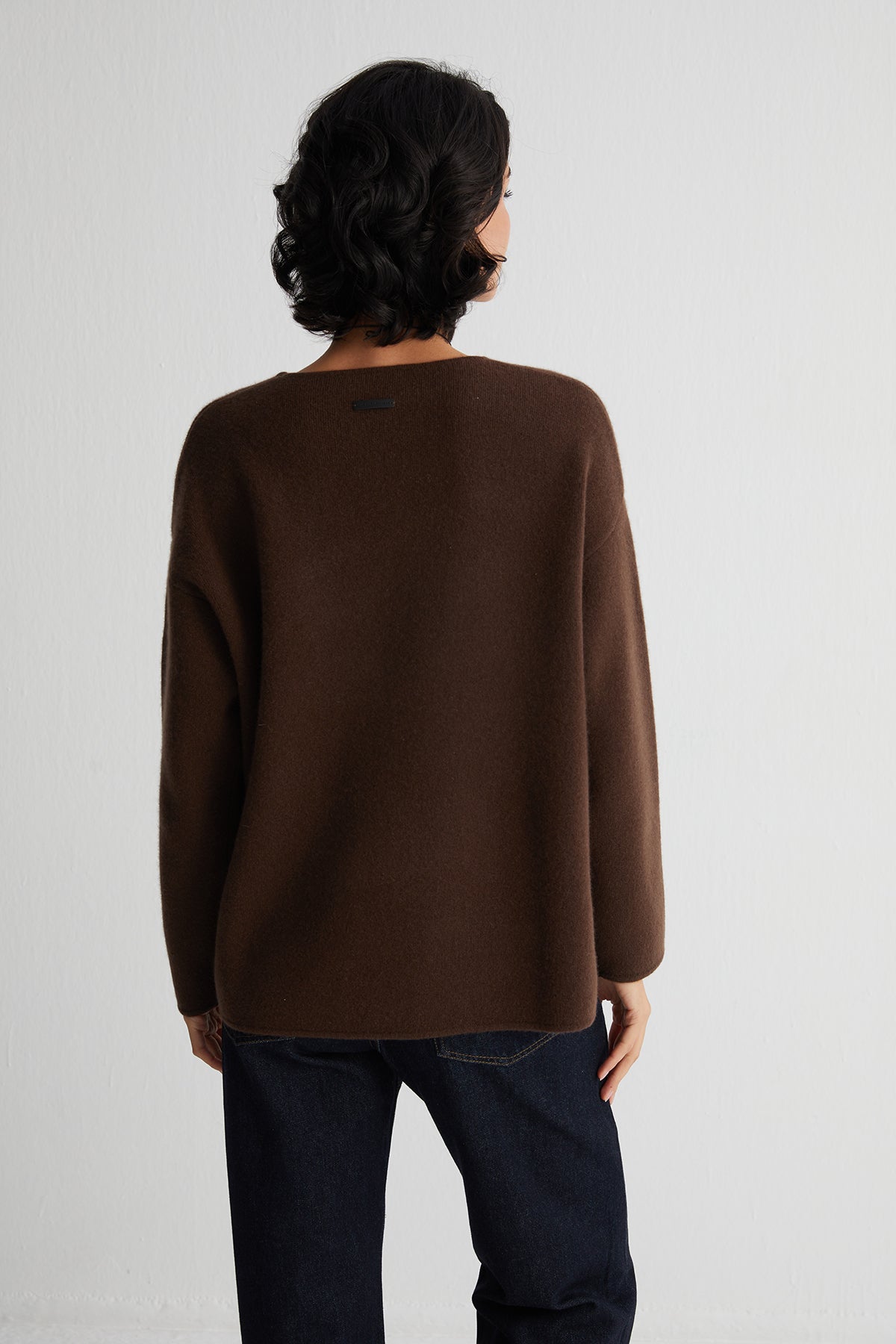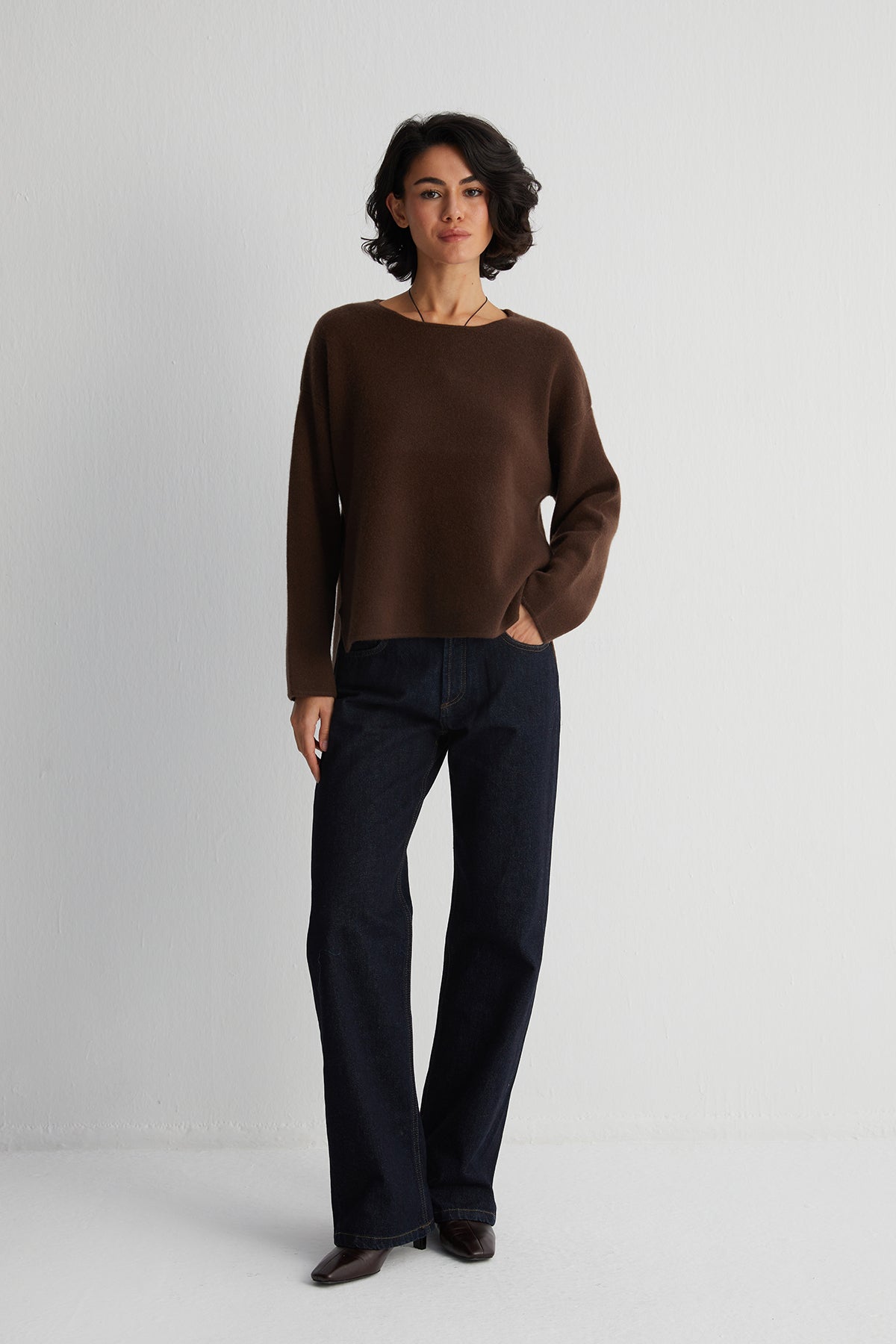 Kahverengi Alexia Saf Kaşmir Çelik Örgü Kazak