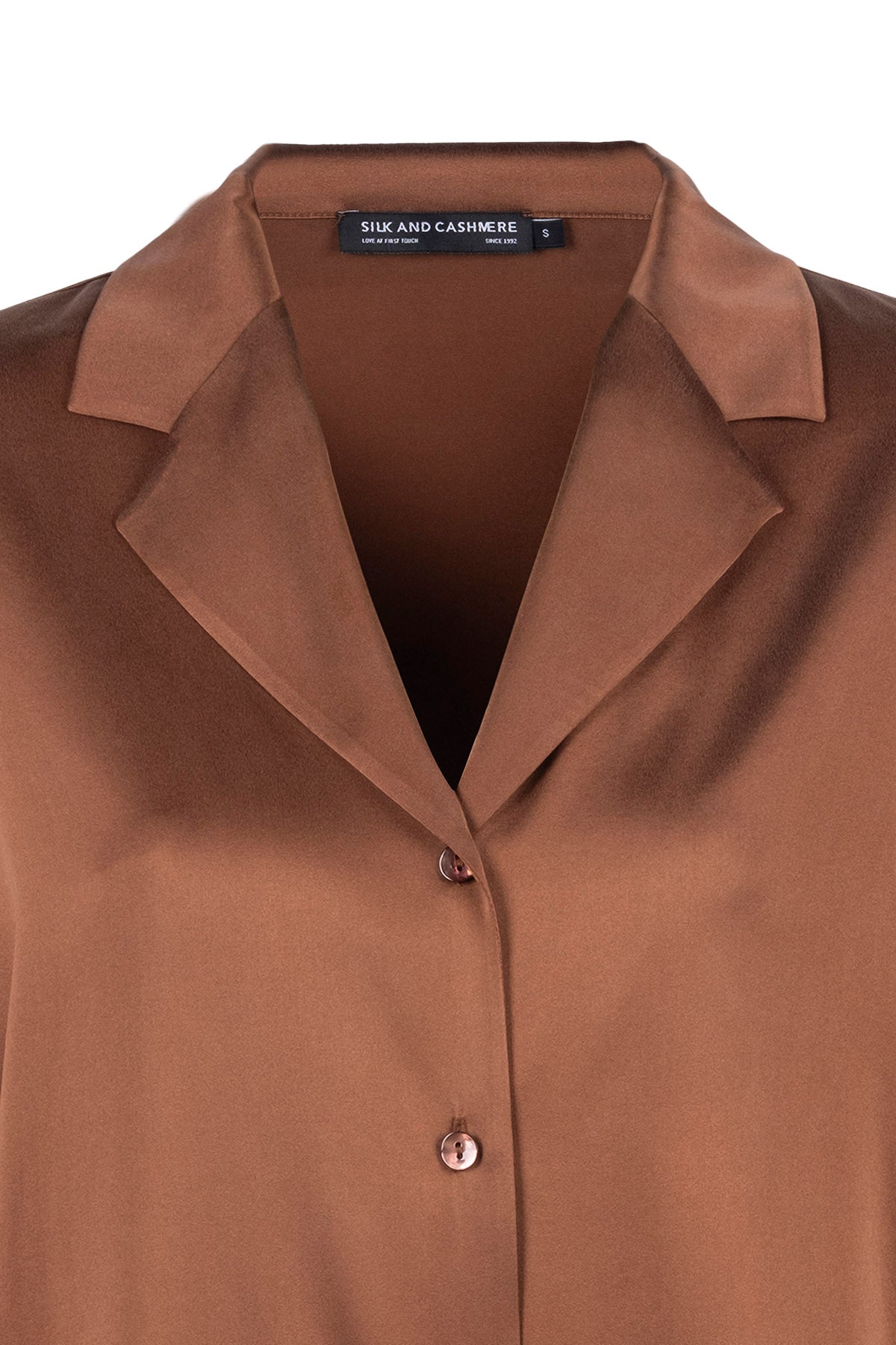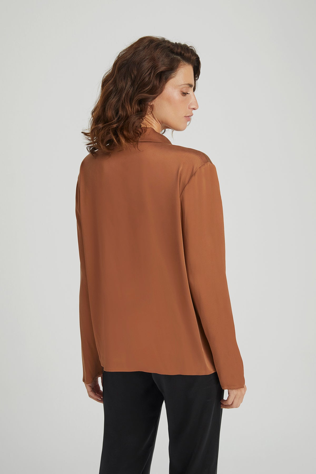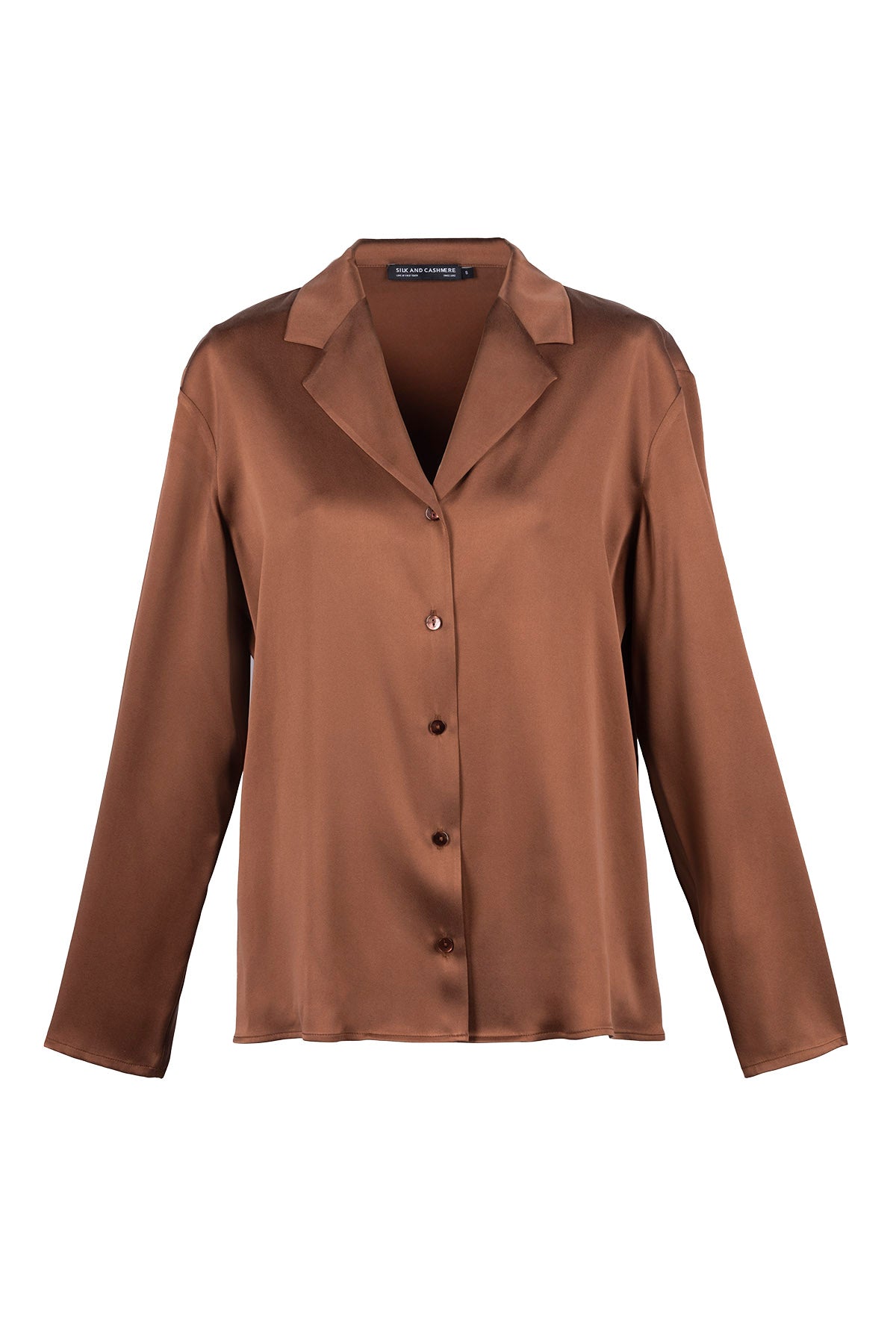 Kahverengi Astrid Sky Saf İpek Gömlek