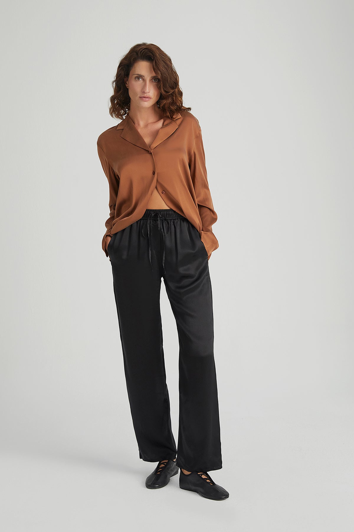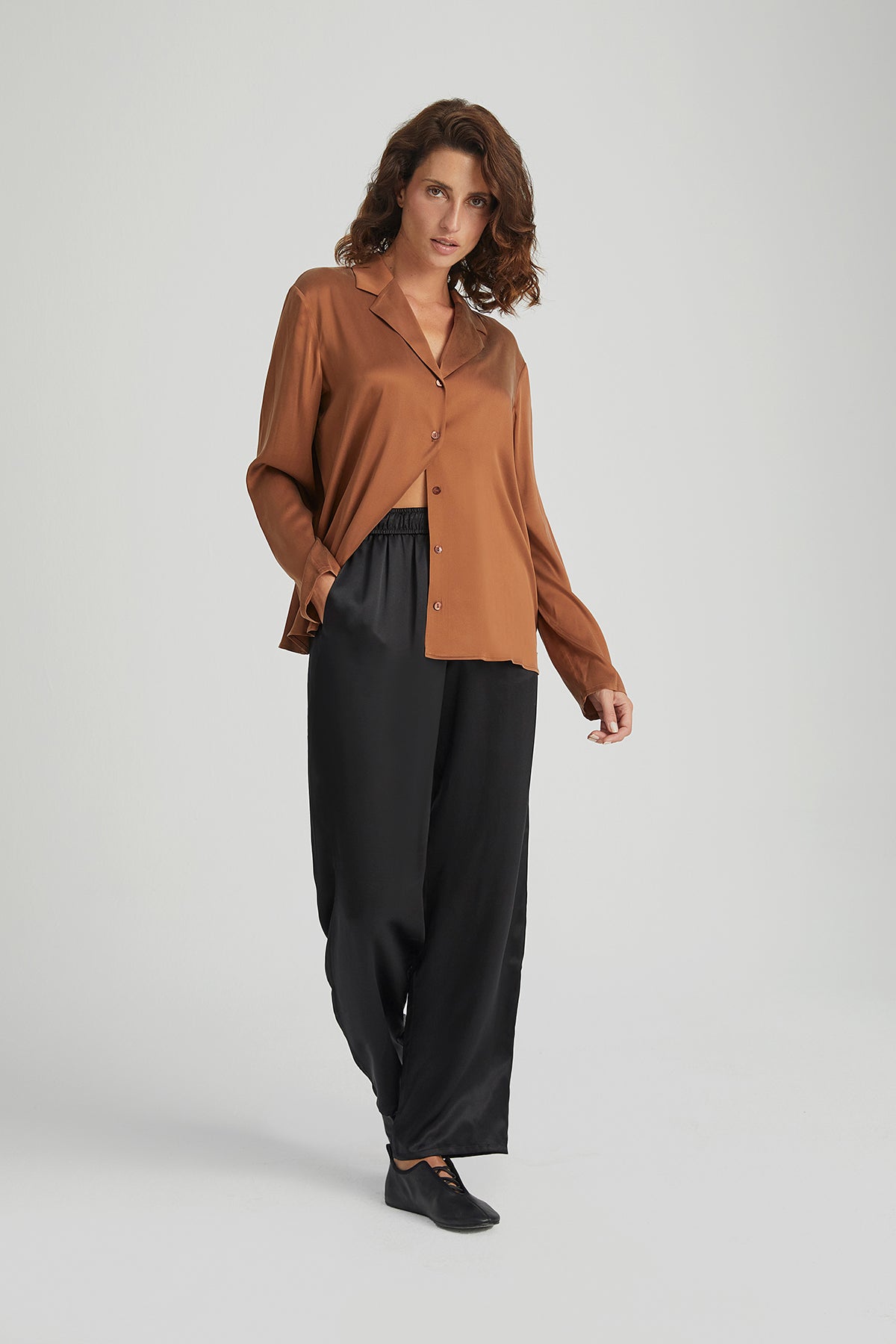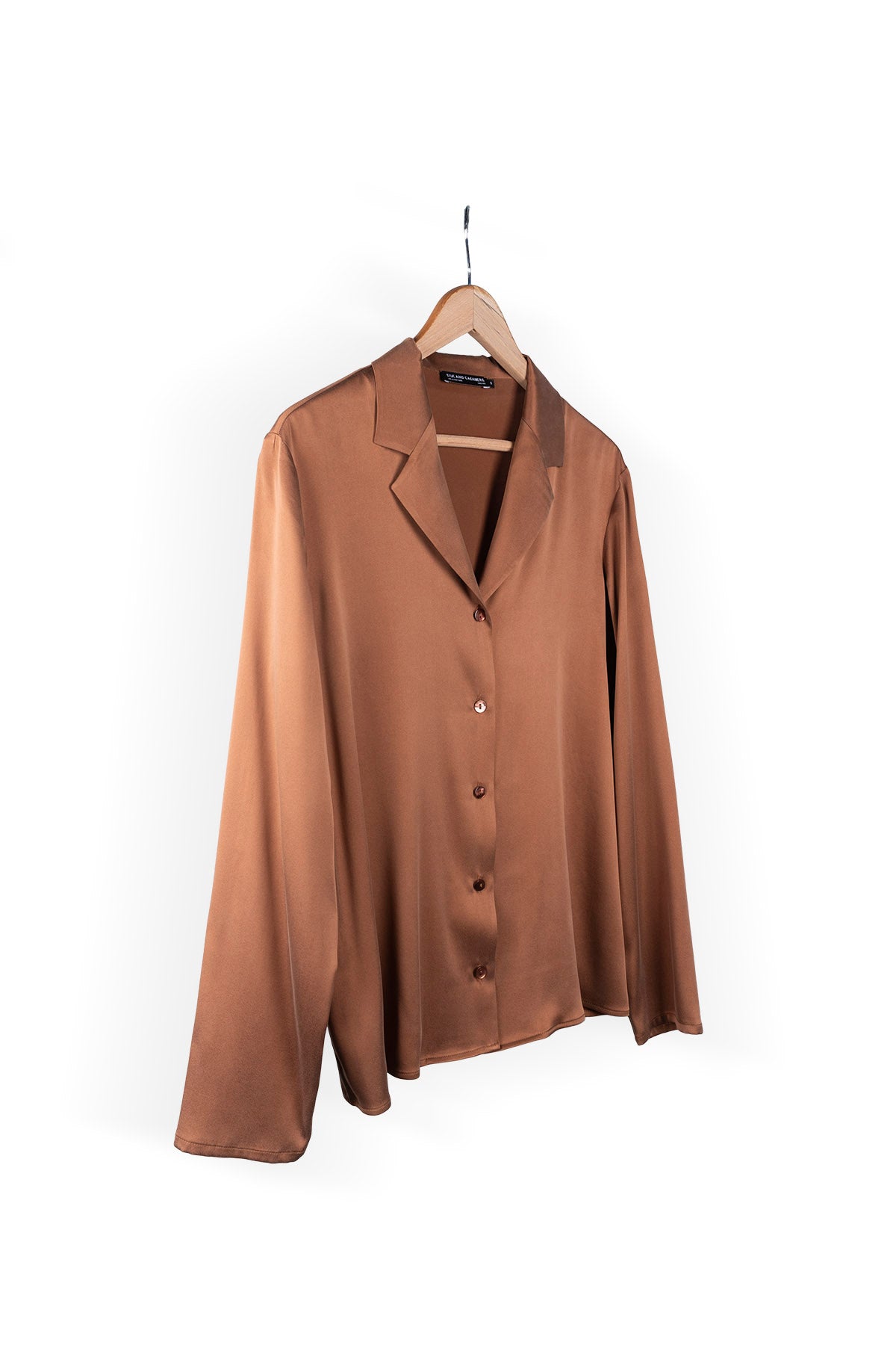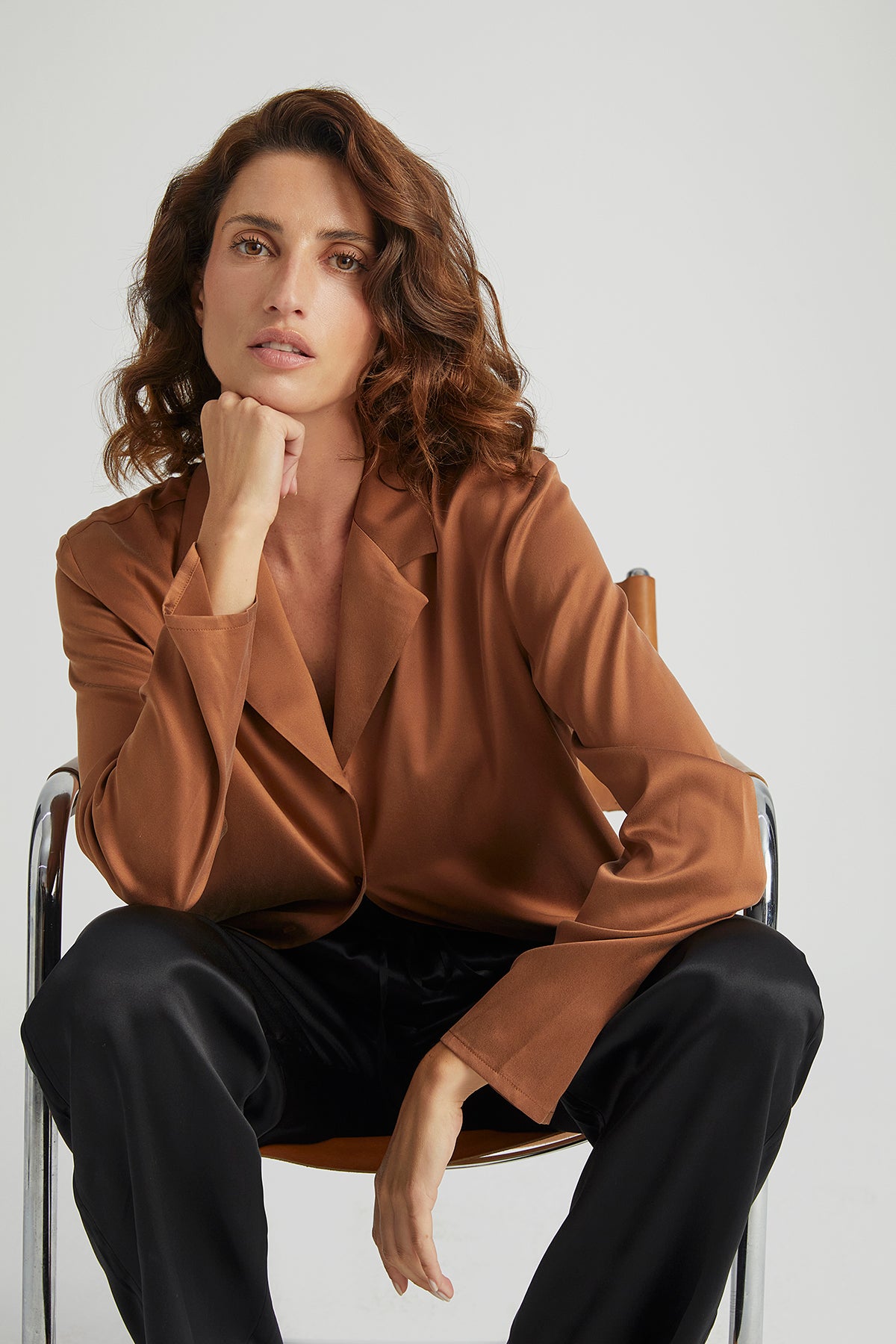 Kahverengi Astrid Sky Saf İpek Gömlek