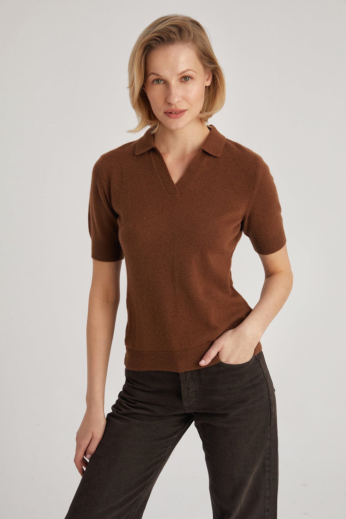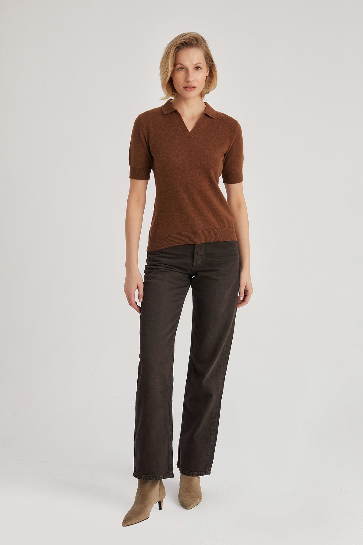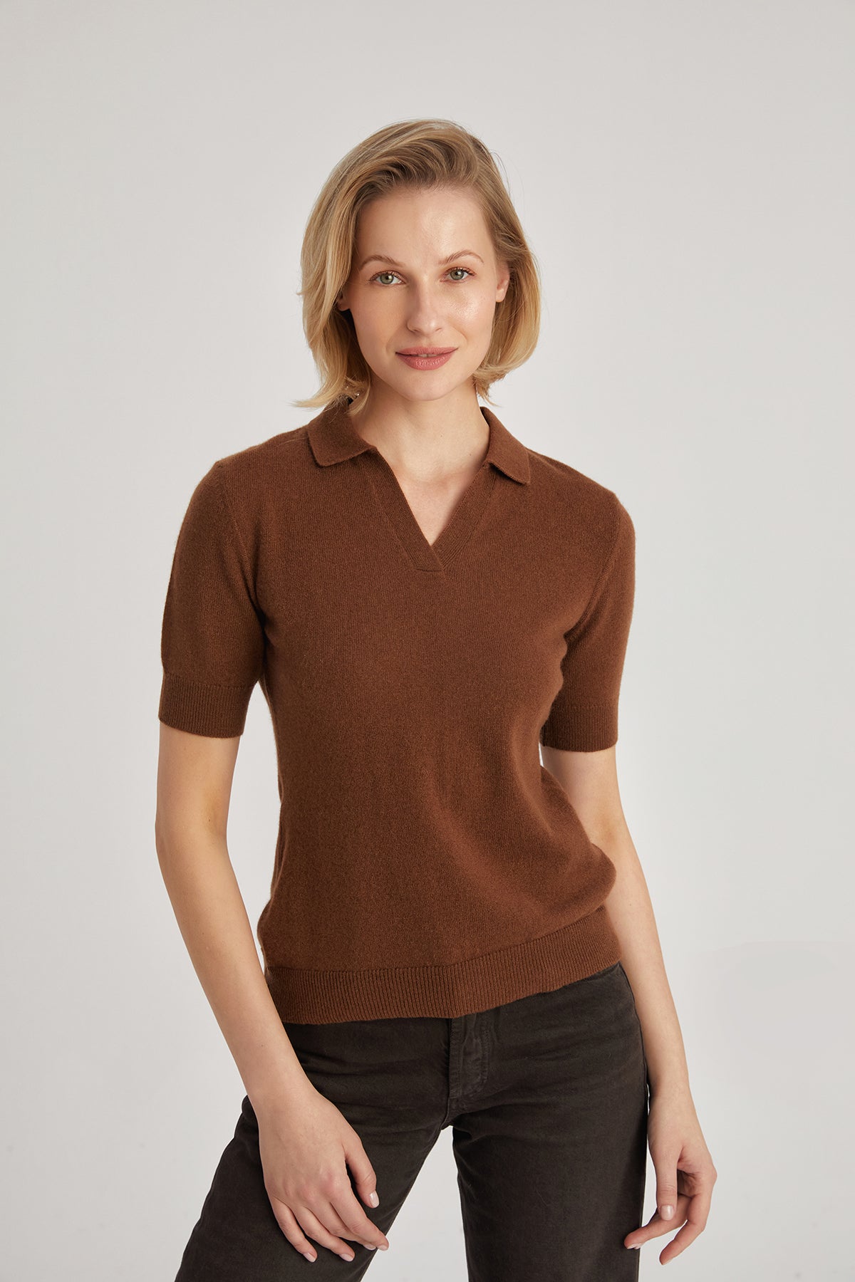 Kahverengi Lilly Saf Kaşmir Polo Tişört