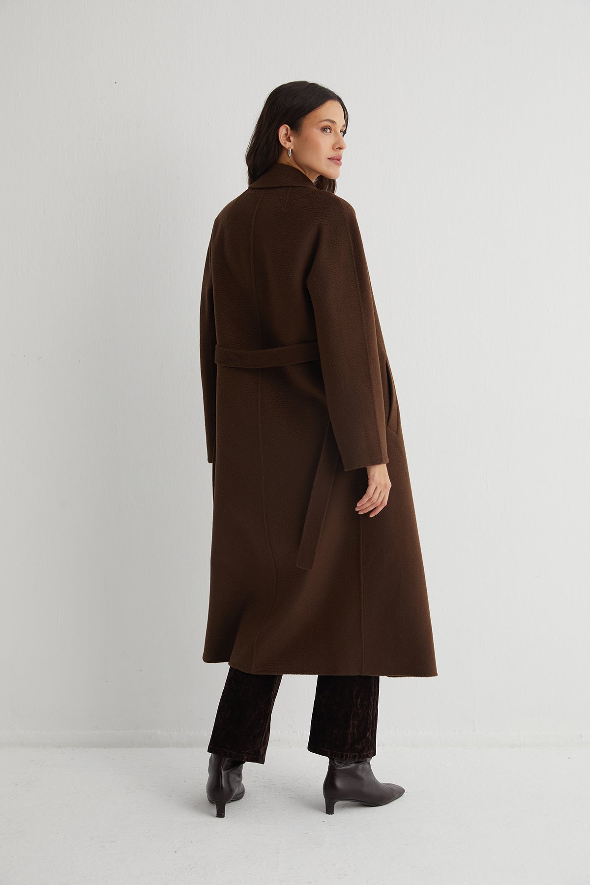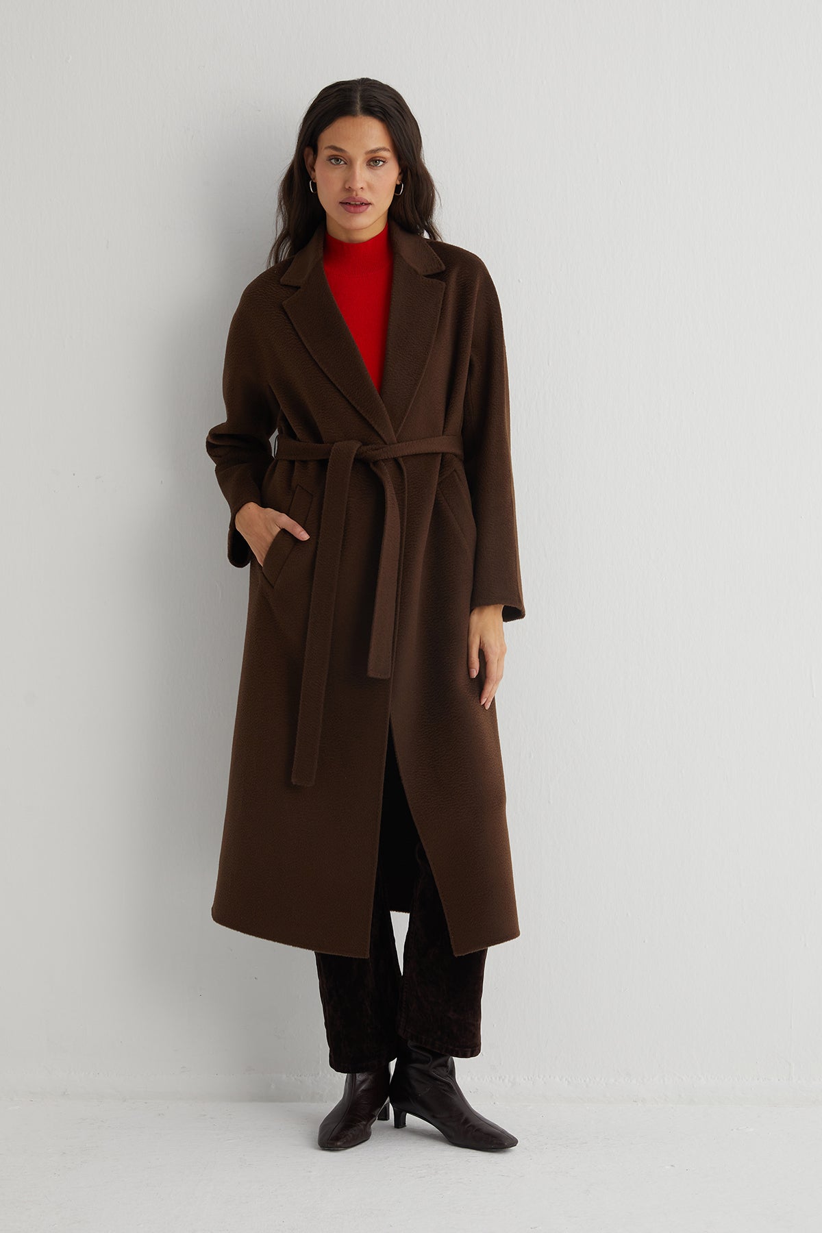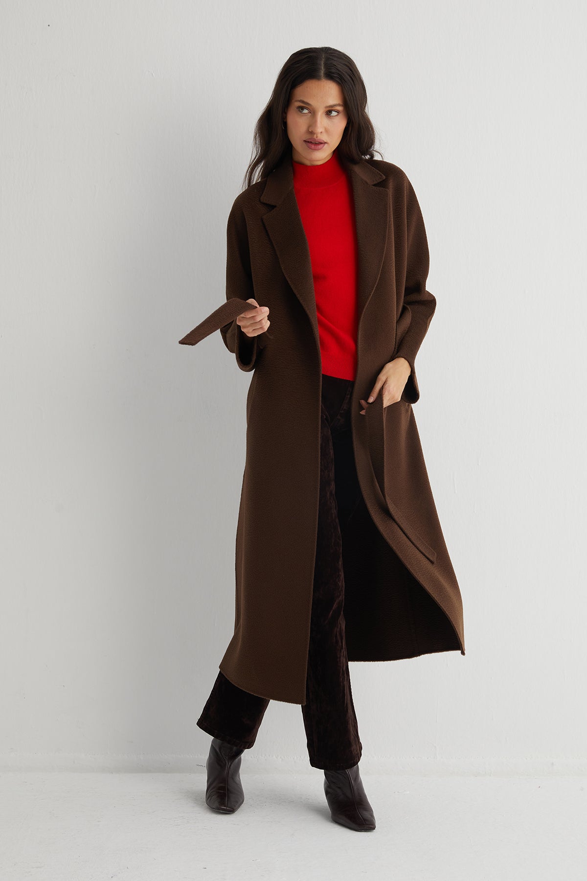 Kahverengi Meghan Kaşmirli Uzun Palto