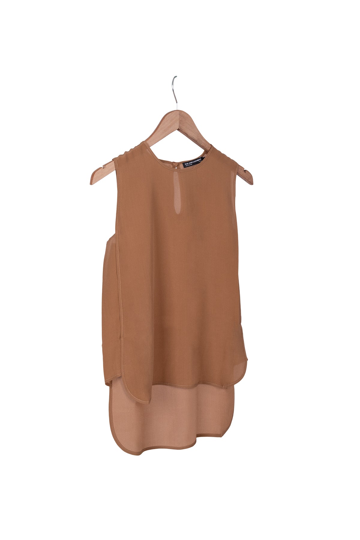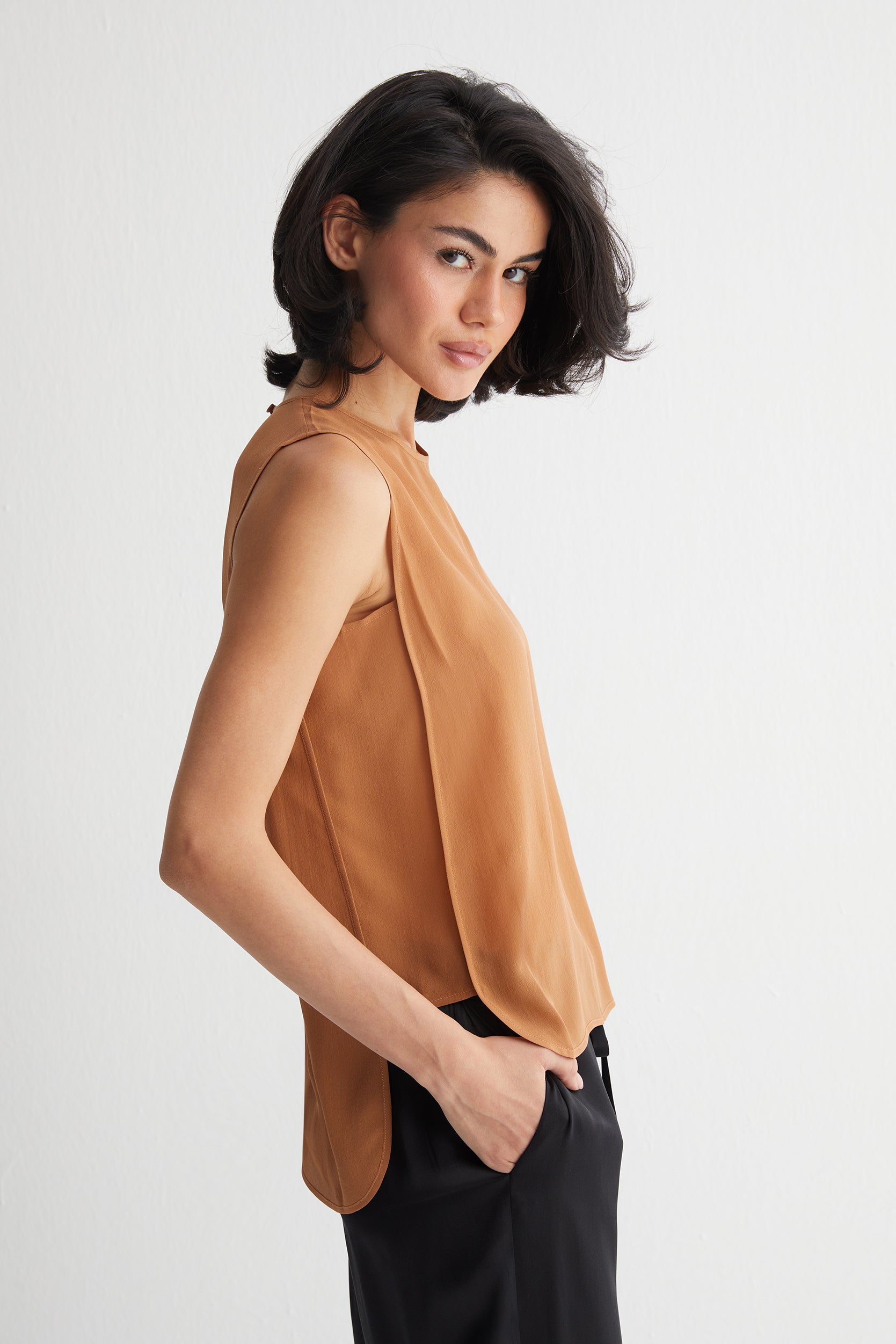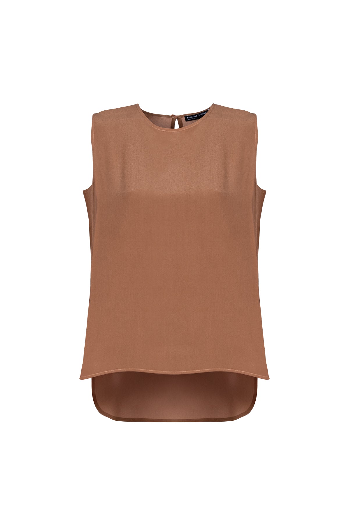 Kahverengi Toscana İpek Yuvarlak Yaka Rahat Kesim Bluz