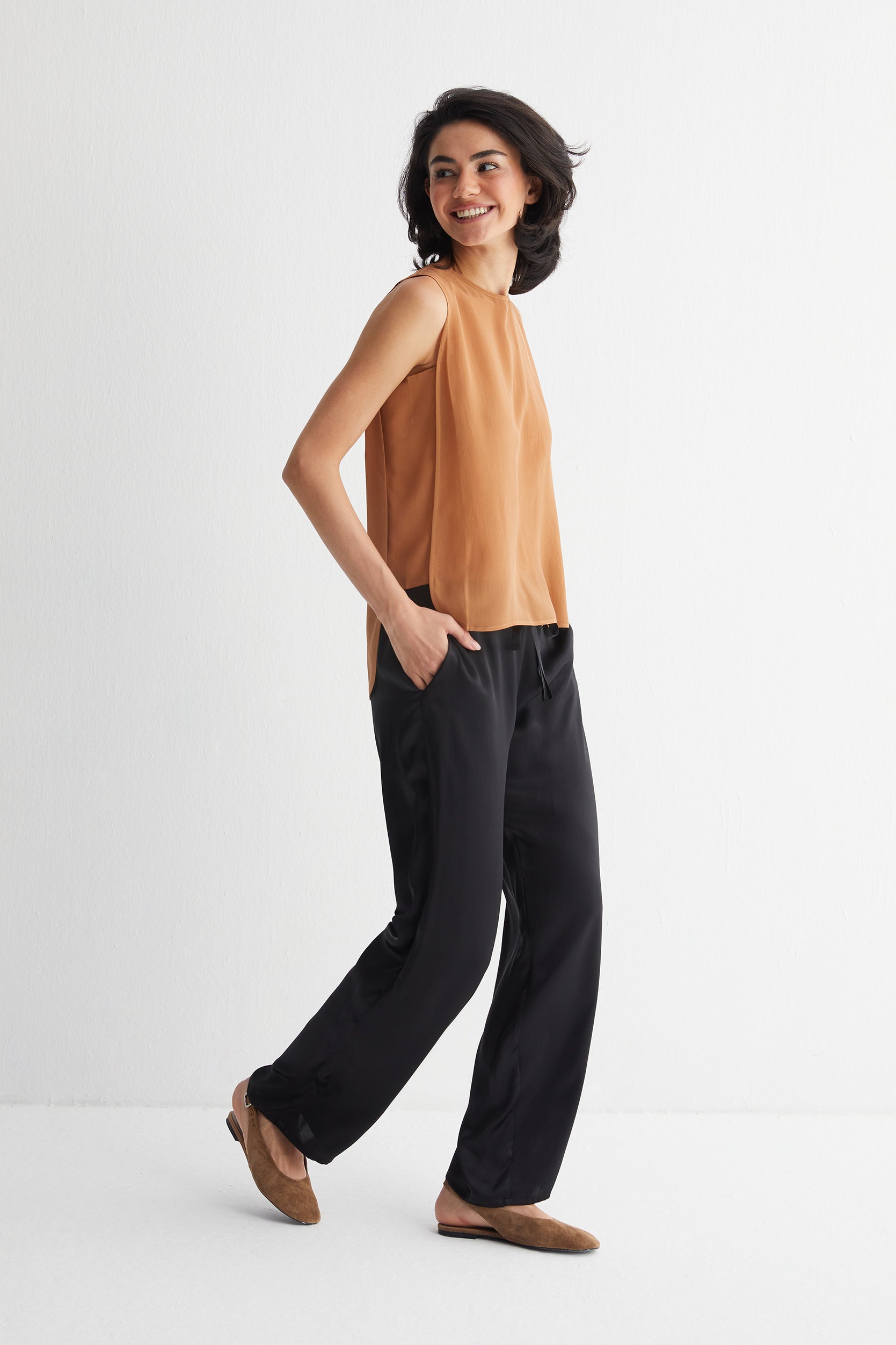 Doğal ipeğin kendine has yumuşaklığıyla hazırlanan Toscana Bluz, sade çizgileriyle dingin bir zarafet sunar. Akışkan yapısı ve özgür kesimi sayesinde, gün boyu rahatlık hissini estetikle buluşturur. Gardırobunuzda zamansız bir dokunuş arıyorsanız, bu parça sizin için tasarlandı.