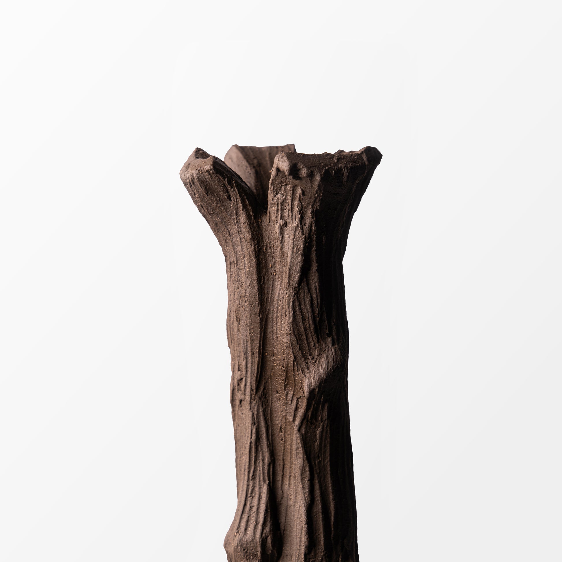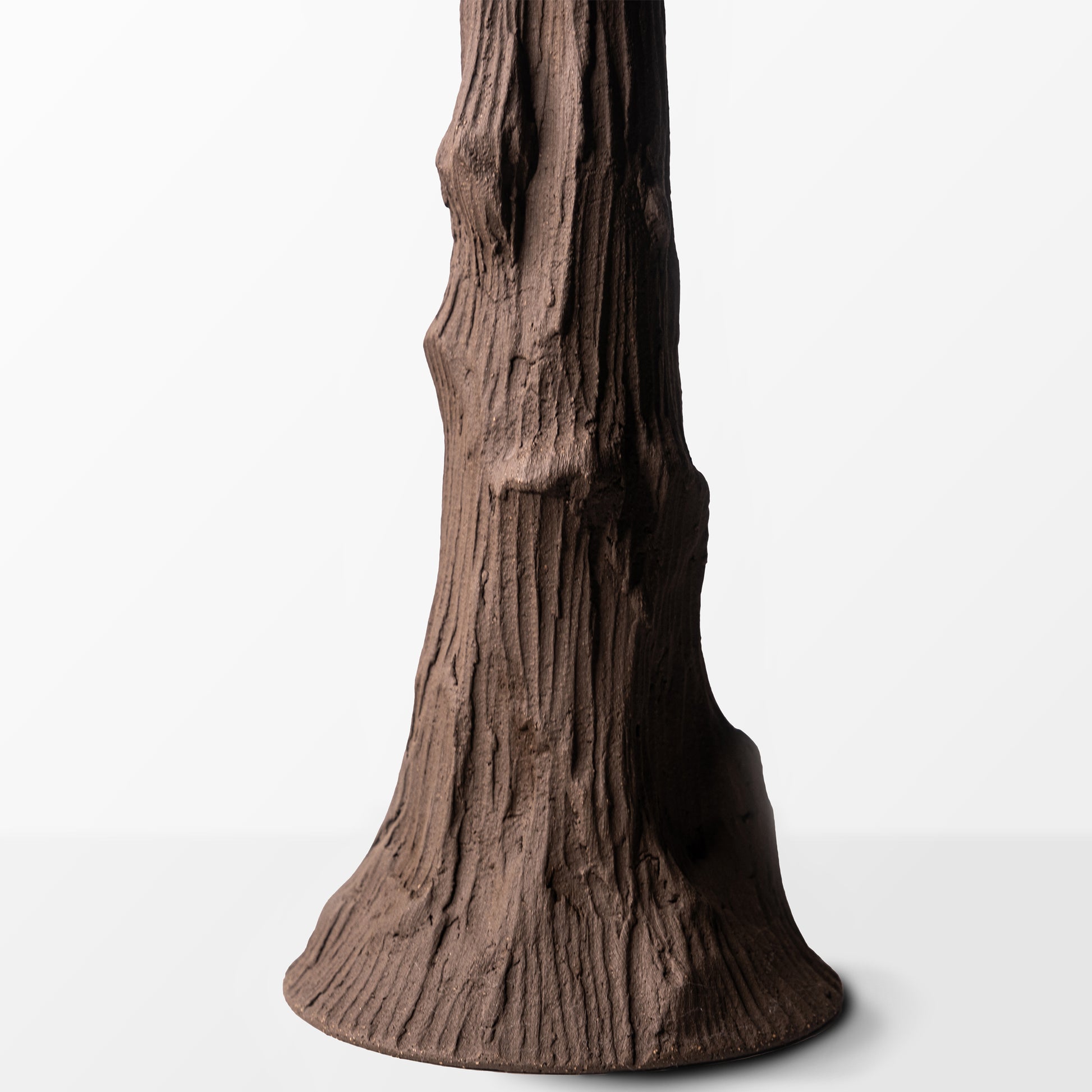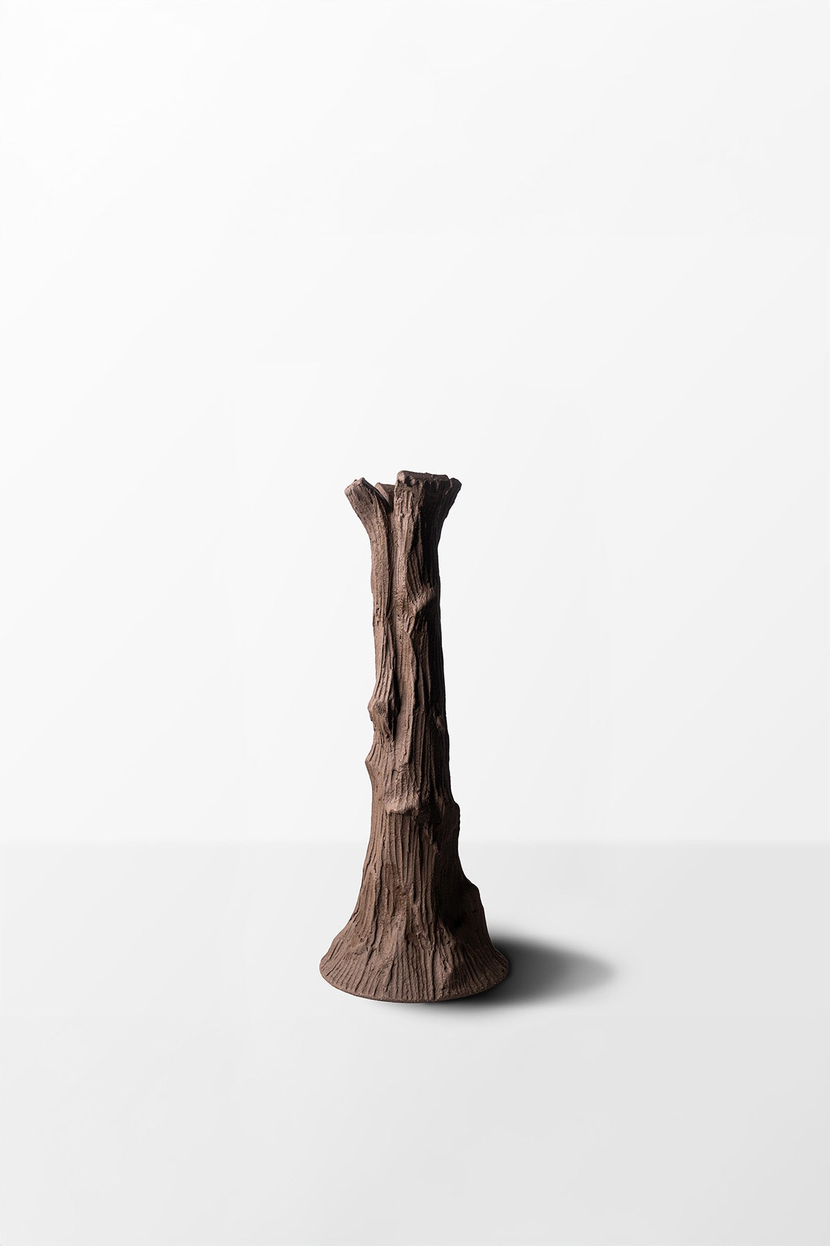 Toprağın derinliklerine kök salmış yüzyıllık zeytin ağaçlarının gövdesinden ilham alan bu seramik obje, doğanın sabırla işlediği dokuyu modern bir forma dönüştürüyor. Her kıvrımı, her iz düşümü, zamanın yavaşça oyduğu bir hikâyeyi fısıldıyor.