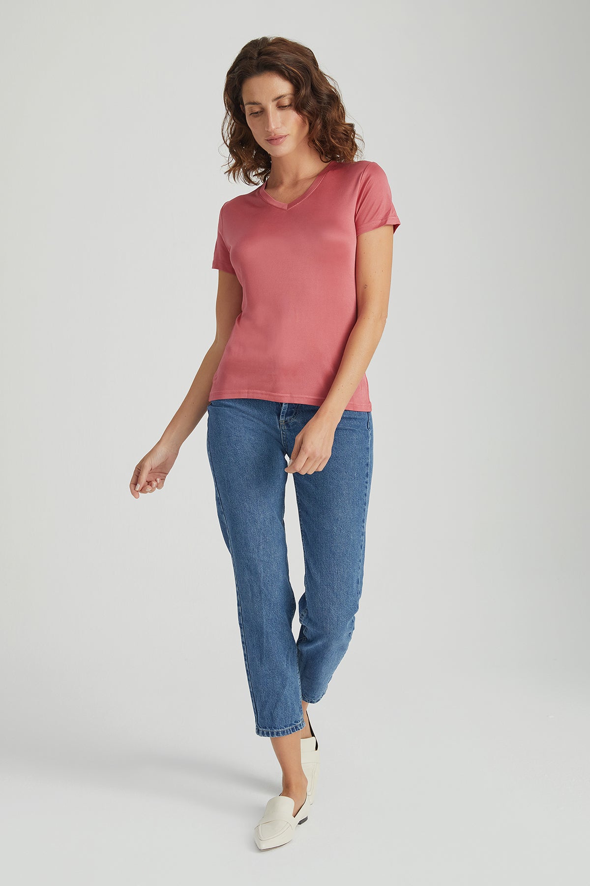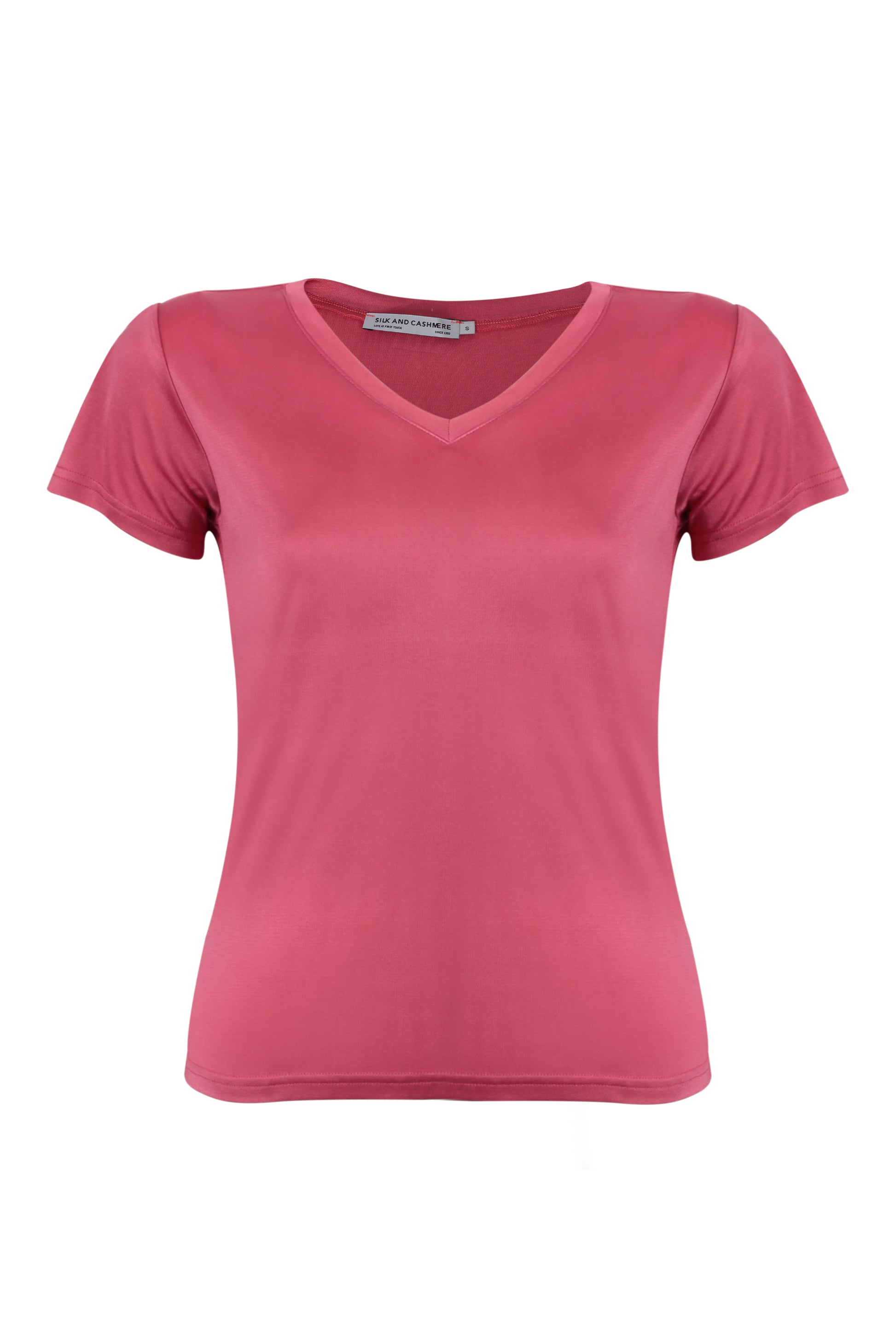 Karpuz Marina İpekli V Yaka Kısa Kollu T-Shirt
