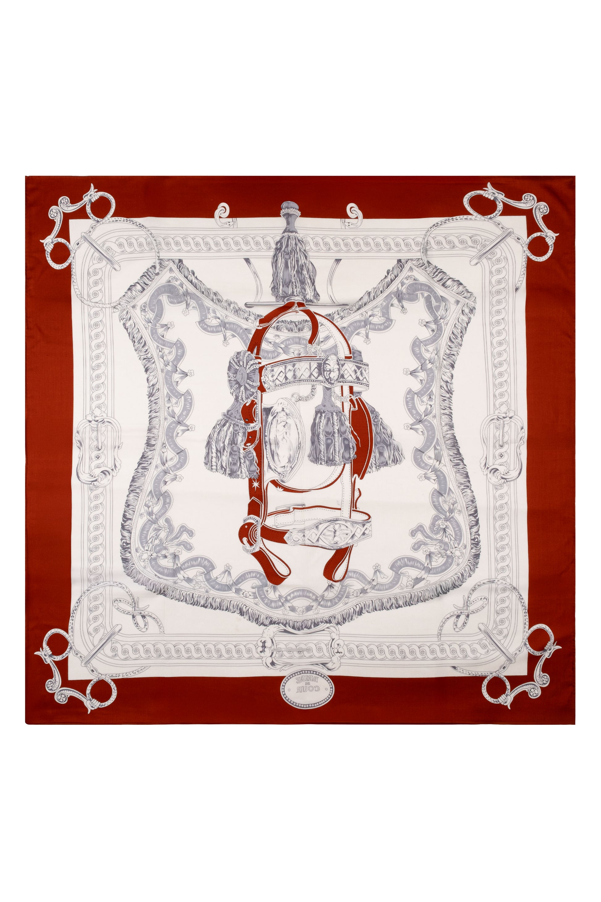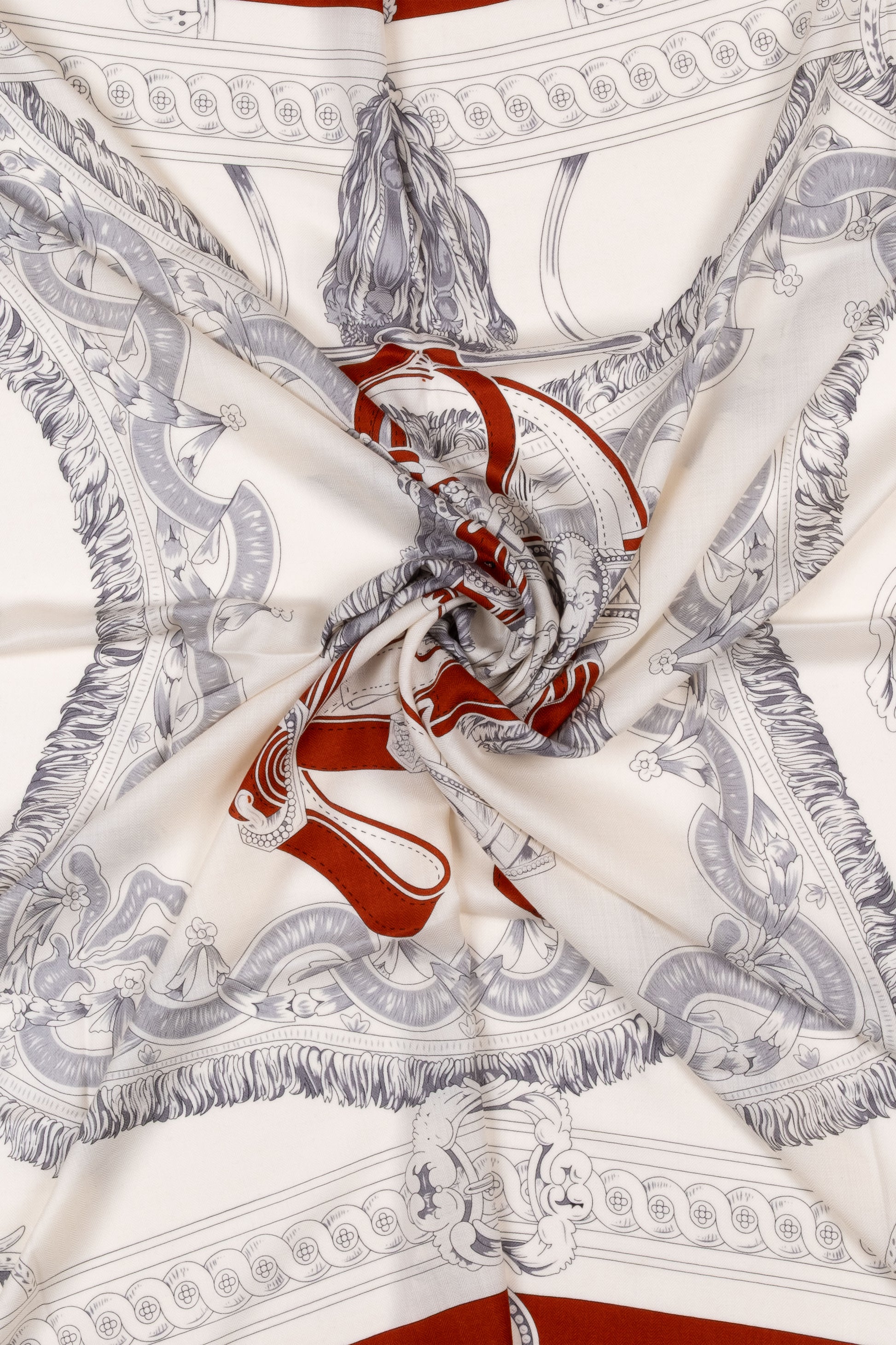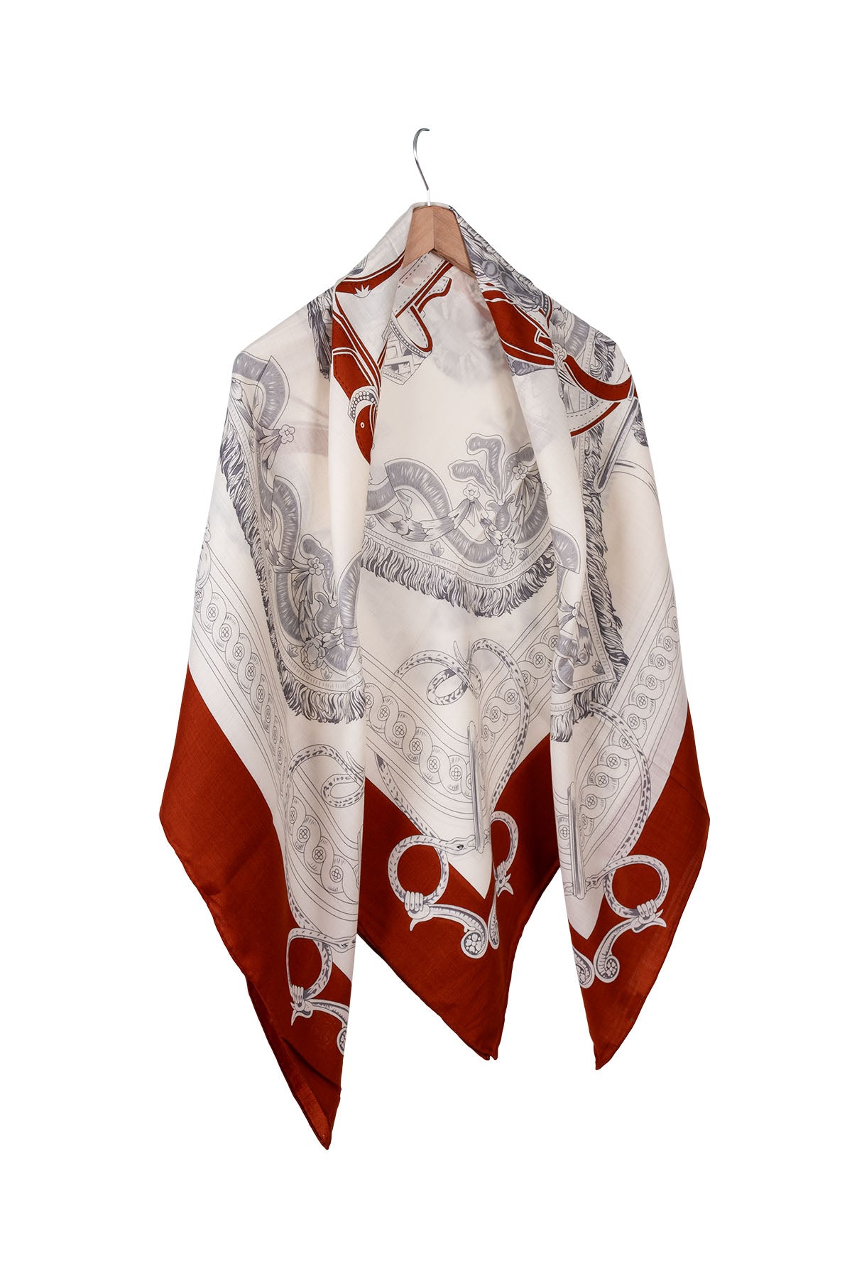 Kiremit Beyaz Linda Kaşmir Desenli Kare Eşarp 140x140 cm
