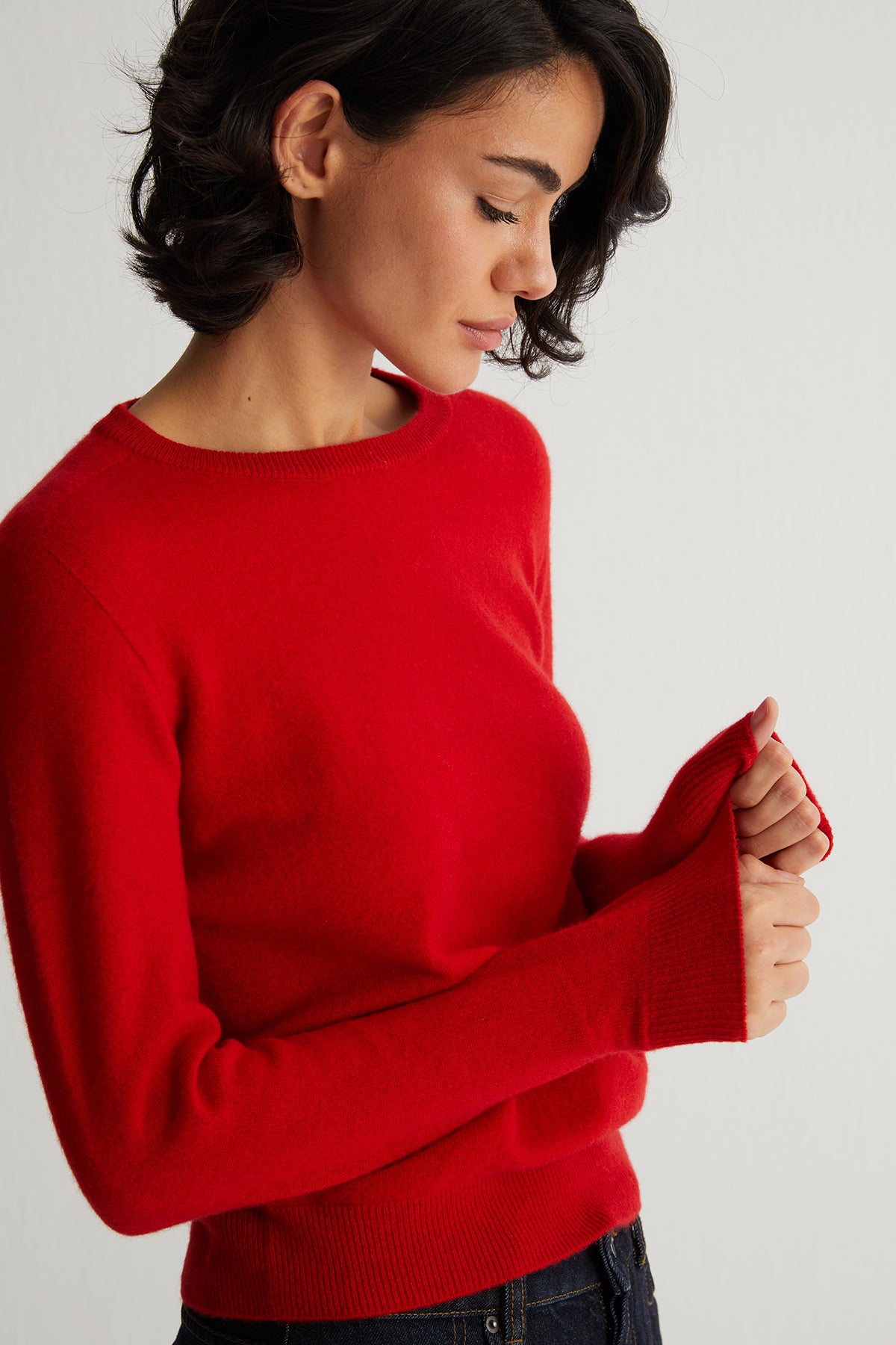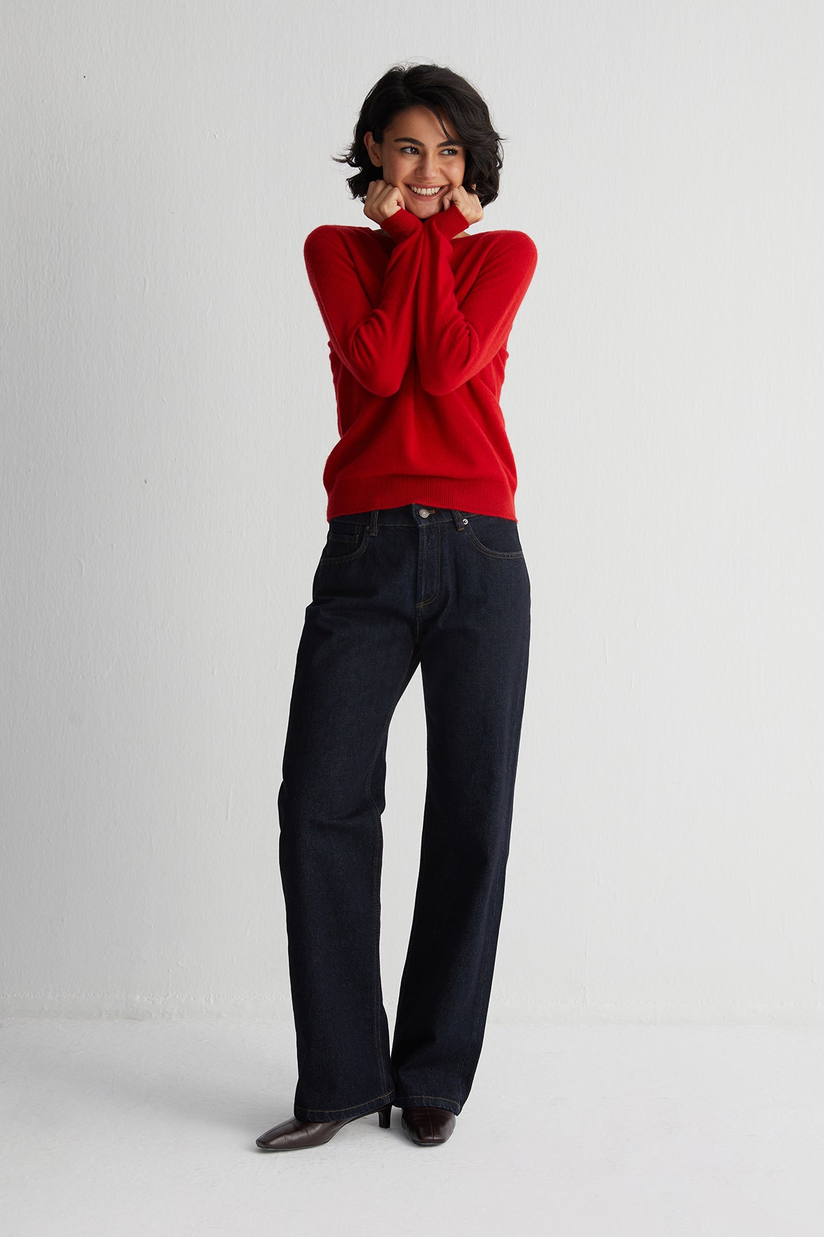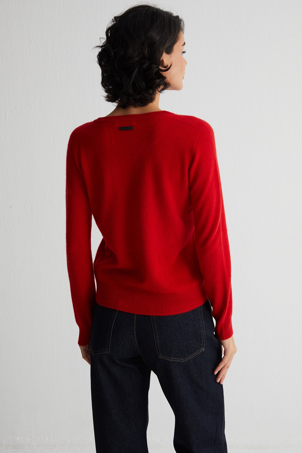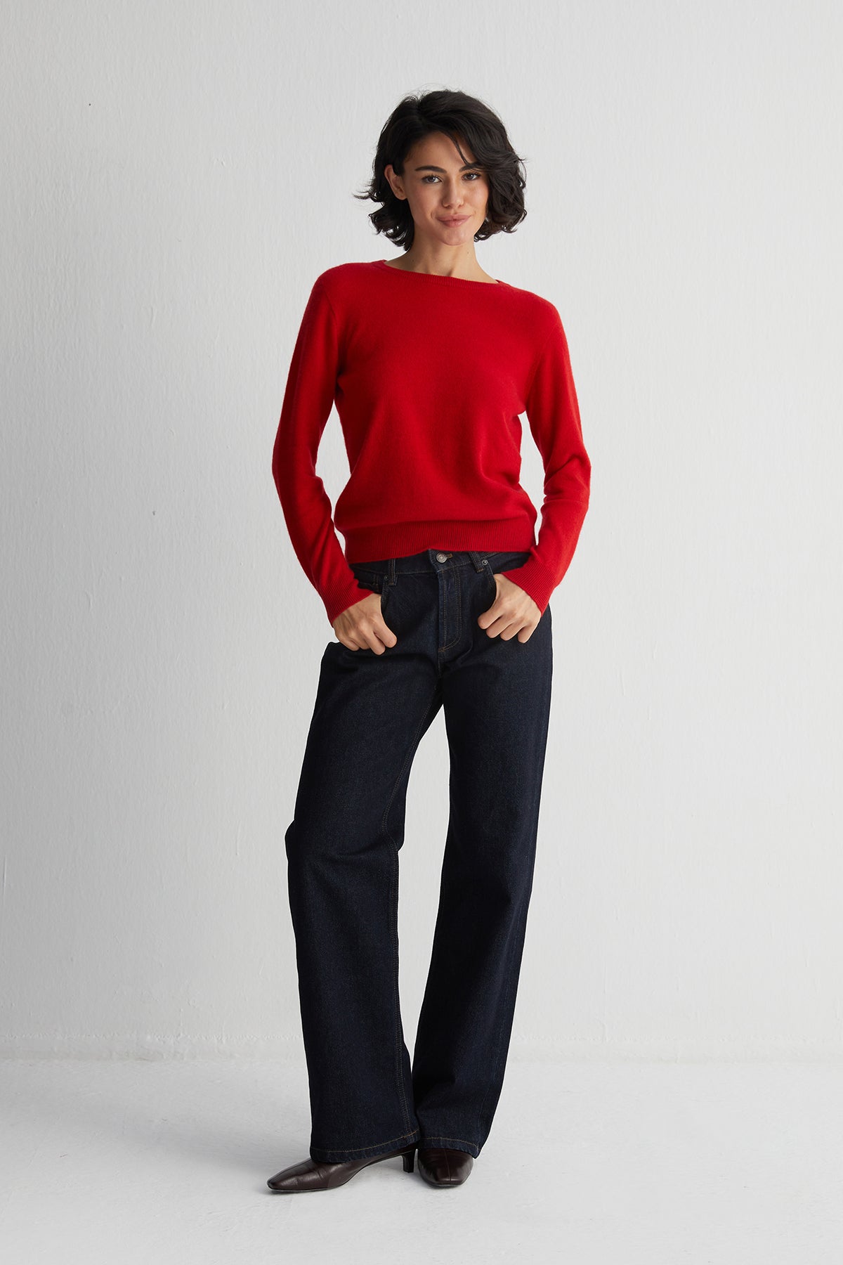 Kırmızı Alexia Saf Kaşmir Yuvarlak Yaka Kazak
